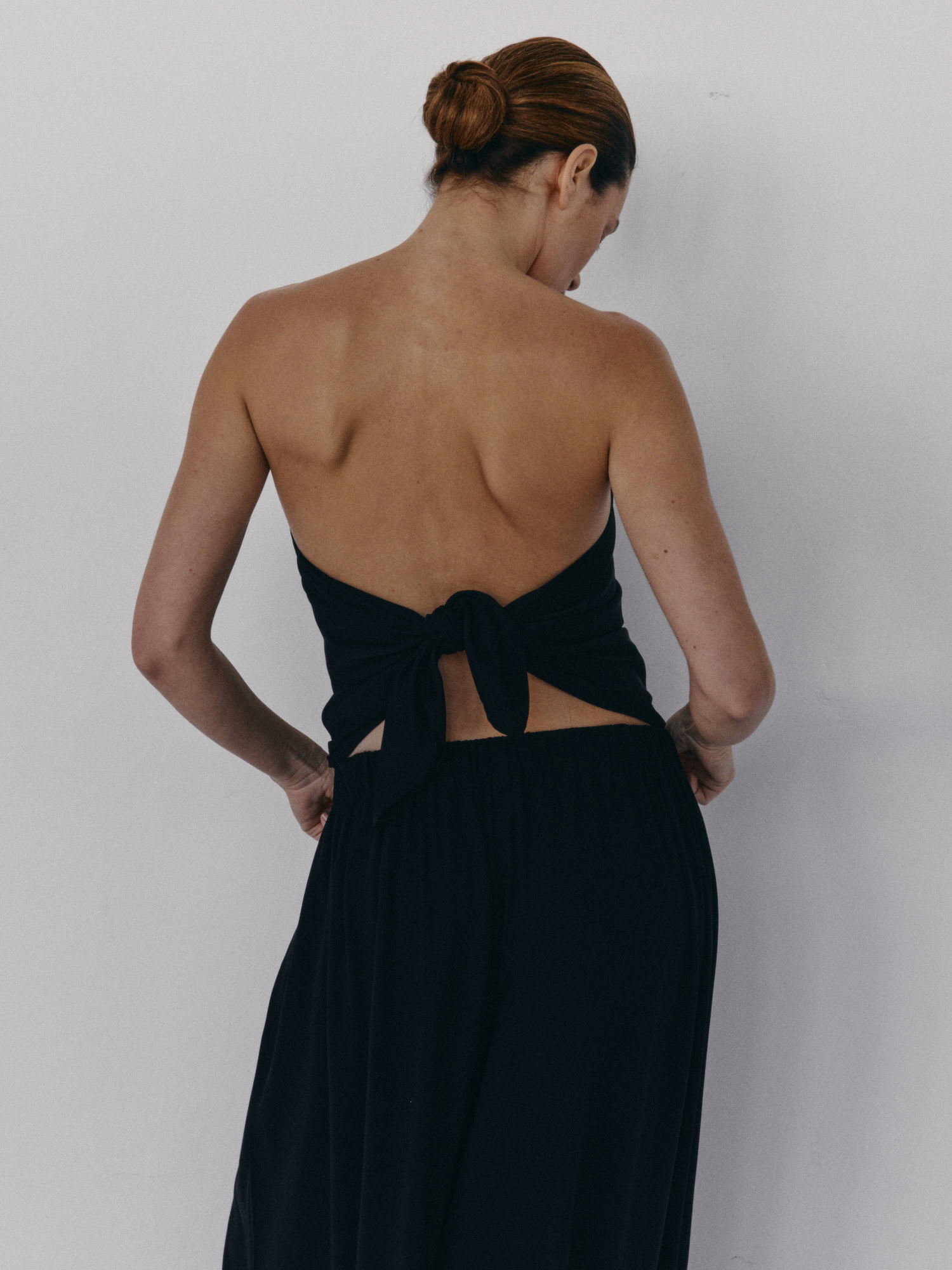 Letnia chusta. Sparwdzi się zarówno jako apaszka na głowę, jak i wiązany top. Doskonale dopełnia zestaw koszulki oraz spodni DUE.