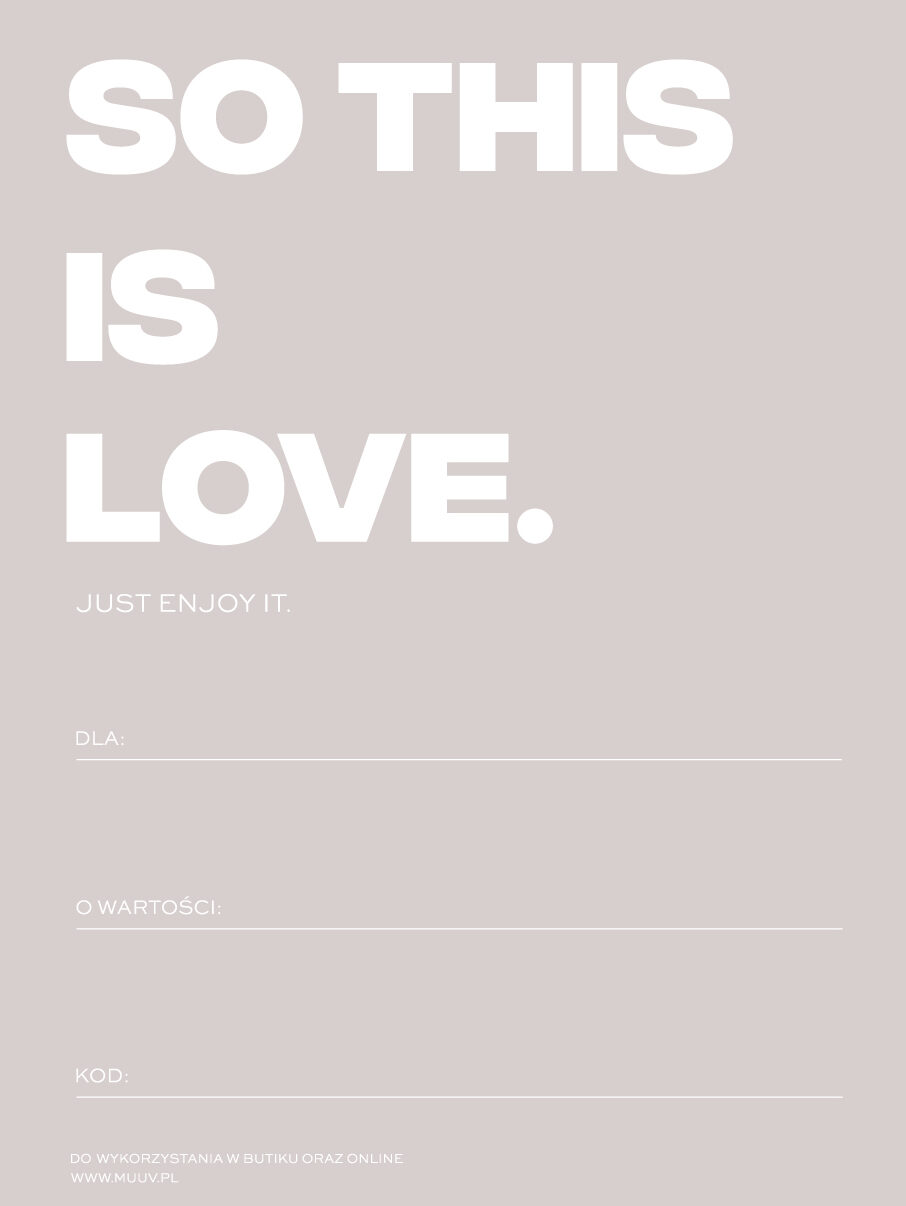 Voucher podarunkowy MUUV, który daje pełną swobodę wyboru. Można go wykorzystać na stronie muuv.pl lub w naszym butiku na Kruczej 16/22 w Warszawie.