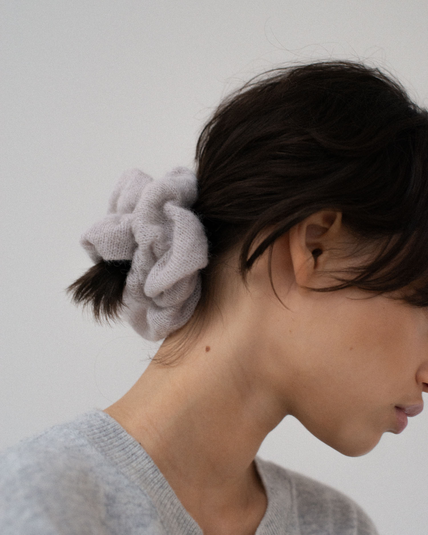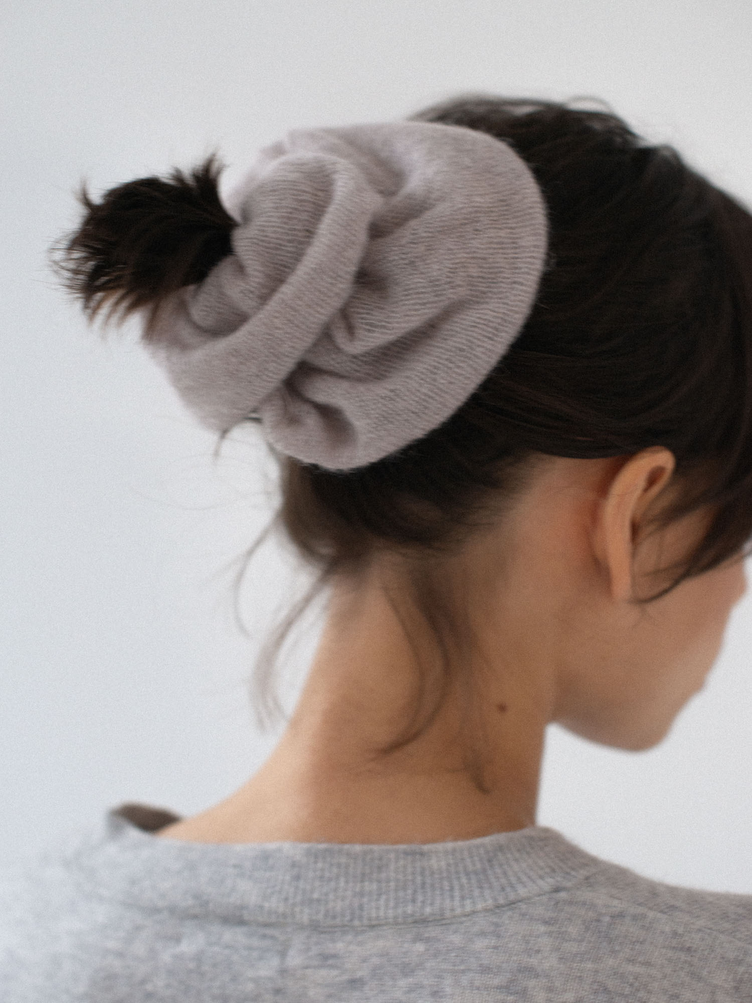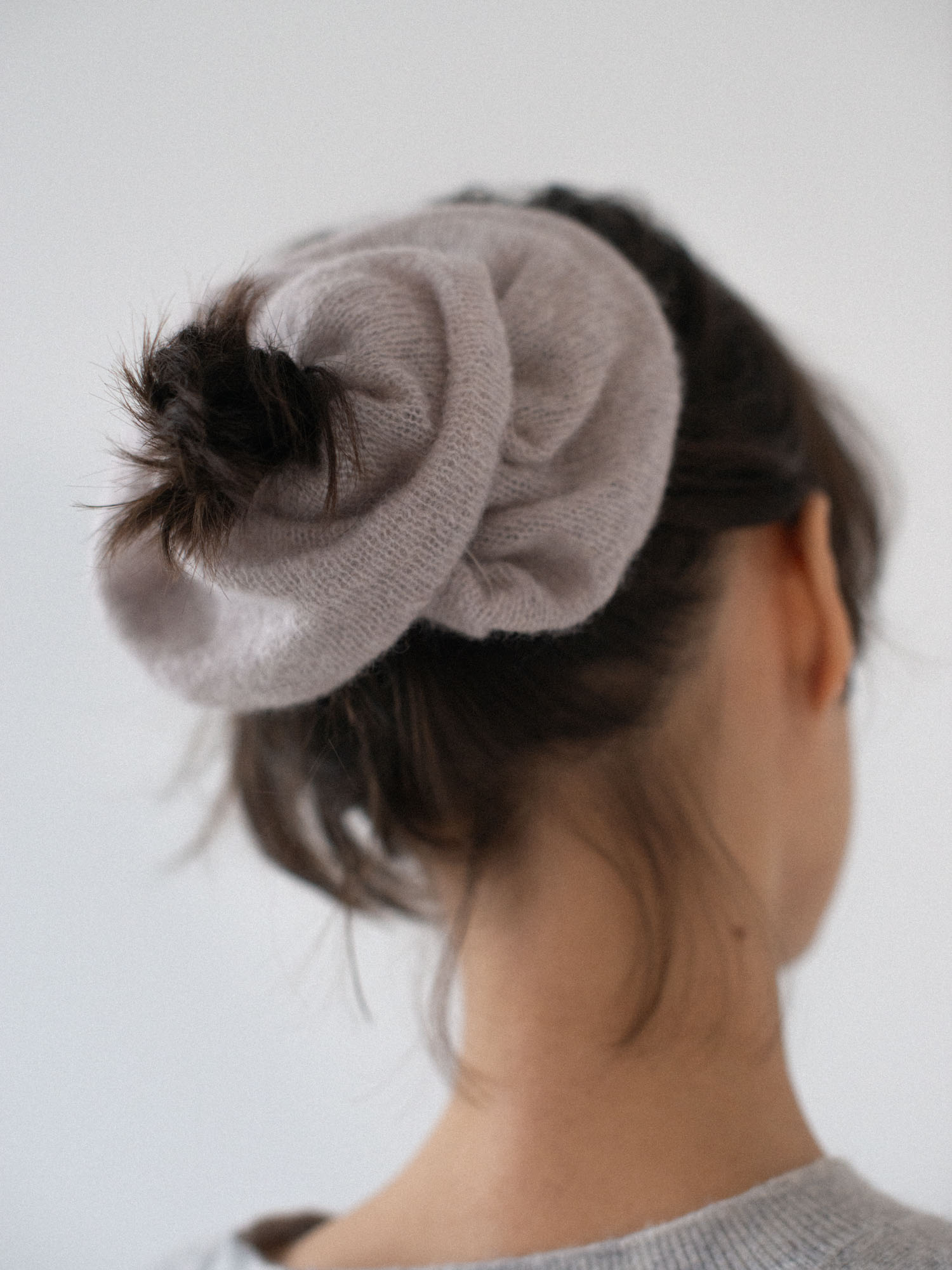 Scrunchie FLOA uszyta jest z mieszanki wełny z alpaki suri i wełny jagnięcej, która jest niezwykle miła i puchata w dotyku.