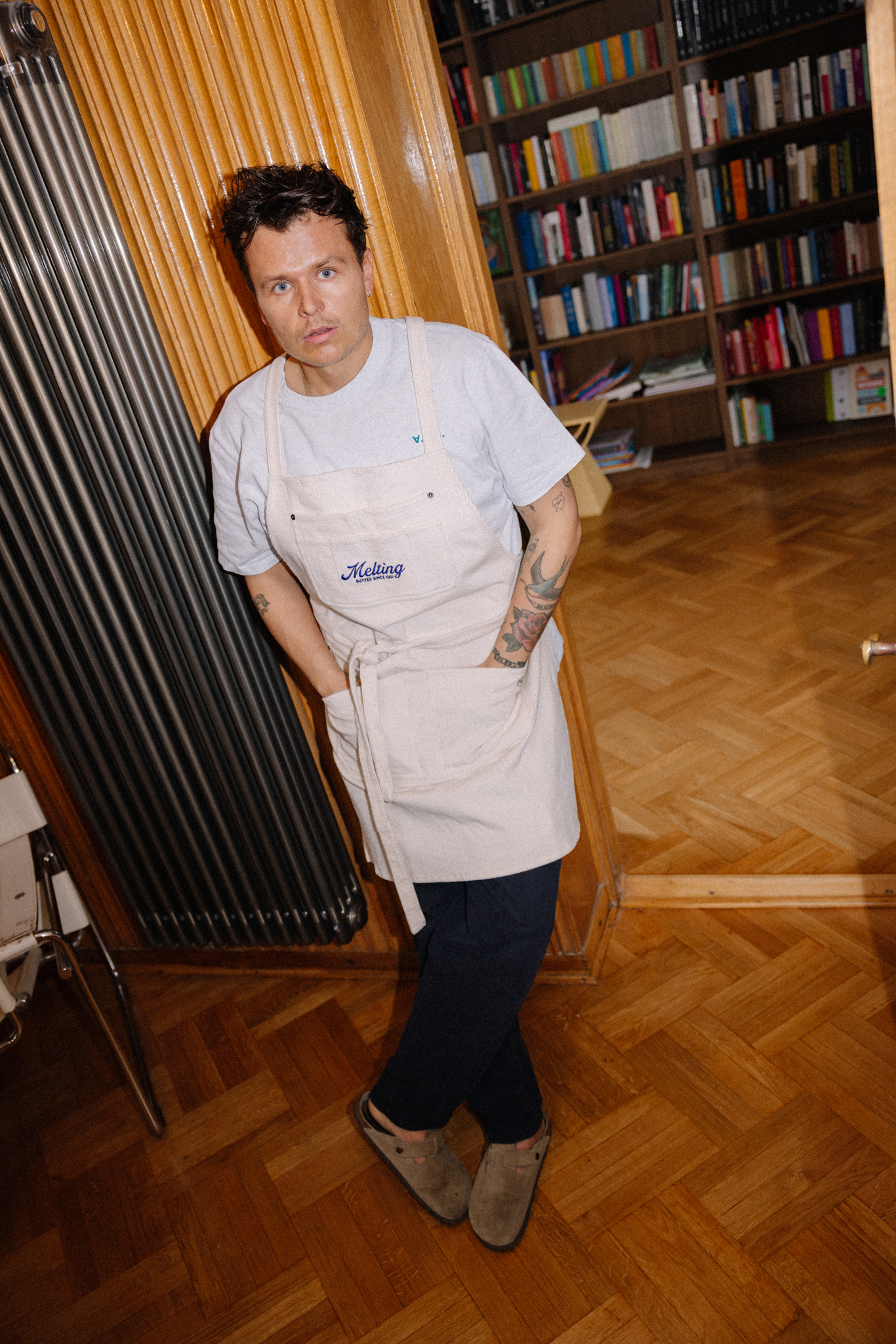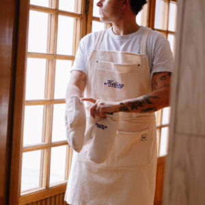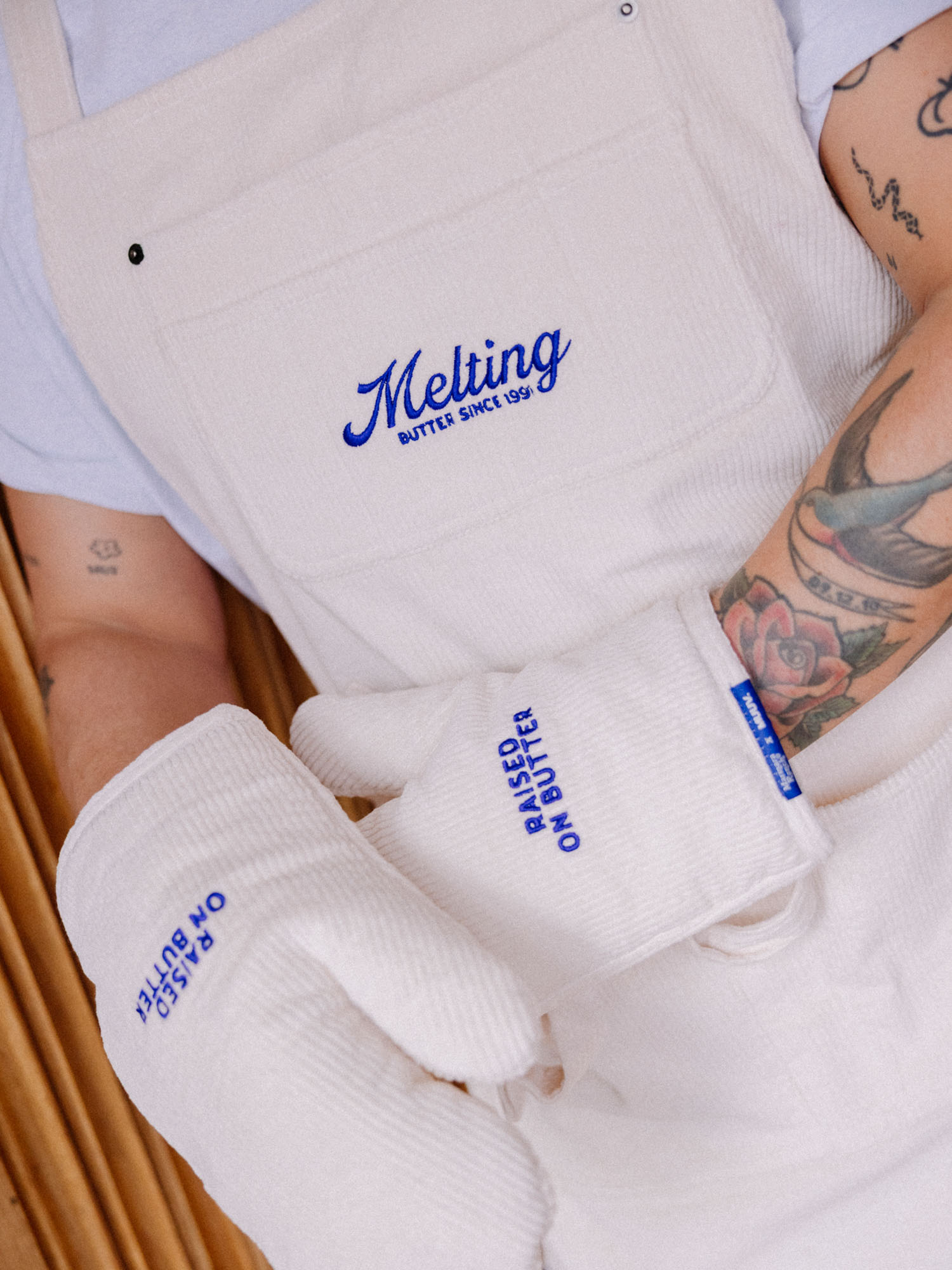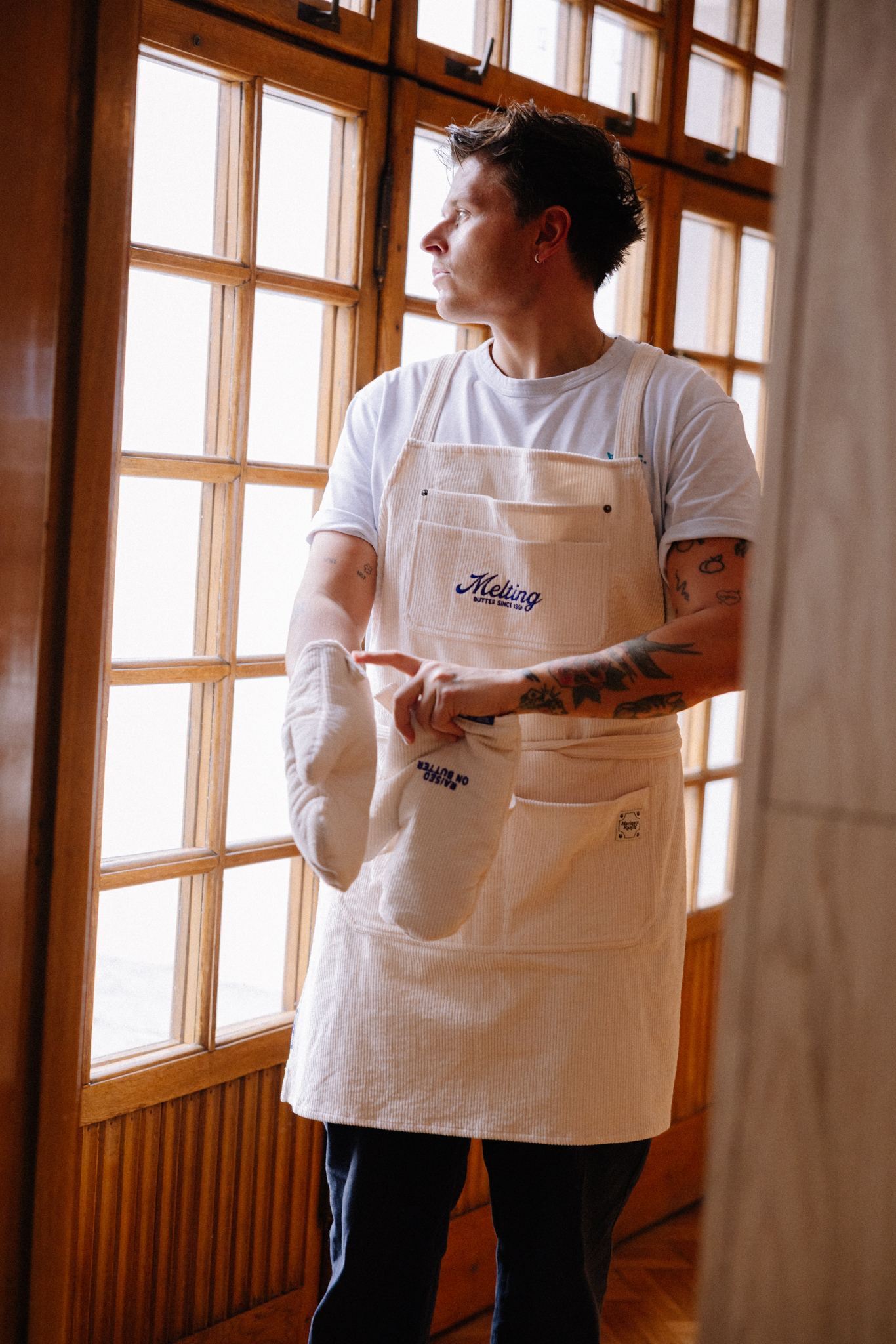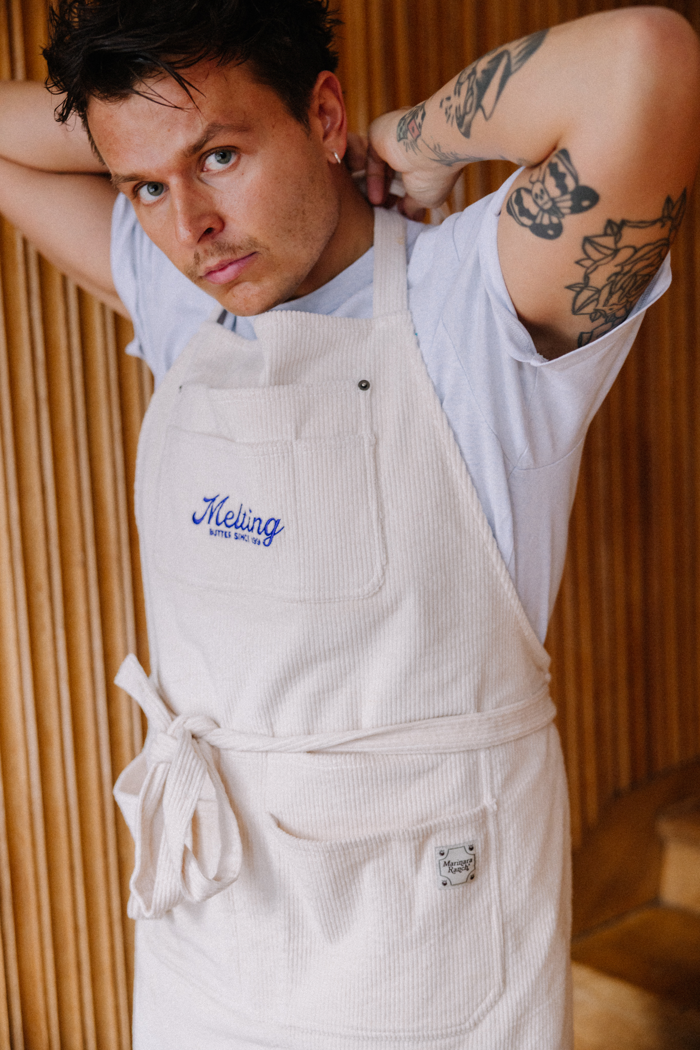 Fartuch MELTING BUTTER uszyty jest z bawełnianego sztruksu, dzięki czemu jest niezwykle miły w dotyku.