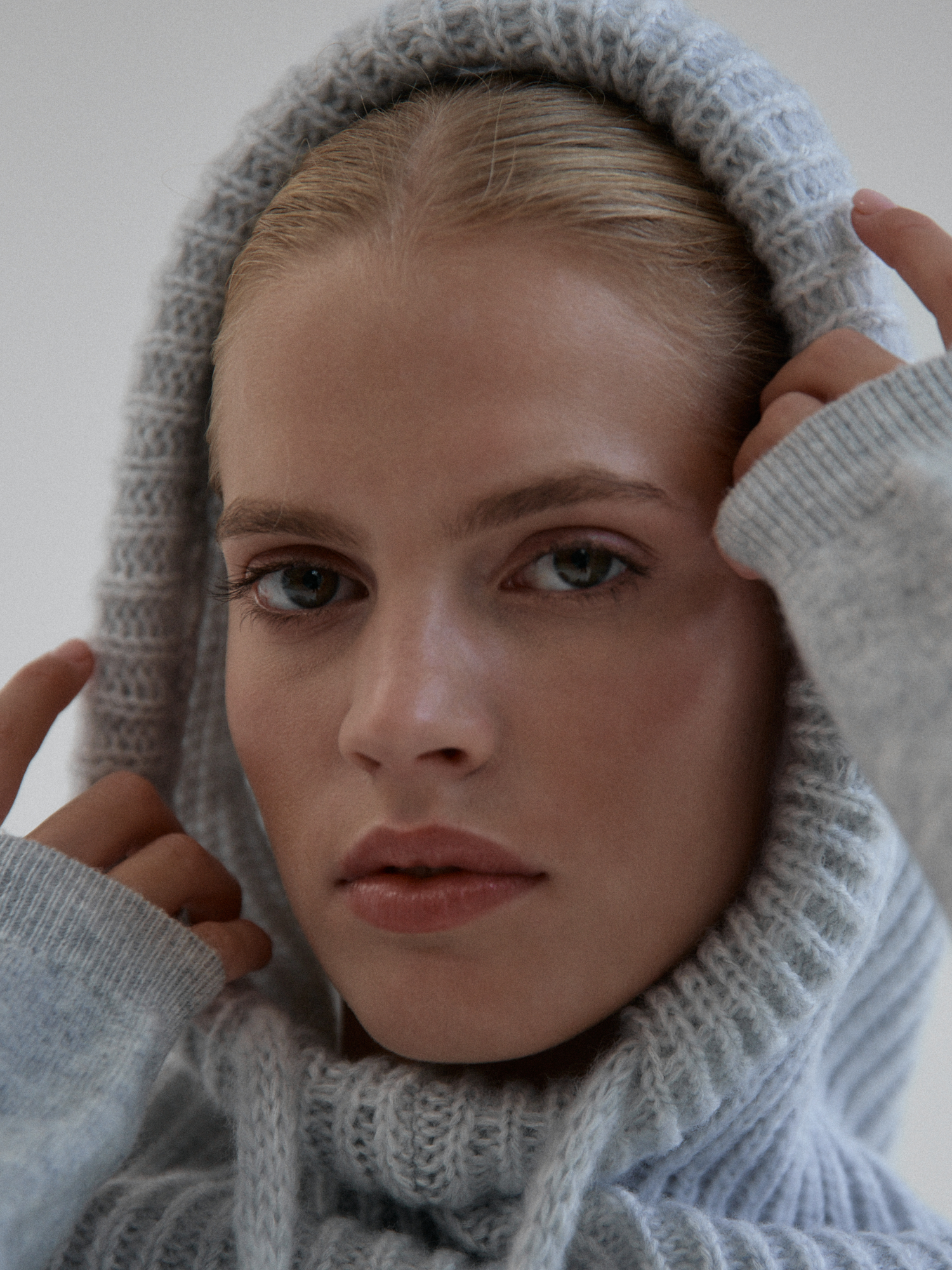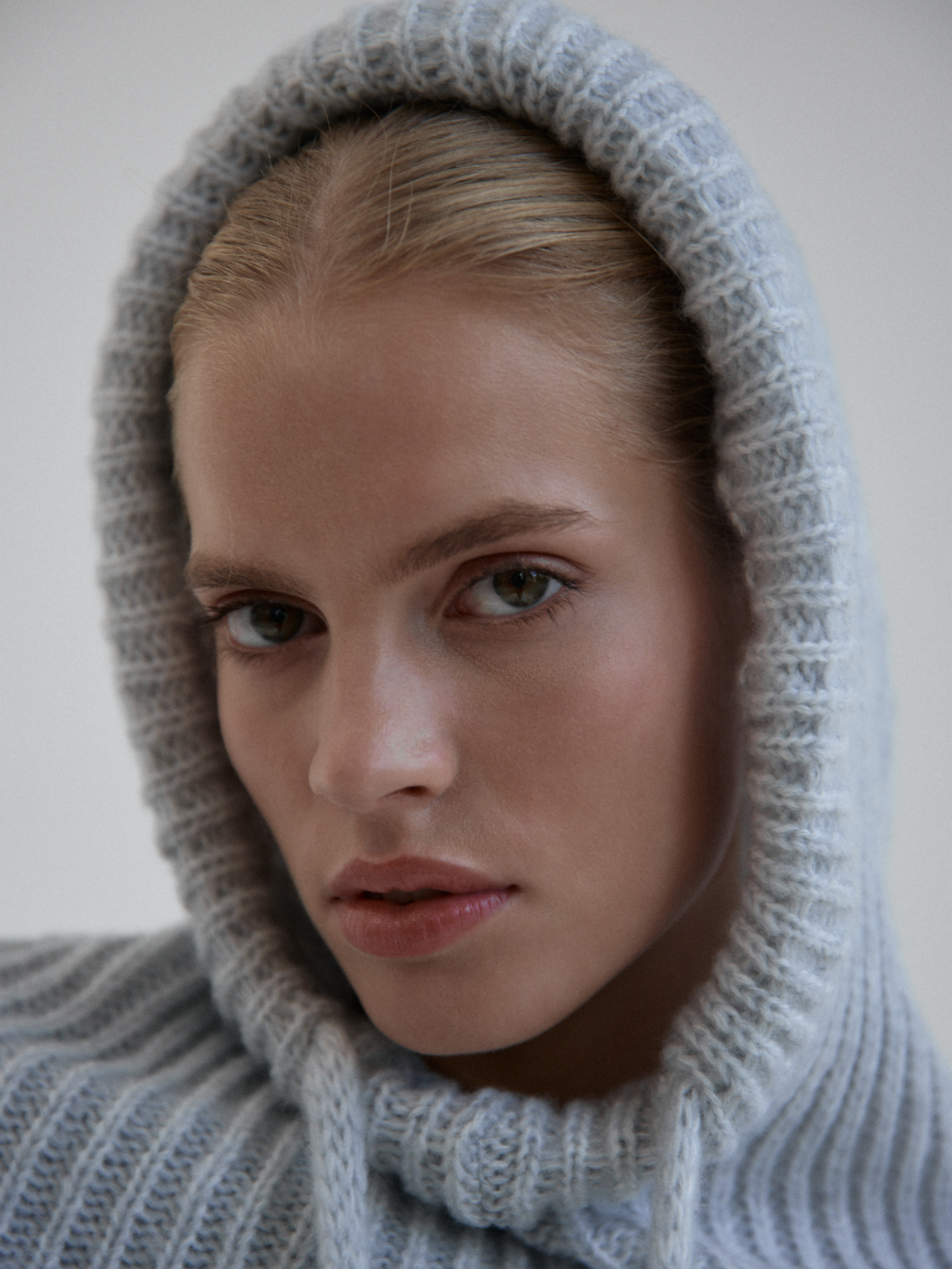 Czapka typu kominiarka, z prążkowanej dzianiny, zapewniająca ochronę przed zimnem i wiatrem. Ukryte wiązanie od środka umożliwia regulację szerokości i stopnia odsłonięcia twarzy w zależności od temperatury. Nosimy ją zarówno do naszych płaszczy UPTOWN GIRL, kurtek PIQUE czy kamizelek CLOQUE.