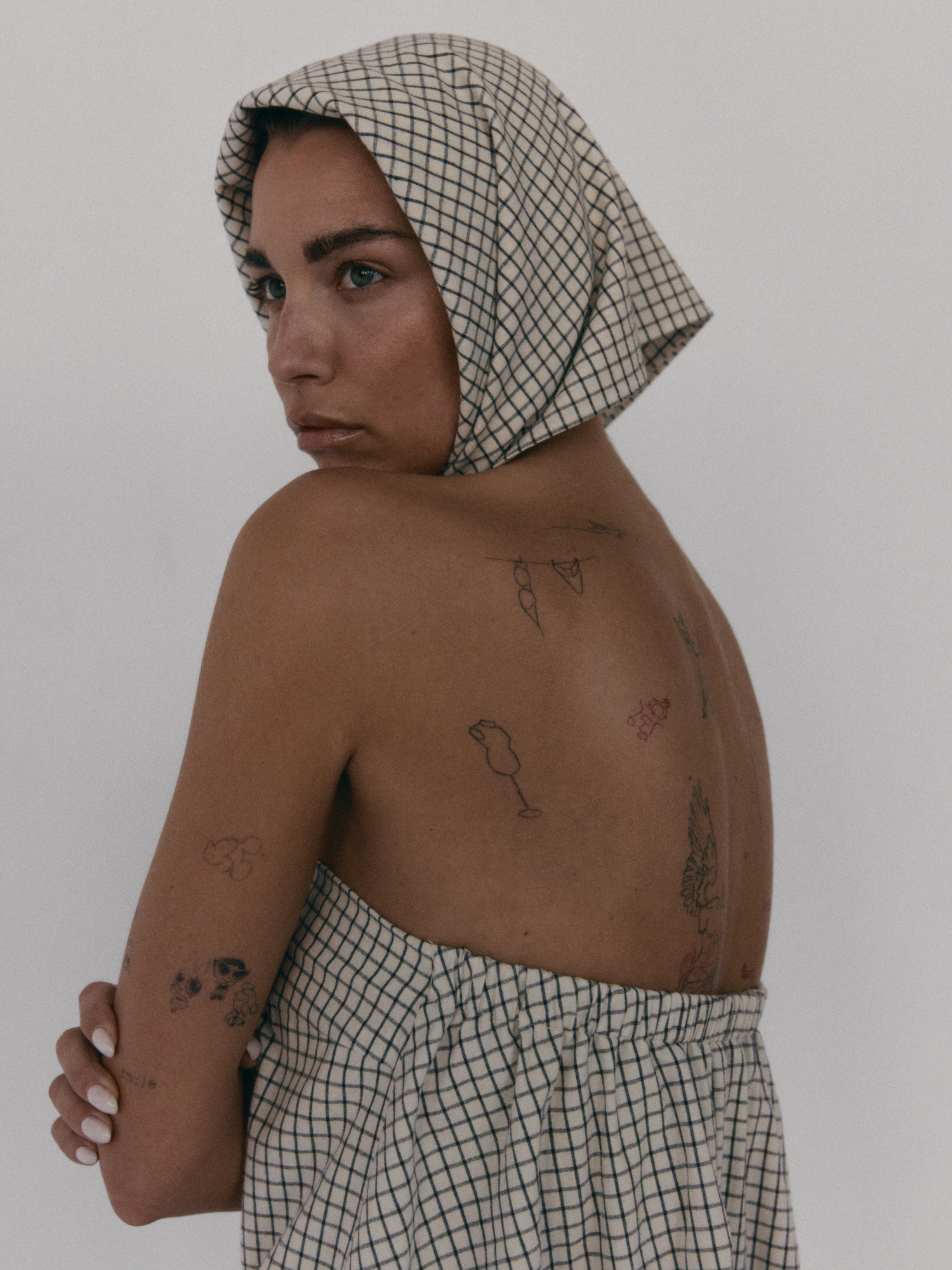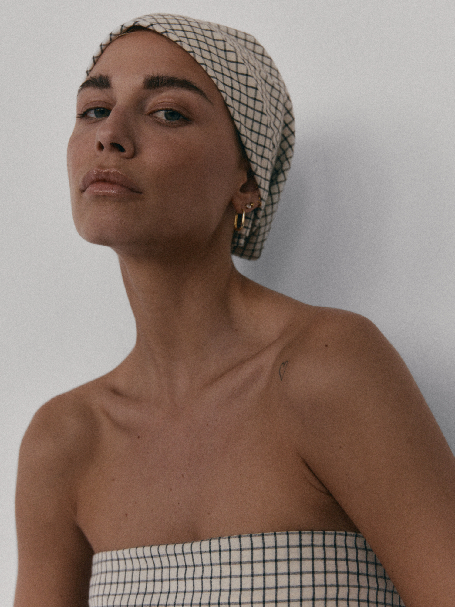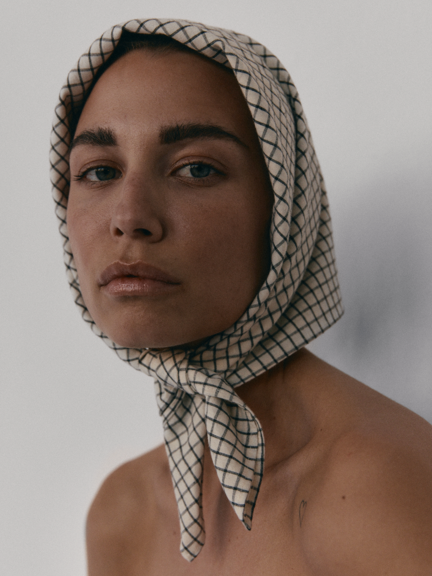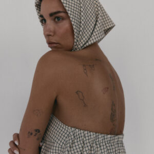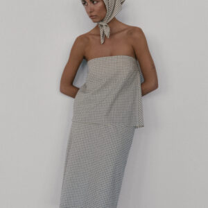 Bawełniana chusta. Idealnie sprawdzi się zarówno jako okrycie głowy, jak i dodatek wokół szyi. Doskonale dopełnia zestaw topu i spódnicy MIE.