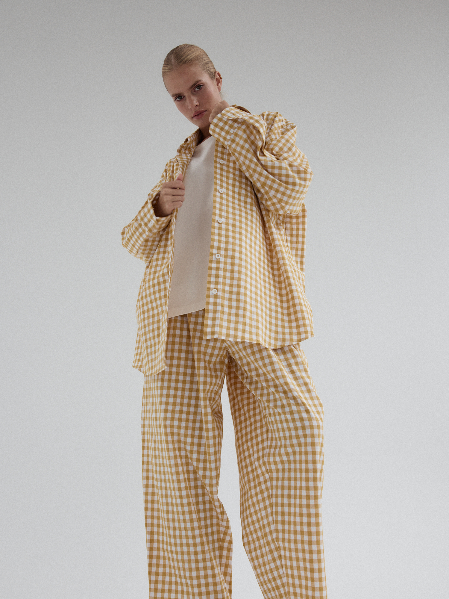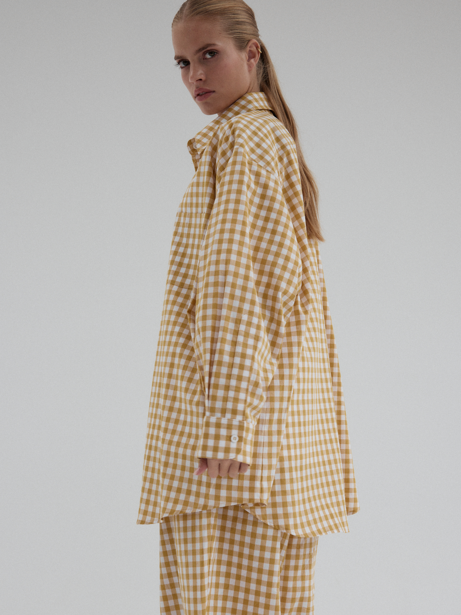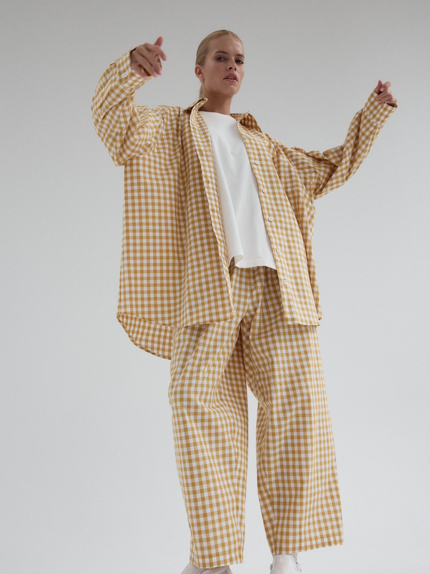 Koszula o luźnym, ultra oversize’owym kroju wykonana z bawełnianej tkaniny. Klasyczna, nieco wydłużona. Prosty, duży kołnierzyk, szerokie mankiety i kieszonka umieszczona z lewej strony dopełnia całości. Model zapinany na guziki. Świetne urozmaicenie minimalistycznych stylizacji. Model idealnie komponuje się z każdym rodzajem dołu. W komplecie ze spodniami MOIRE tworzy oryginalny set.