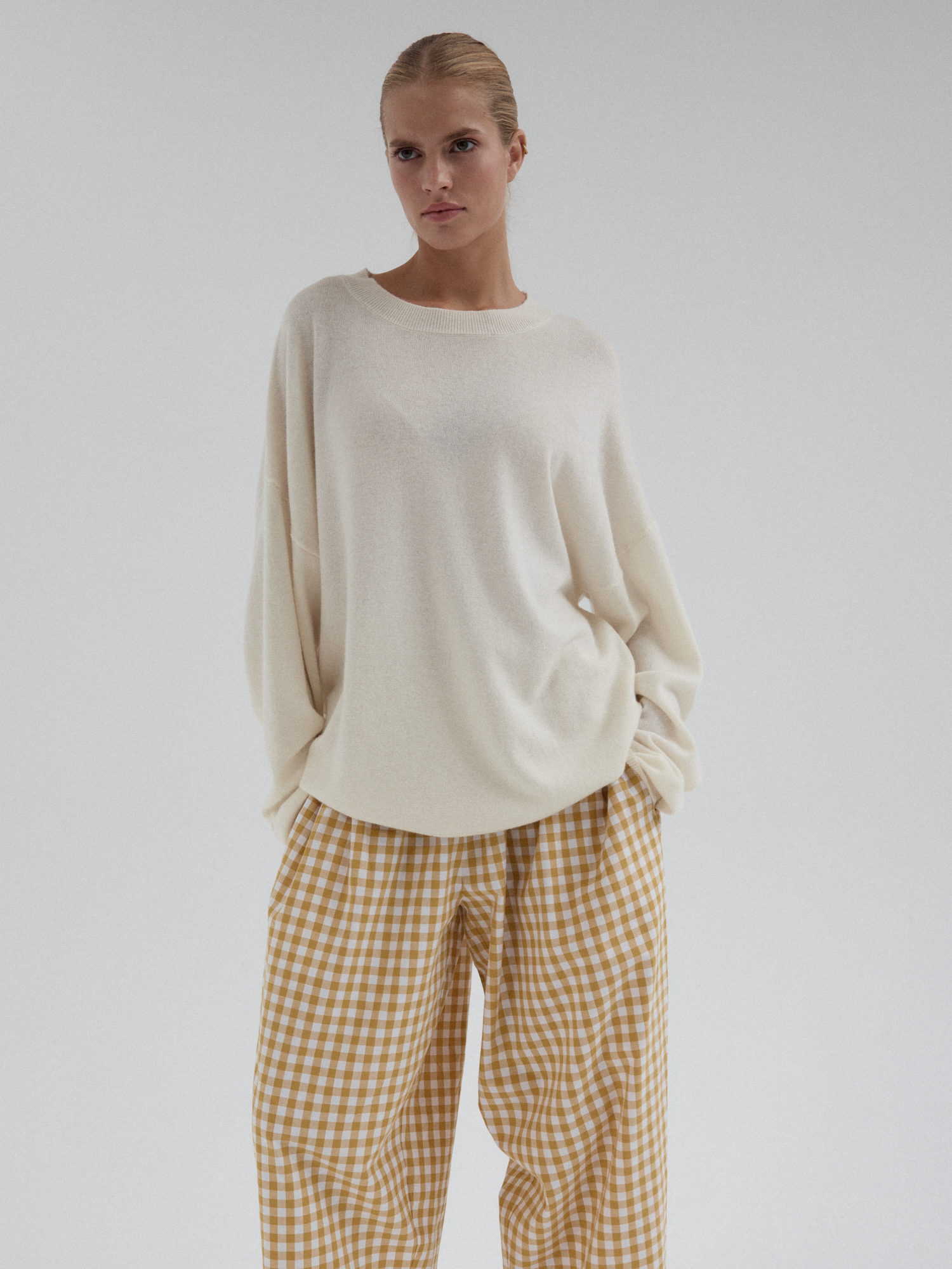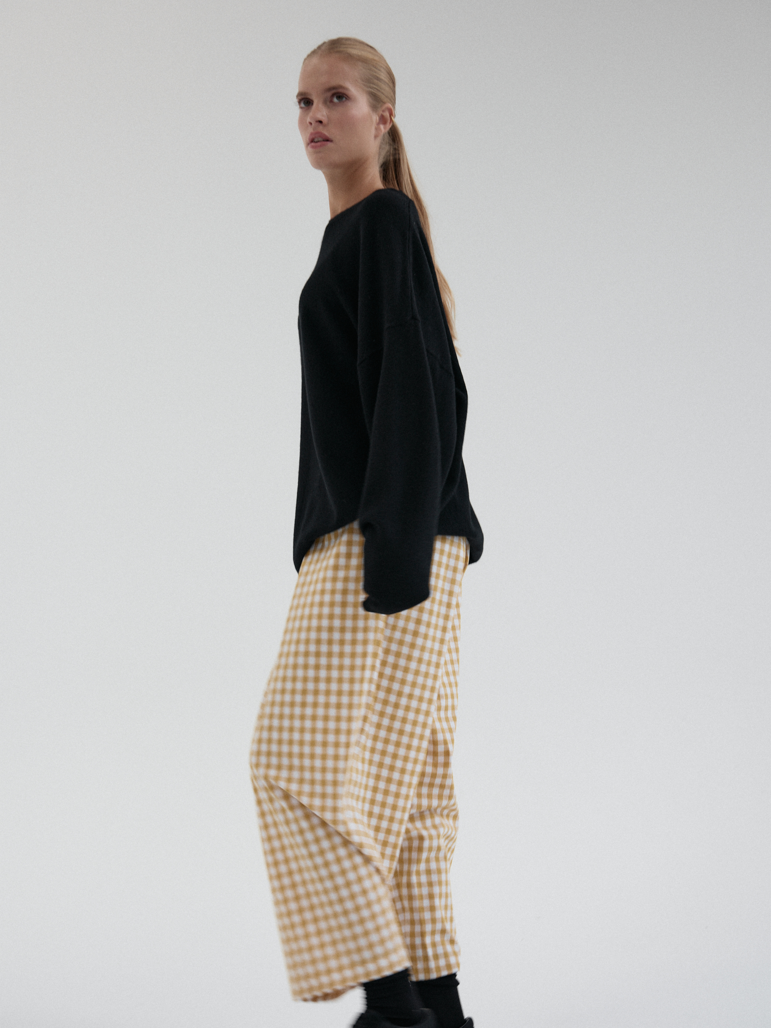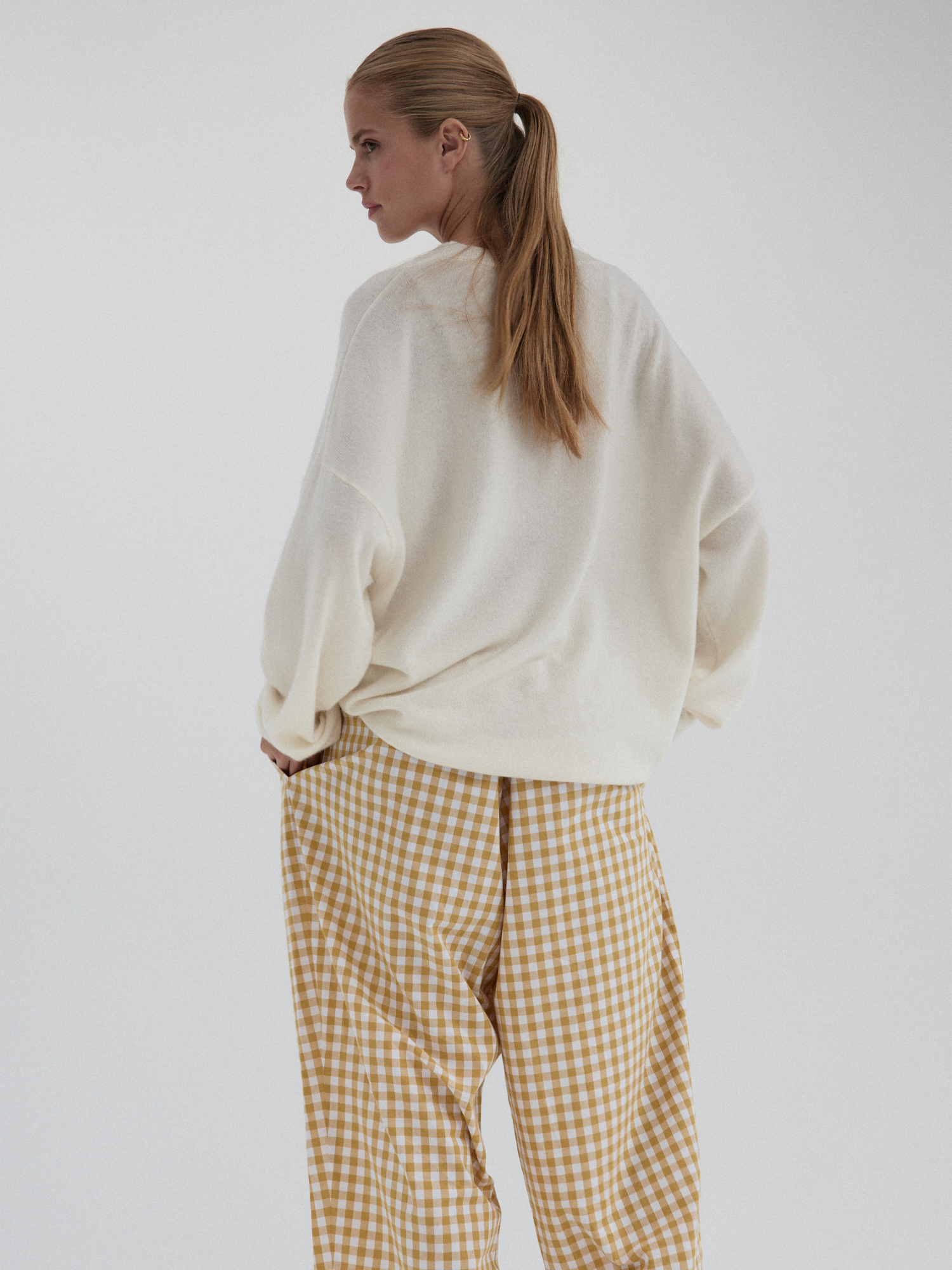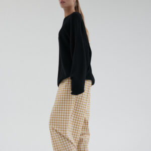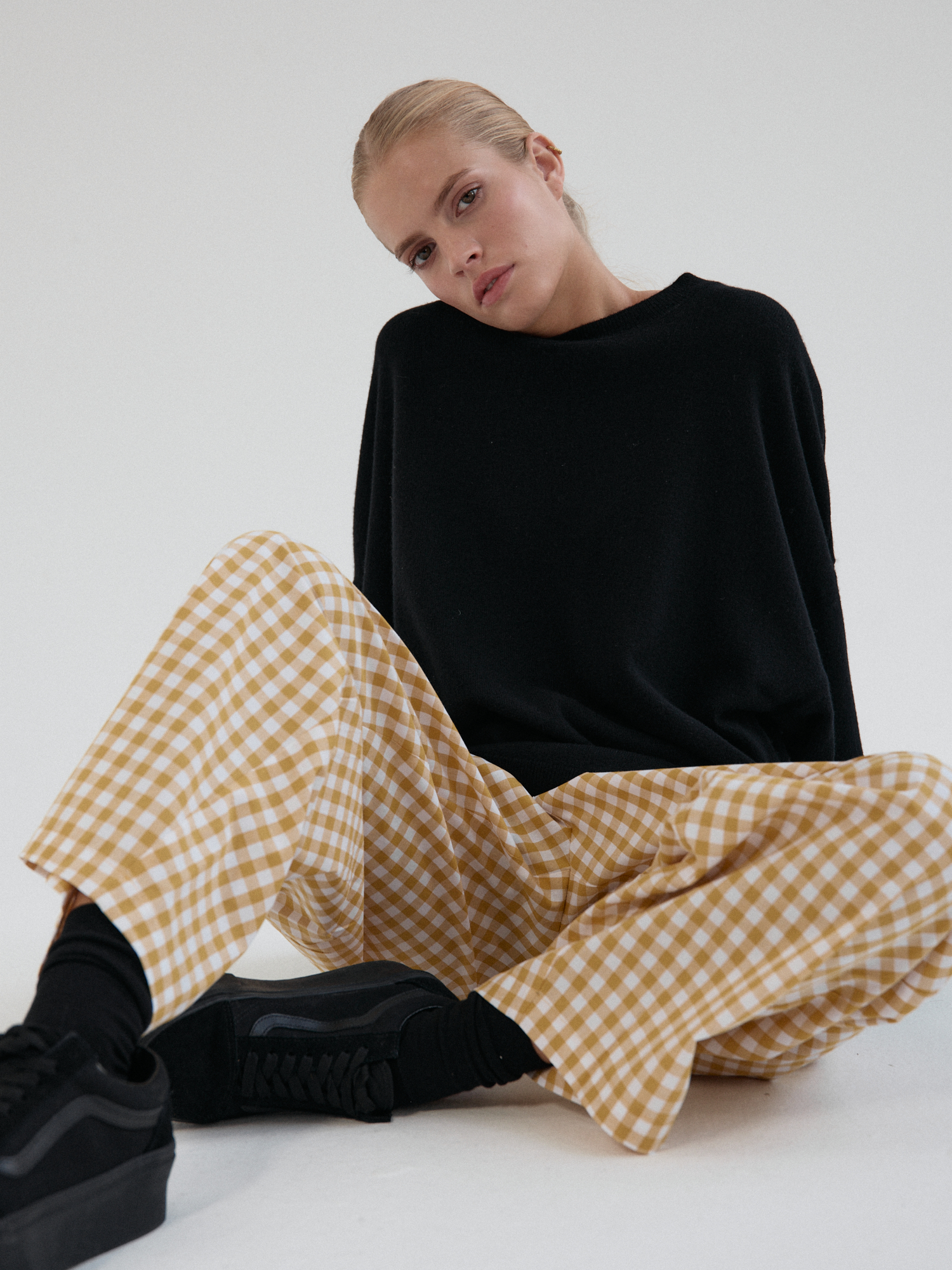Wyjątkowe spodnie o kroju balloon. Uszyte z lekkiej, przewiewnej tkaniny w klasyczną kratkę, stanowią idealne połączenie swobody i elegancji. Szeroka, luźna nogawka zwężająca się ku dołowi tworzy charakterystyczny, nowoczesny fason, a elastyczna talia z marszczeniem gwarantuje komfort i idealne dopasowanie do sylwetki. Dzięki unikalnej formie spodnie stanowią świetne urozmaicenie codziennych stylizacji. Z naszą koszulą MOIRE tworzy idealny zestaw na każdą okazję.