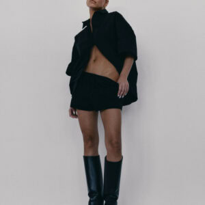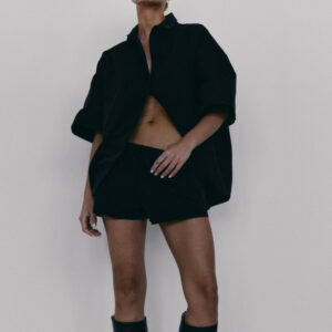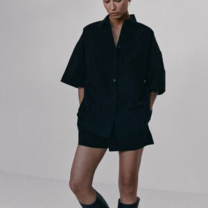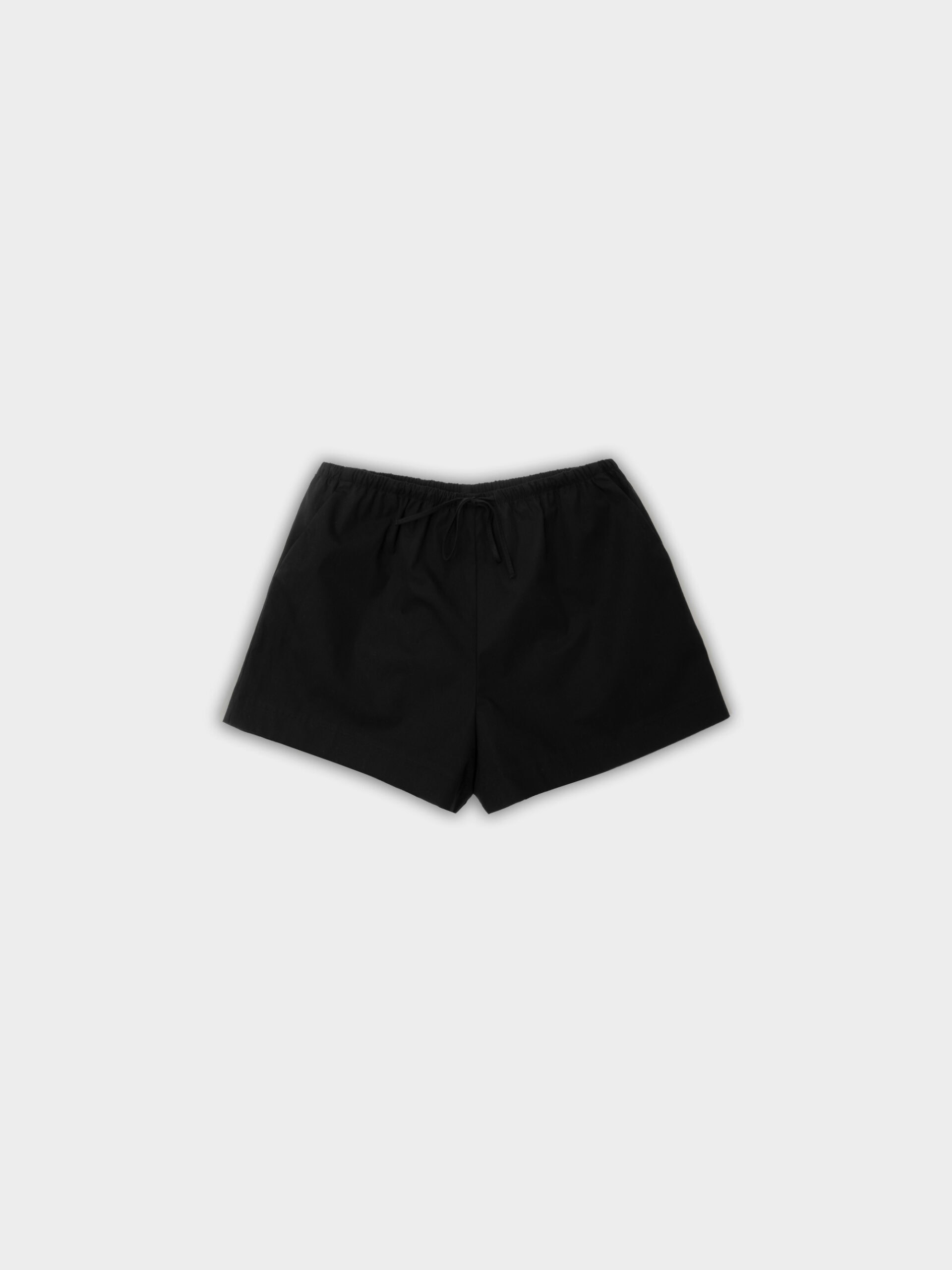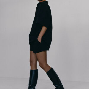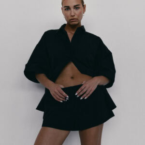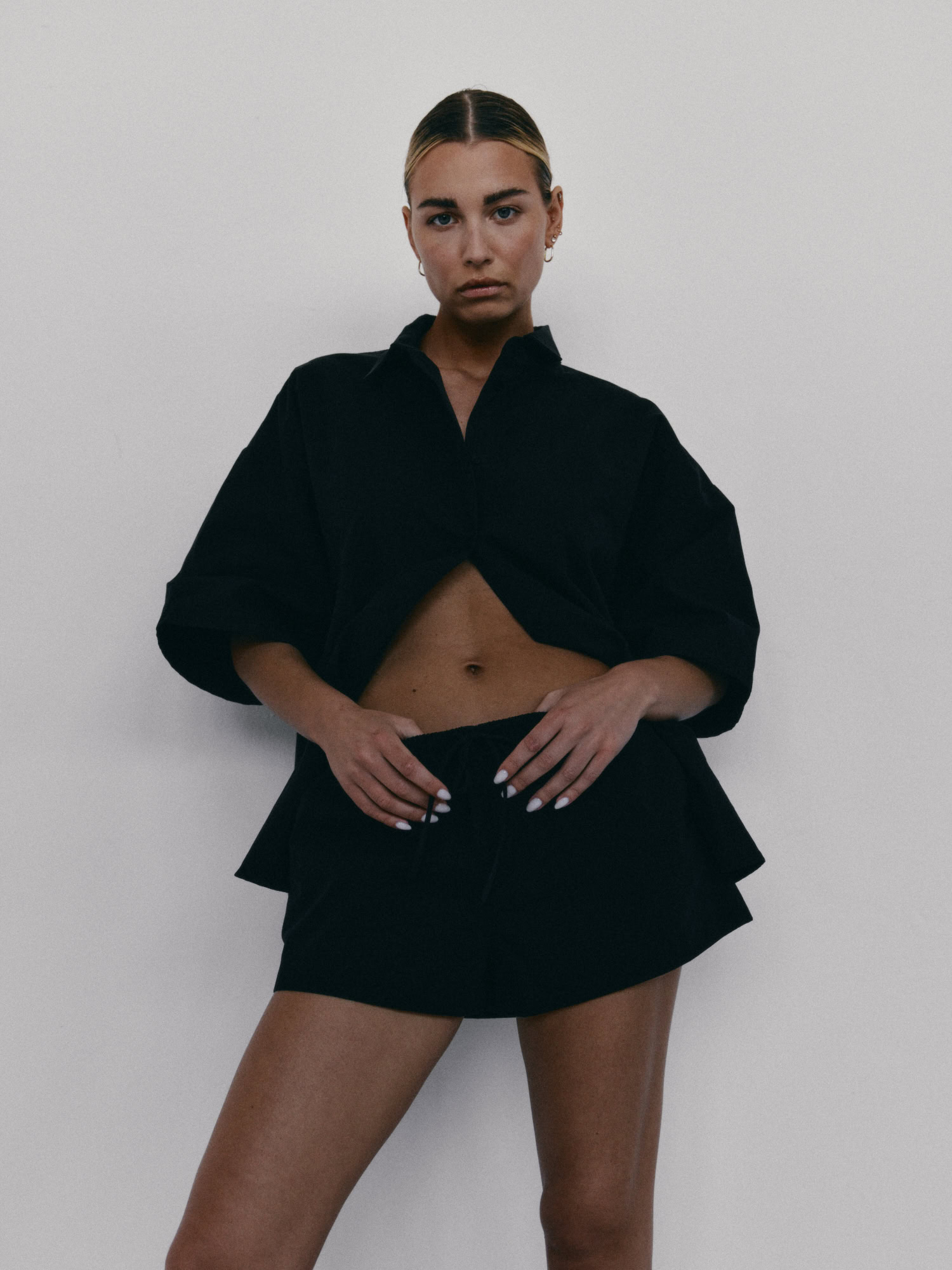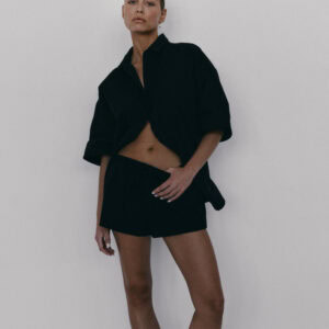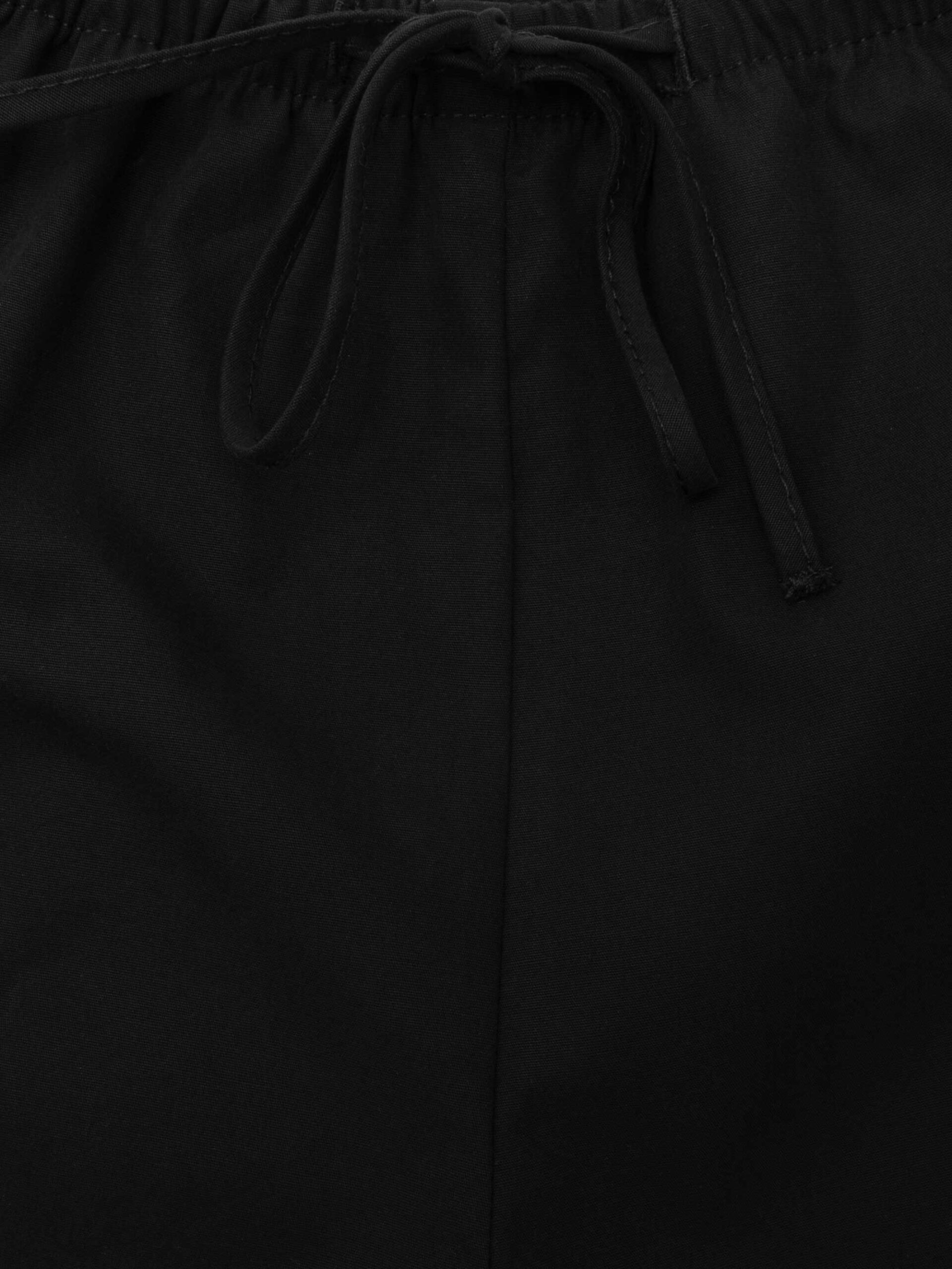 Bawełniane szorty o średnim stanie z elastyczną talią regulowaną sznurkiem. Model posiada dwie funkcjonalne kieszenie. Idealnie sprawdzi się zarówno z oversize’owym T-shirtem jak i dopasowanym topem.