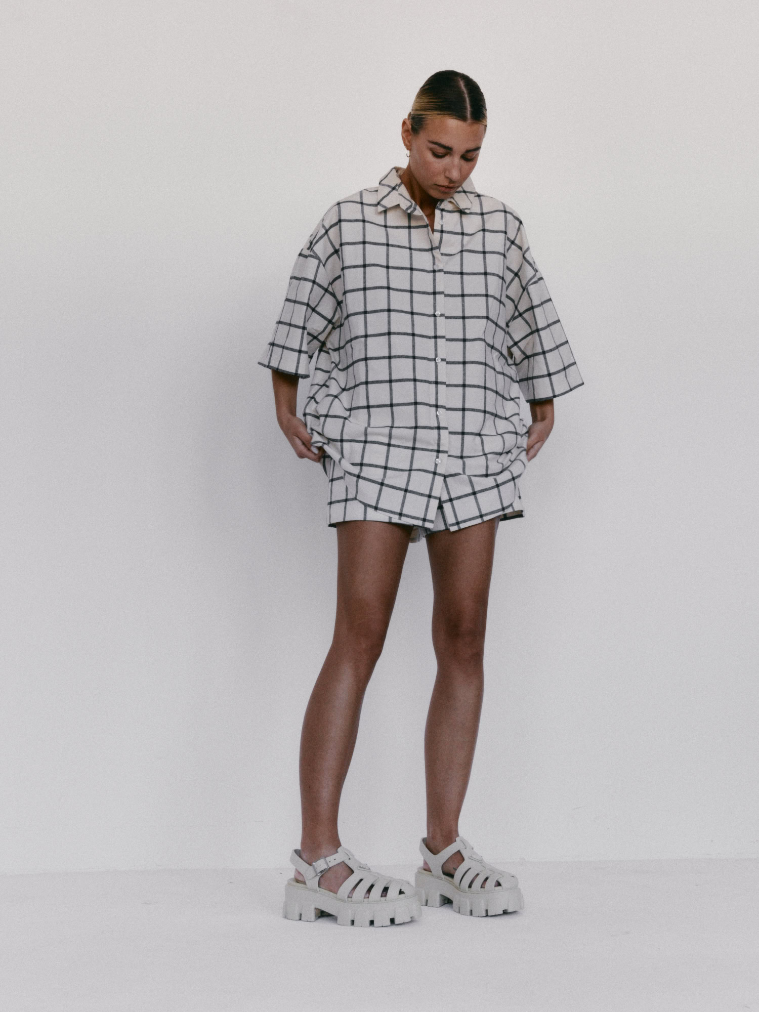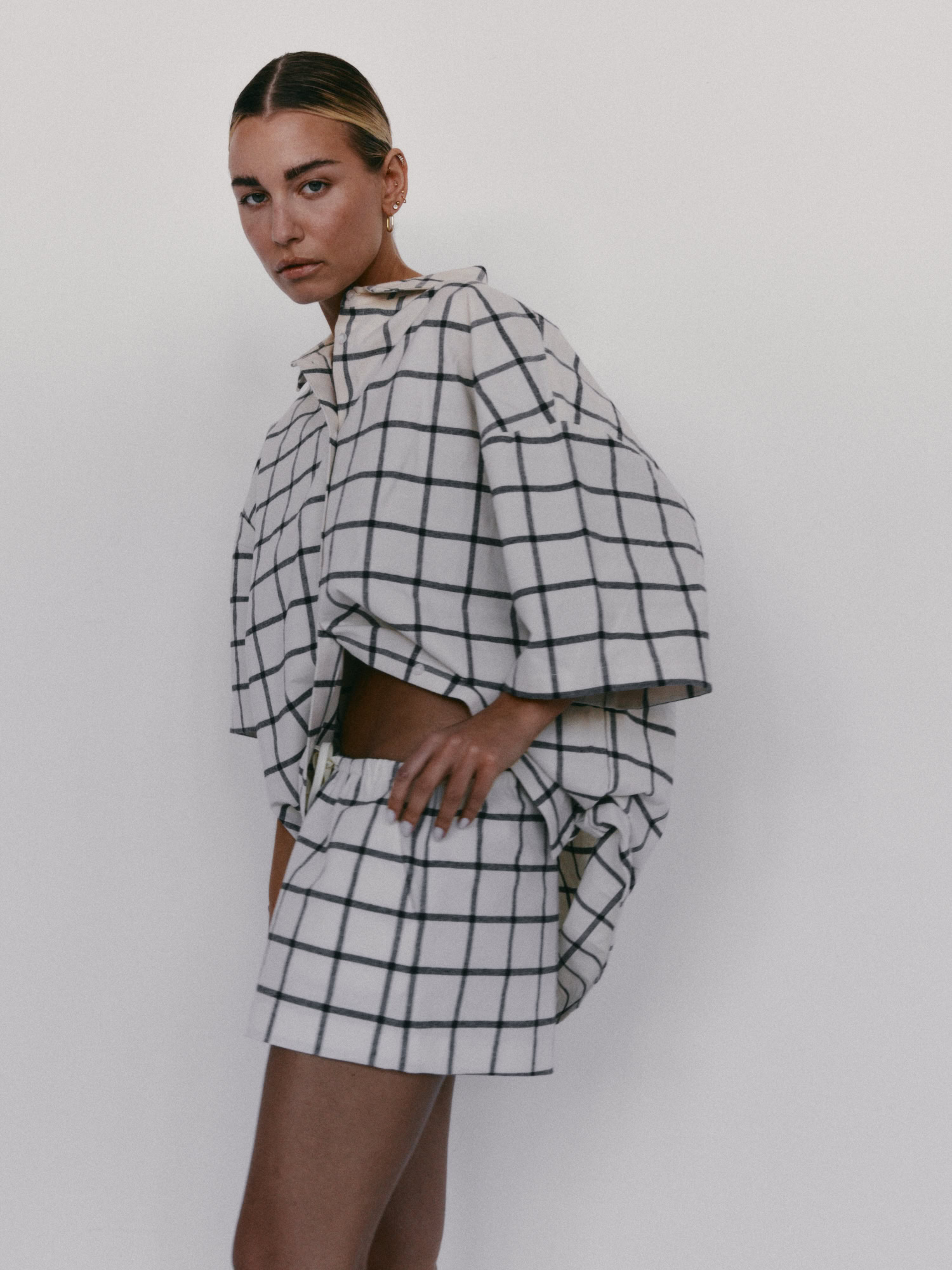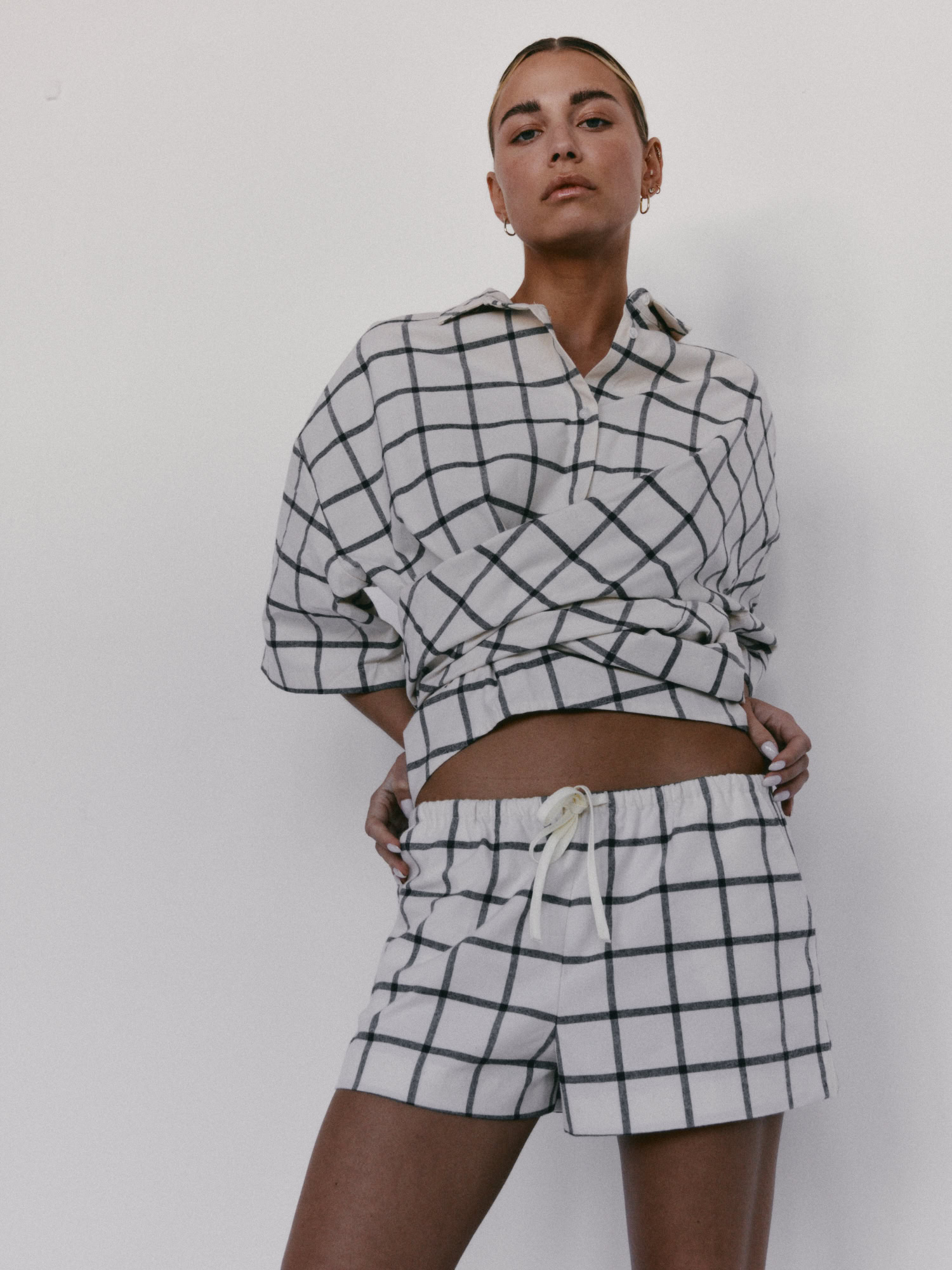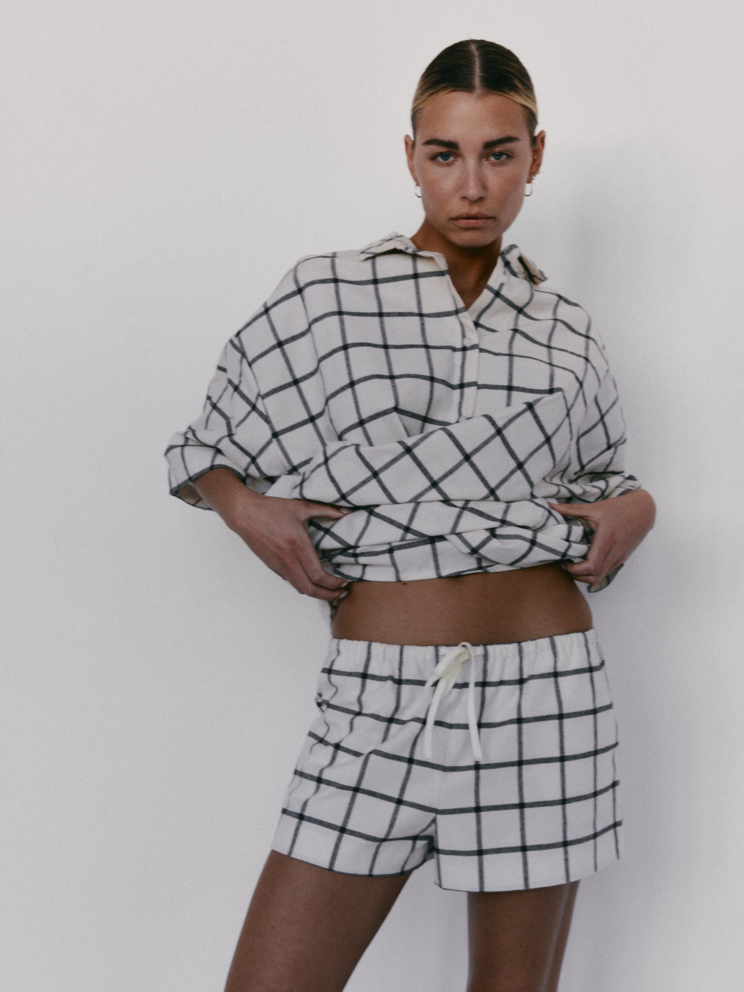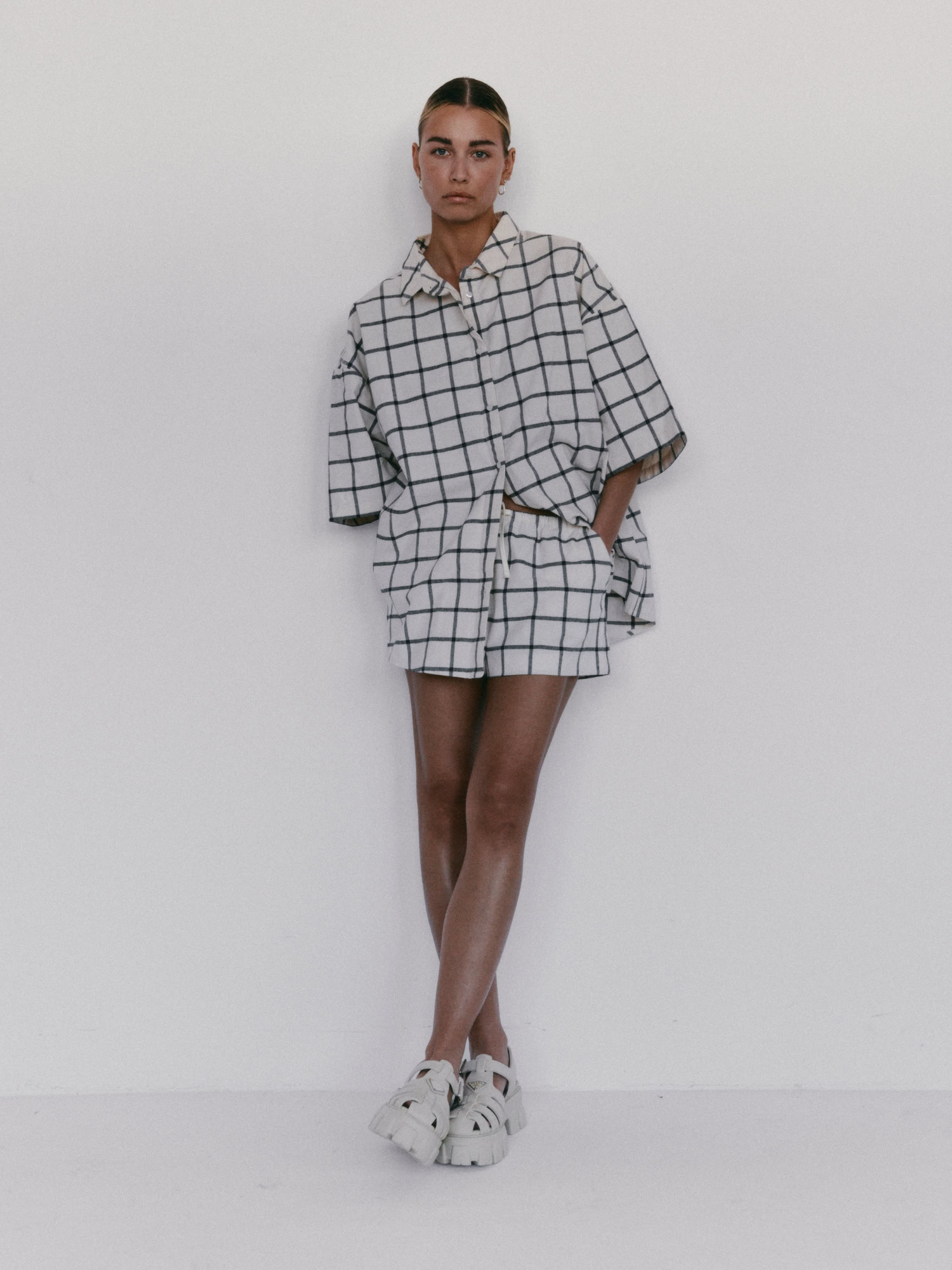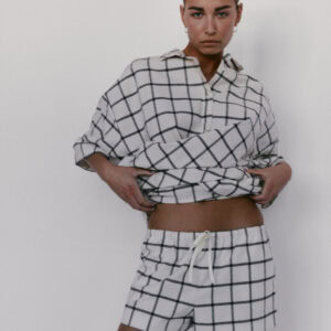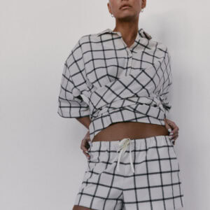 Bawełniane szorty o średnim stanie z elastyczną talią regulowaną sznurkiem. Model posiada dwie funkcjonalne kieszenie. Świetnie sprawdza się zarówno z oversize’owym T-shirtem jak i dopasowanym topem. Tworzą idealny zestaw z koszulą CREU.