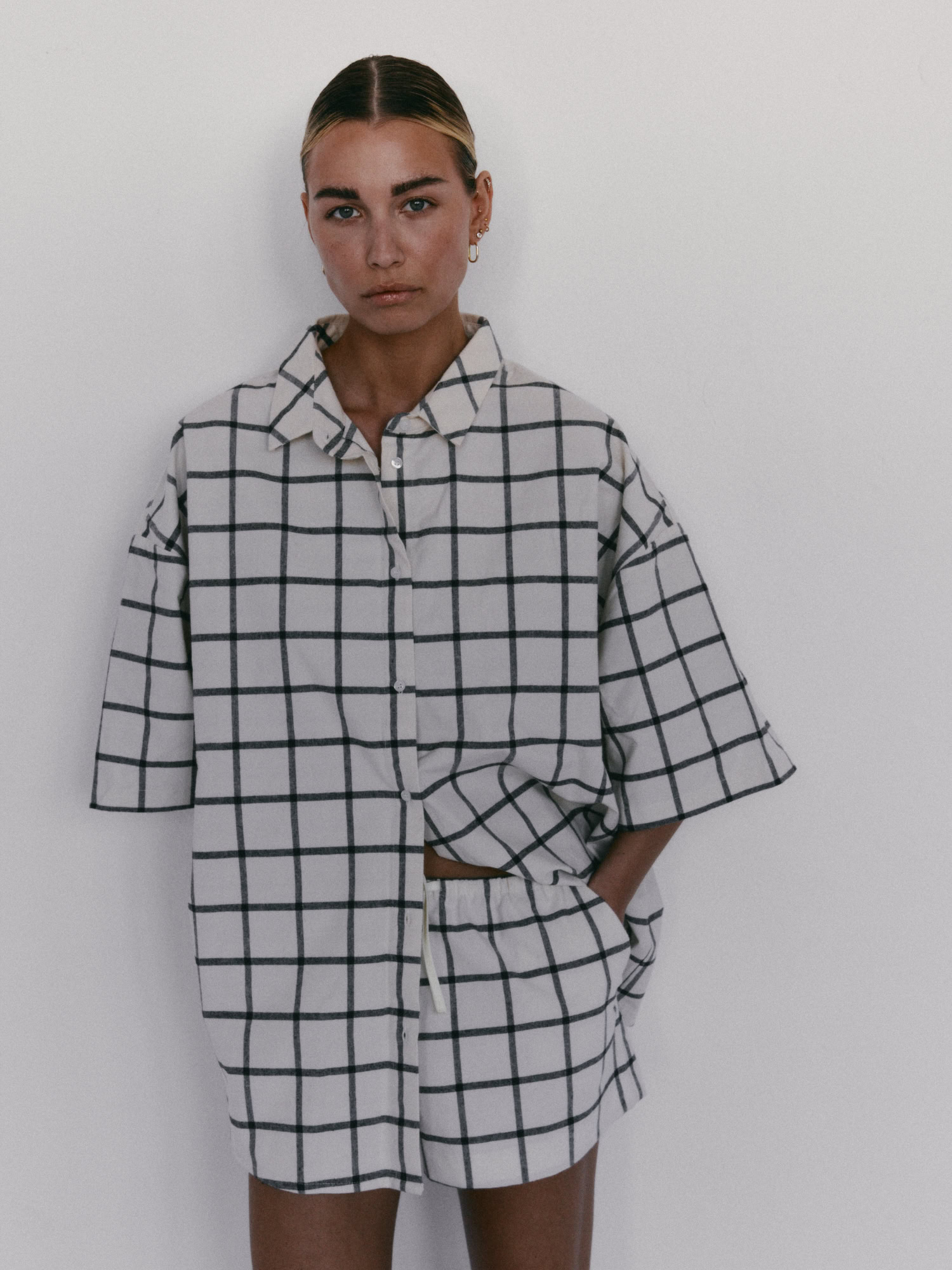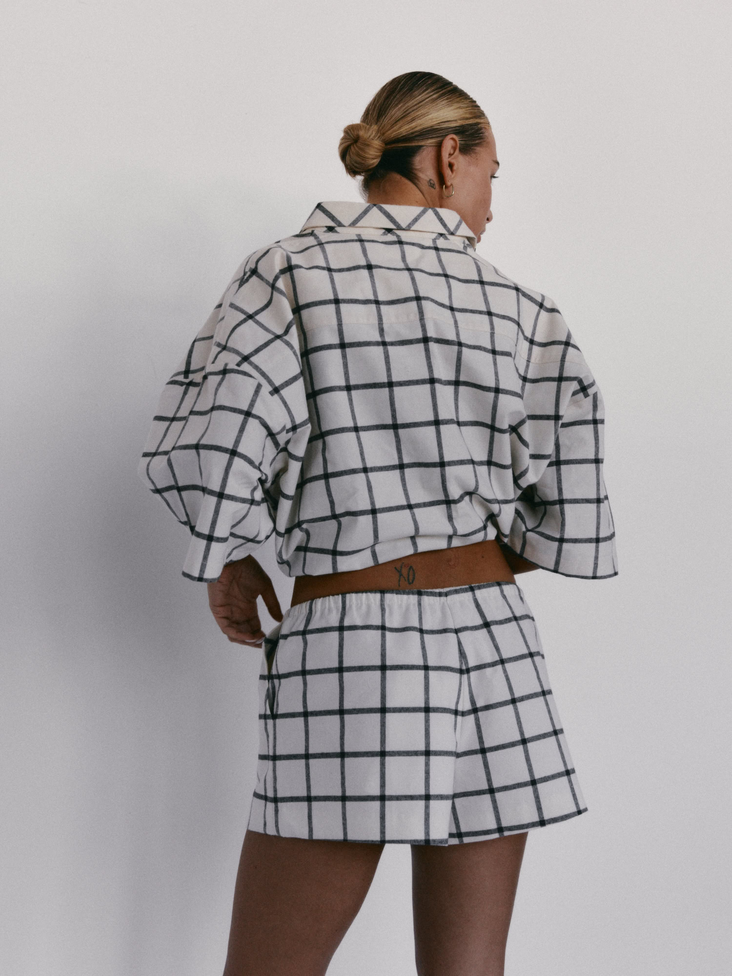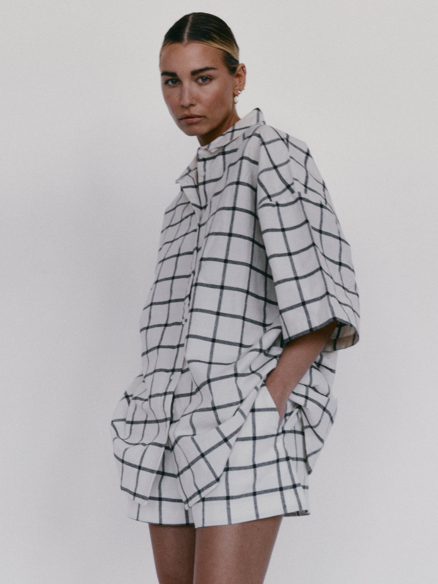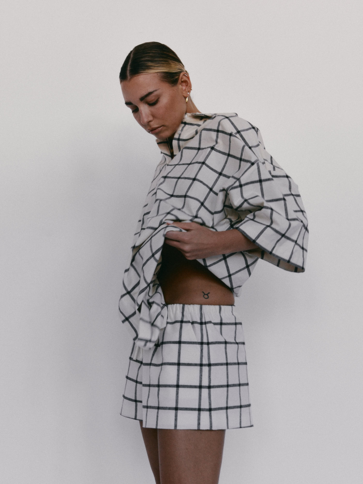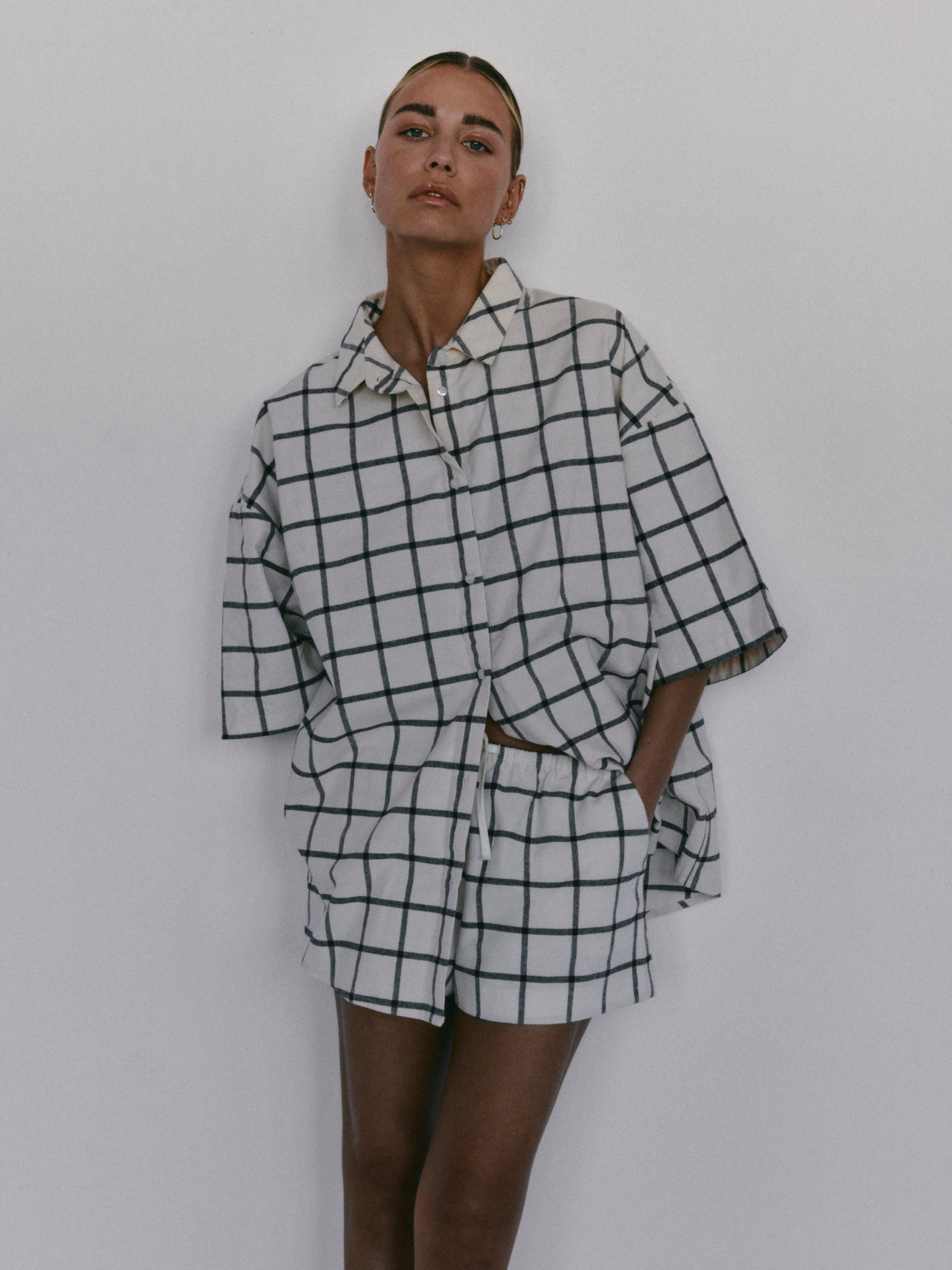 Bawełniane szorty o średnim stanie z elastyczną talią regulowaną sznurkiem. Model posiada dwie funkcjonalne kieszenie. Świetnie sprawdza się zarówno z oversize’owym T-shirtem jak i dopasowanym topem. Tworzą idealny zestaw z koszulą CREU.