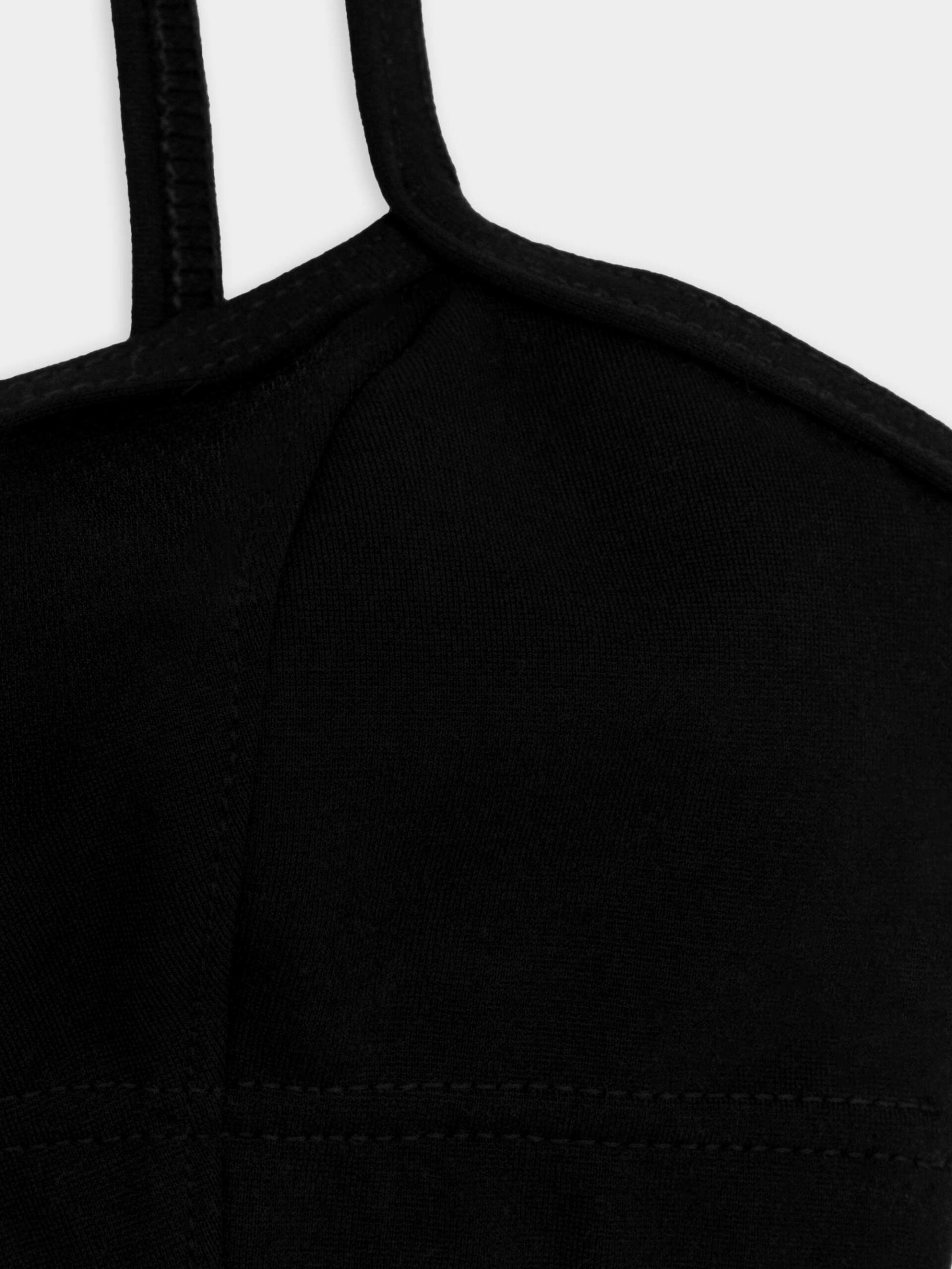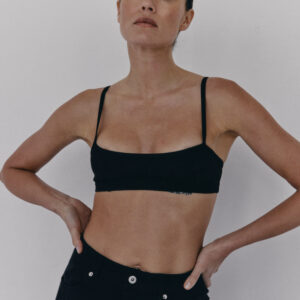 Biustonosz z przeszyciami na cienkich ramiączkach. Fason bez oddzielnych miseczek i fiszbin. Idealnie podtrzymuje biust i ładnie go kształtuje. Doskonale przylega do ciała, modeluje i zapewnia komfort noszenia. Nie posiada zapięcia, wkładany przez głowę.