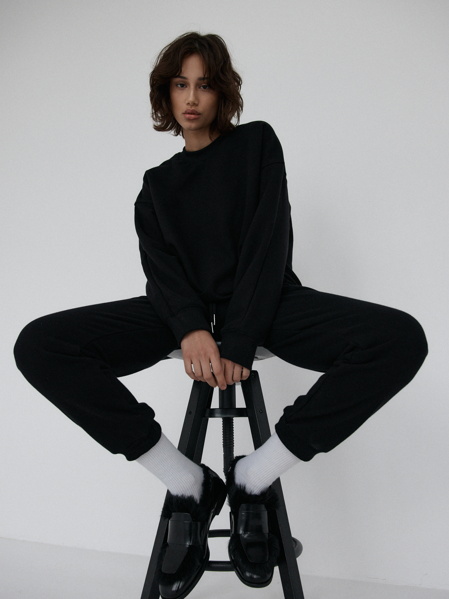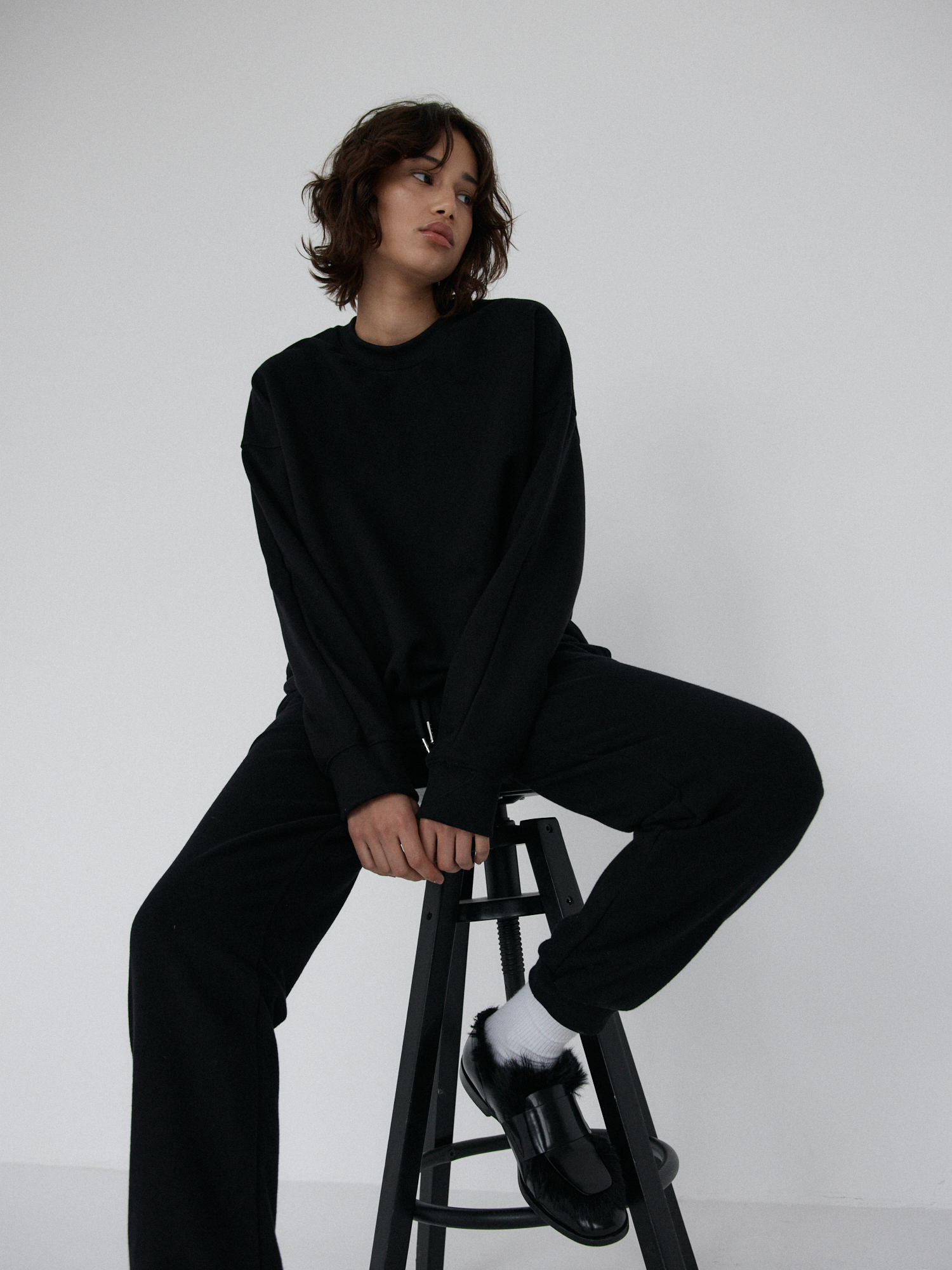 Minimalistyczna bluza typu crewneck. Idealna baza do codziennych stylizacji. Wykonana z miękkiej, przyjemnej w dotyku dzianiny, zapewnia pełen komfort noszenia. Luźny krój gwarantuje swobodę ruchów, a klasyczny dekolt i długie rękawy sprawiają, że bluza pasuje zarówno do spodni dresowych, jak i jeansów.