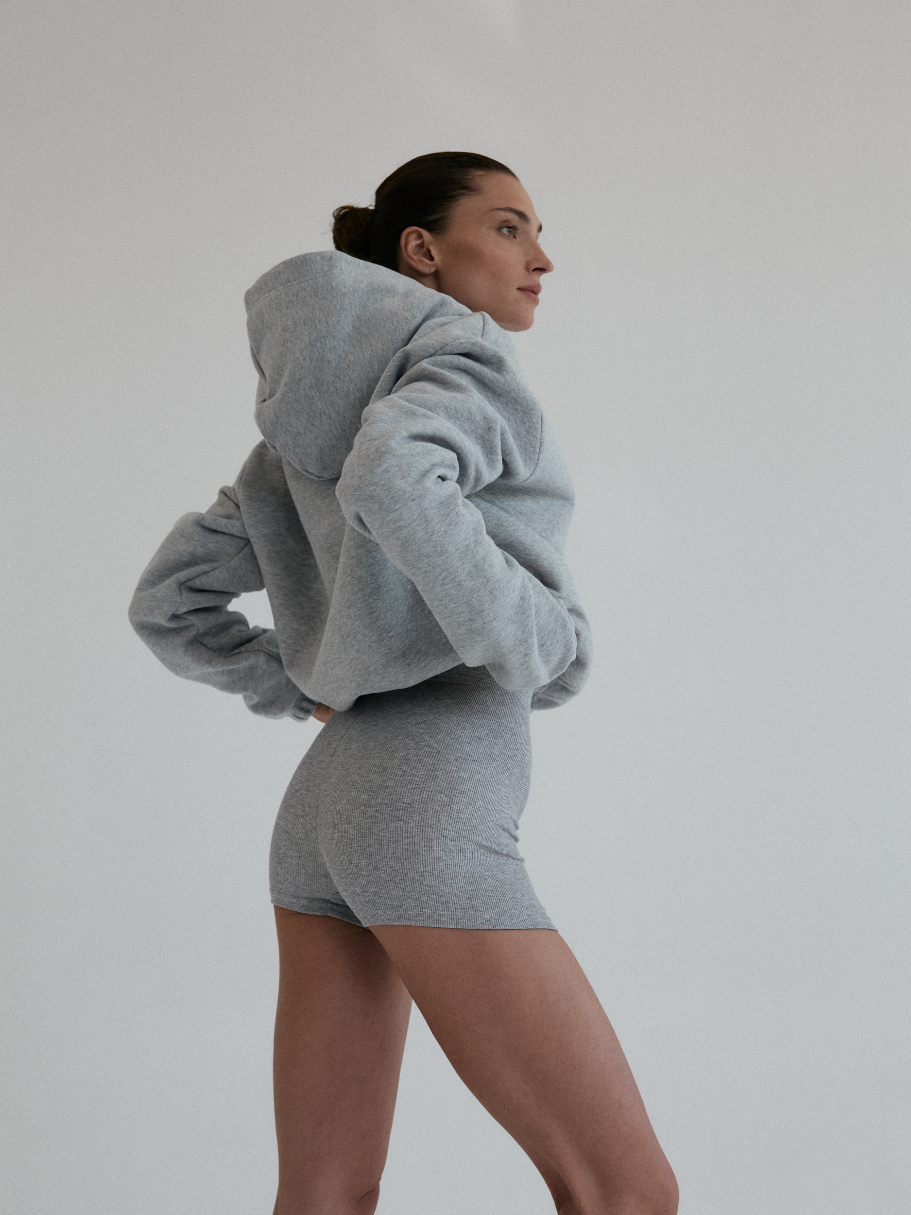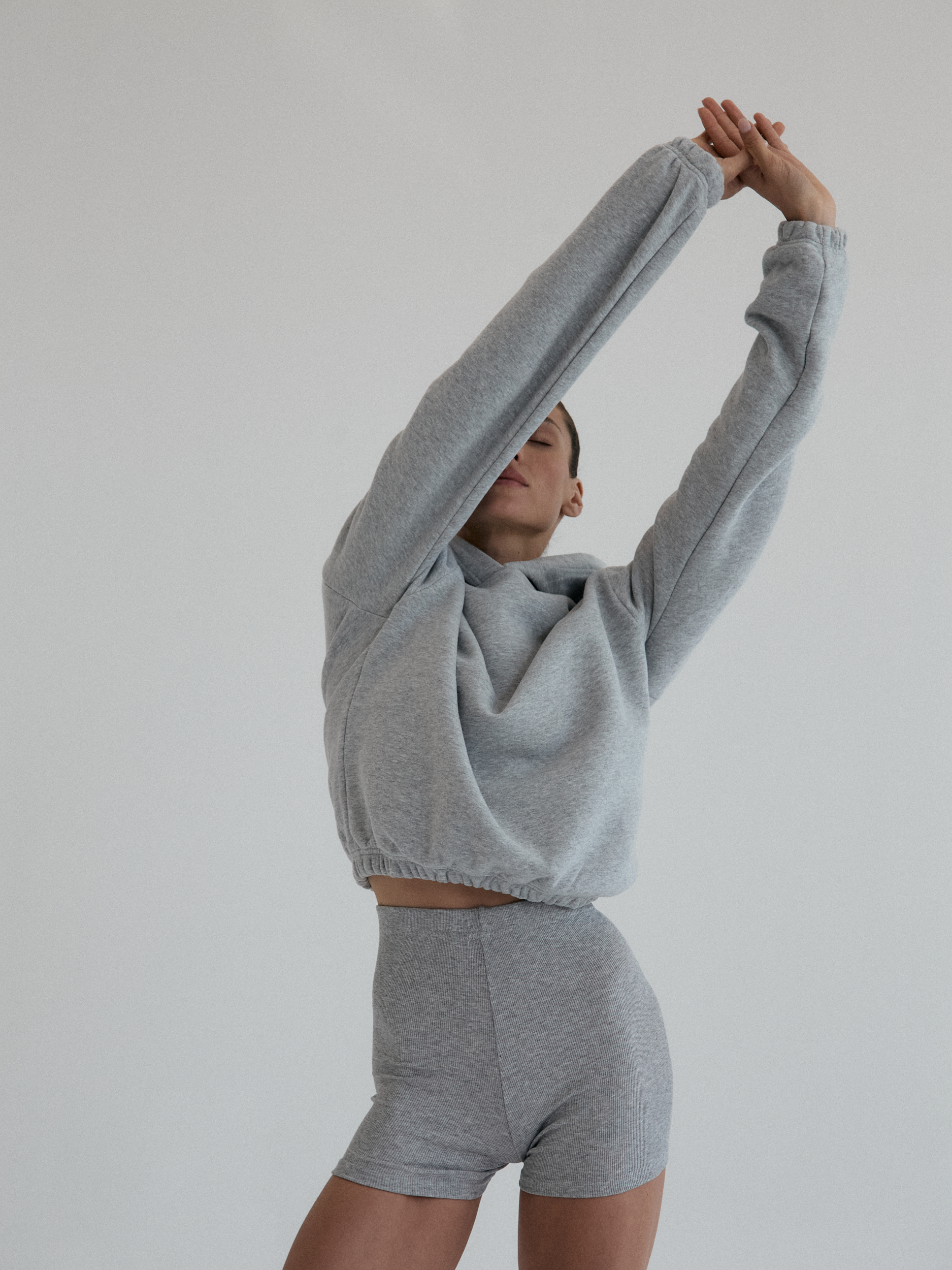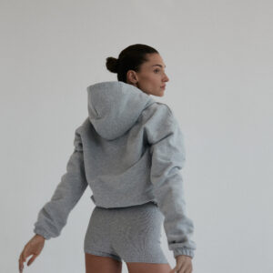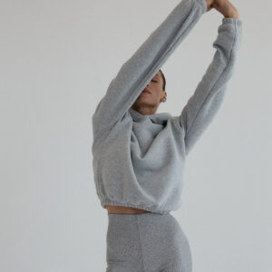 Oversize’owa bluza z kapturem typu crop top. Zaczepnie przydługie rękawy, obniżona linia ramion i skrócony fason dopełniają całości. Długość bluzy jest odpowiednia do jeansów, leginsów i spodni dresowych z wysokim stanem. Razem ze spodniami dresowymi z wysokim stanem SMOOTH COTTON milk chocolate stanowią zestaw doskonały.