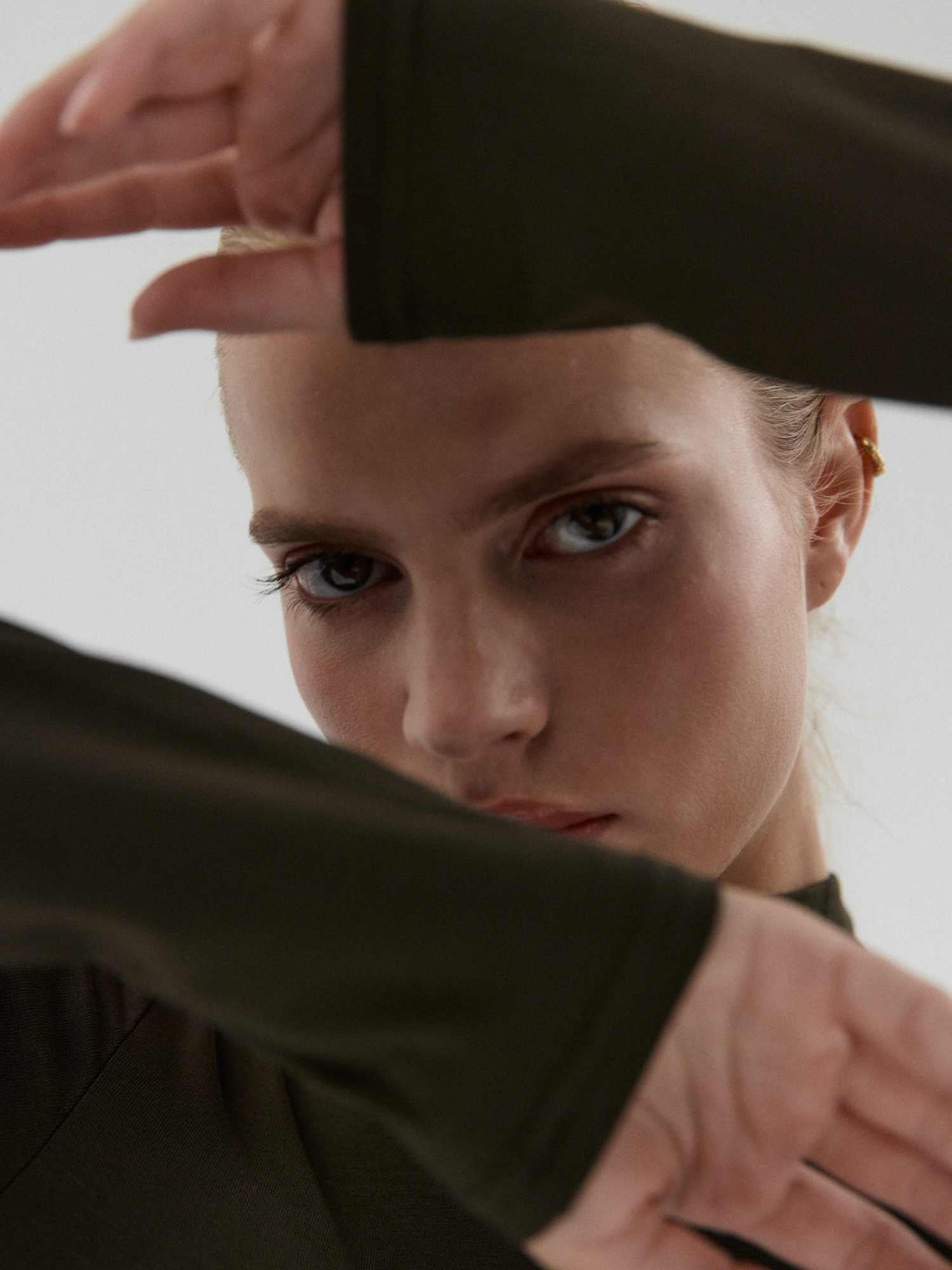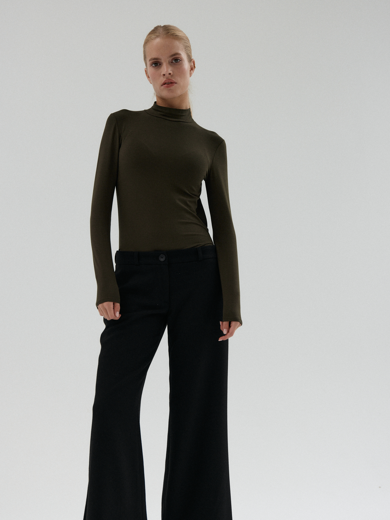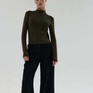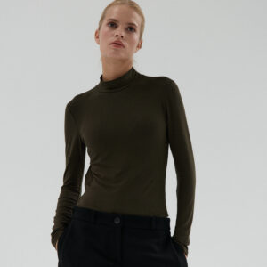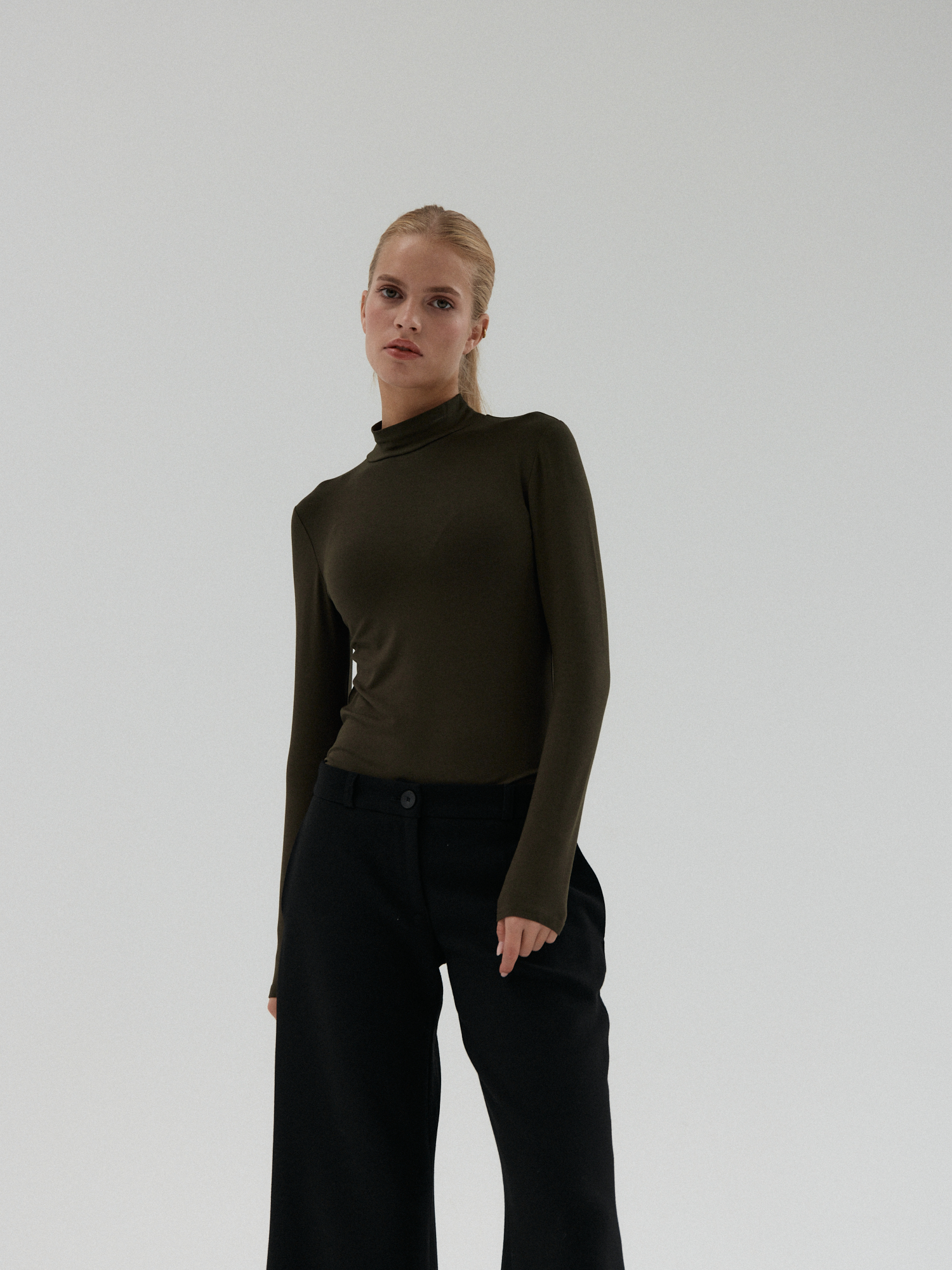 Minimalistyczne body z długim rękawem, półgolfem oraz obszernym, okrągłym wycięciem na plecach. Zapinane na zatrzaski. Produkt mocno opina ciało, pozwalając wydobyć atuty sylwetki, a przy tym nie krępuje ruchów. Body doskonale sprawdzą się w każdej sytuacji.  Najlepiej prezentują się w monochromatycznych zestawach. Będzie świetnie wyglądać zarówno w casualowej, jak i w wieczorowej wersji.