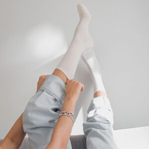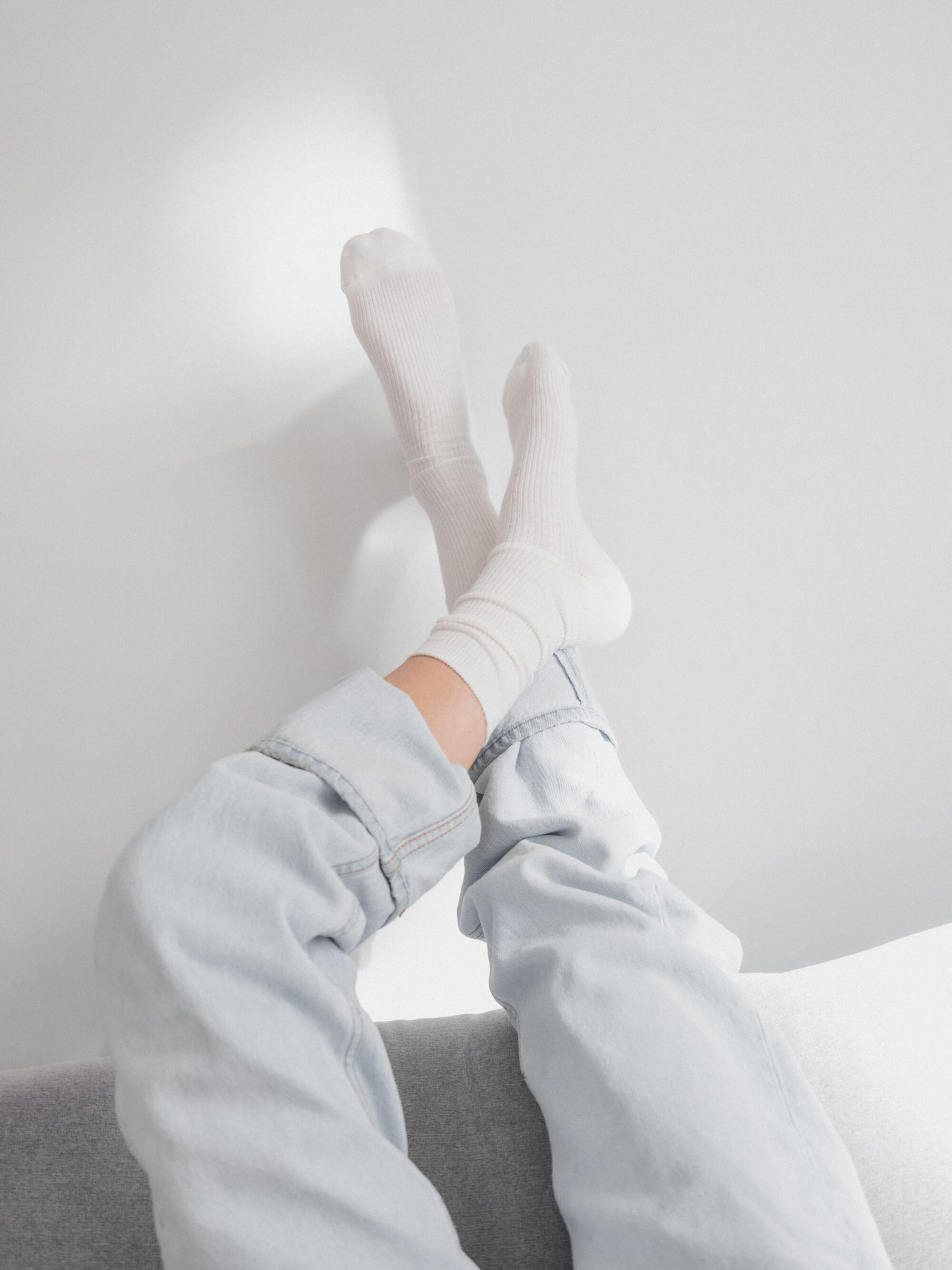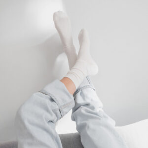 Bawełniane cienkie skarpetki. Wysokość za kostkę. Skarpetki wykonane są z prążkowanej dzianiny wykończonej ściągaczem.