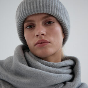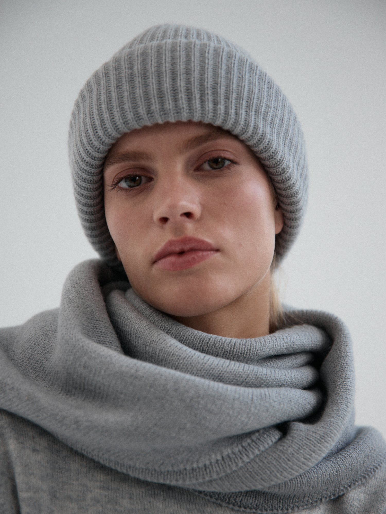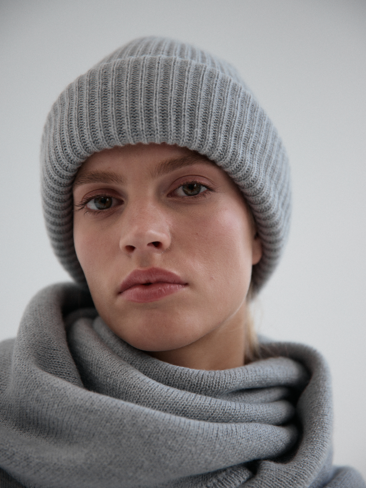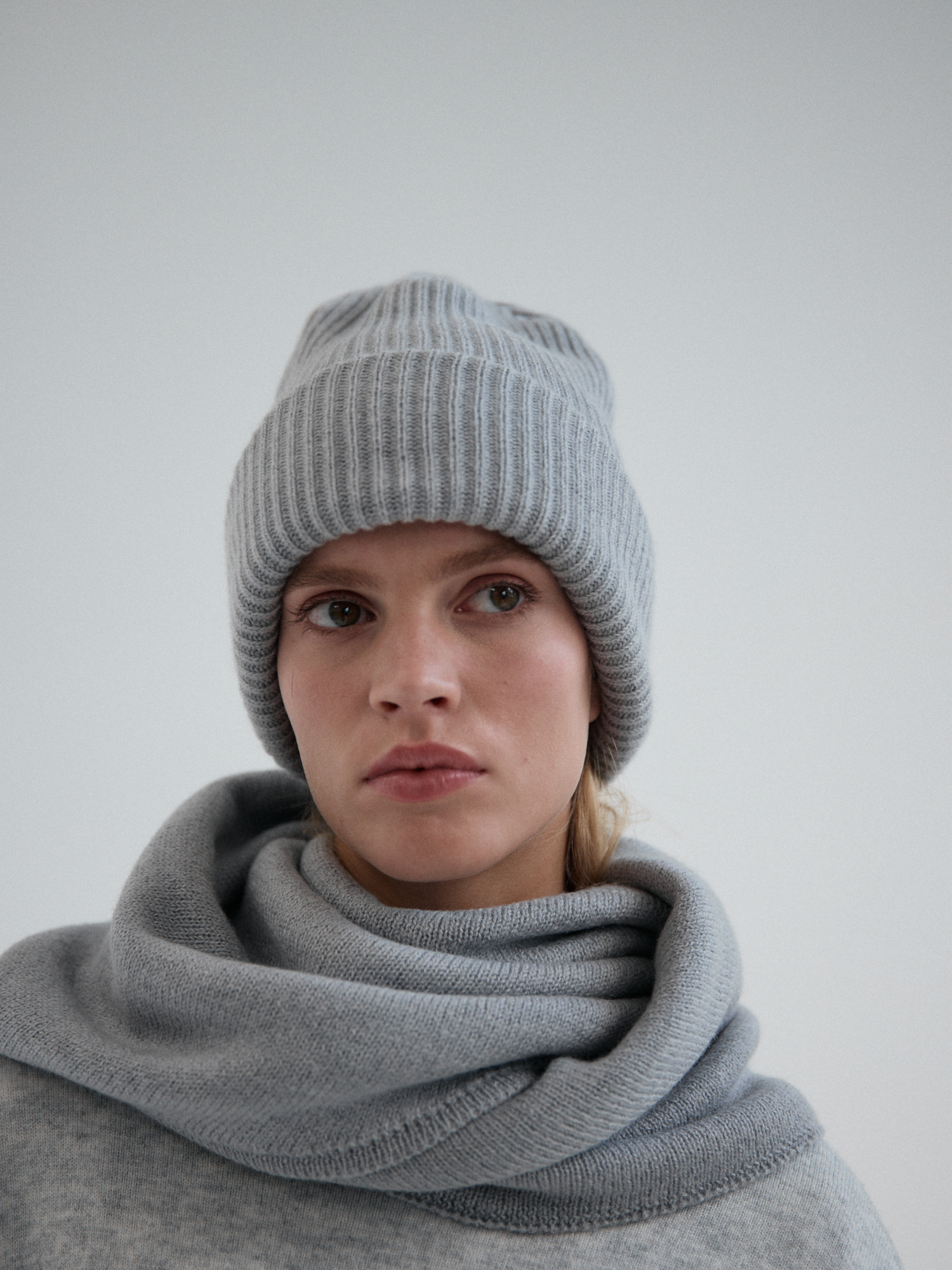 Minimalistyczna czapka z wełny merino. Idealnie chroni przed wiatrem i chłodem. Można ją nosić wedle uznania, podwiniętą na raz zostawiając długi tył, lub podwiniętą na dwa razy dopasowując ją do głowy.