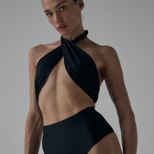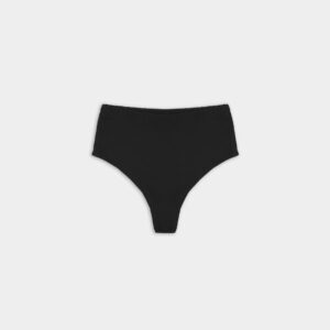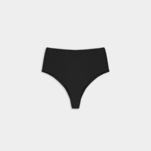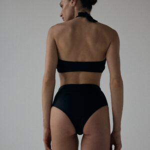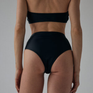 Figi kąpielowe typu high-waist. O klasycznym kroju z mocno podwyższonym stanem, kończące się nad linią pępka. Produkt delikatnie podkreśla wcięcie w talii oraz pupę, przez co pozwala zamaskować drobne niedoskonałości. Optymalne zabudowanie majtek zapewnia komfort noszenia, a dzięki wykończeniu specjalistycznymi gumkami, figi nie zwijają się, ani nie marszczą.