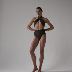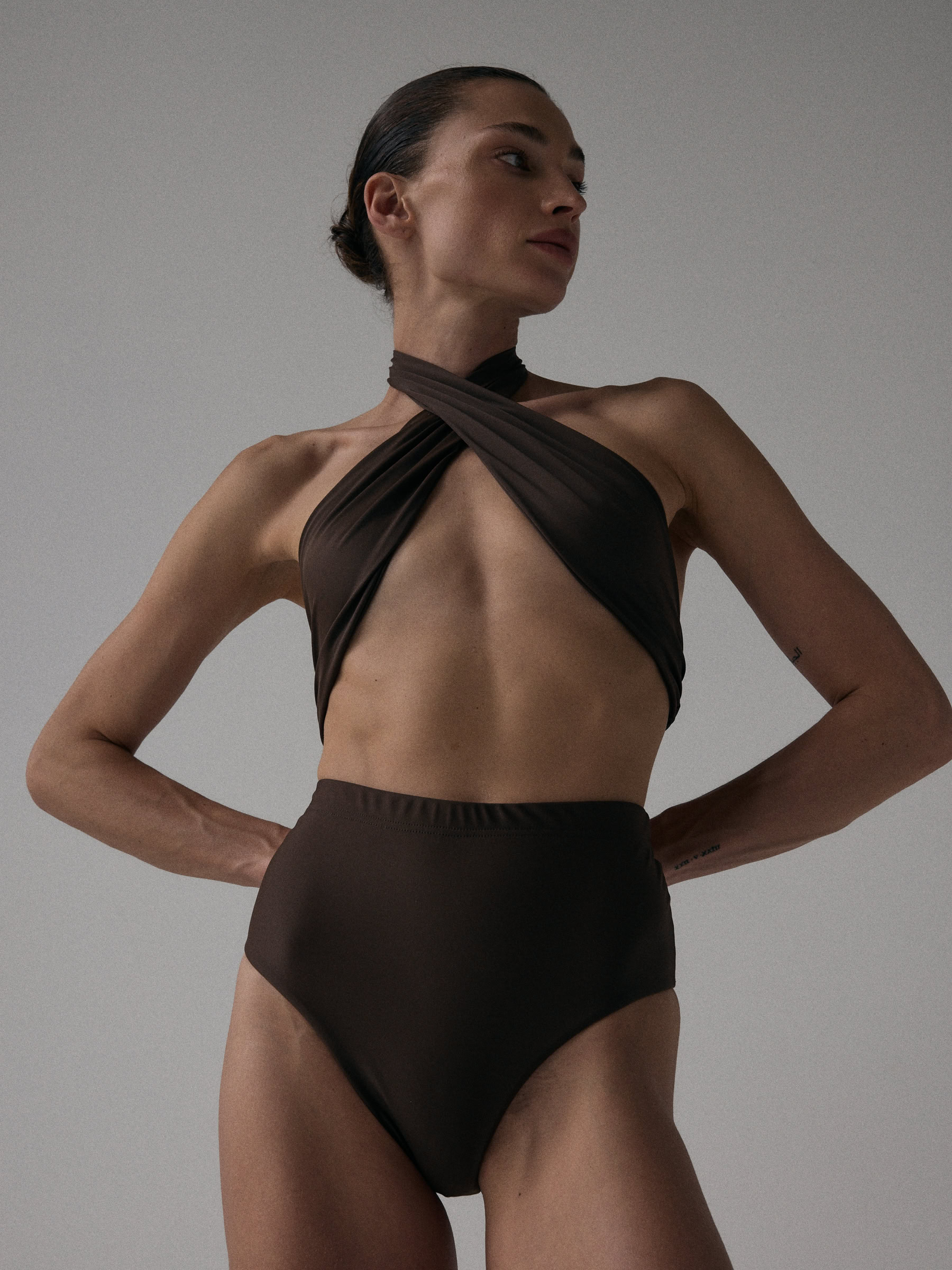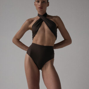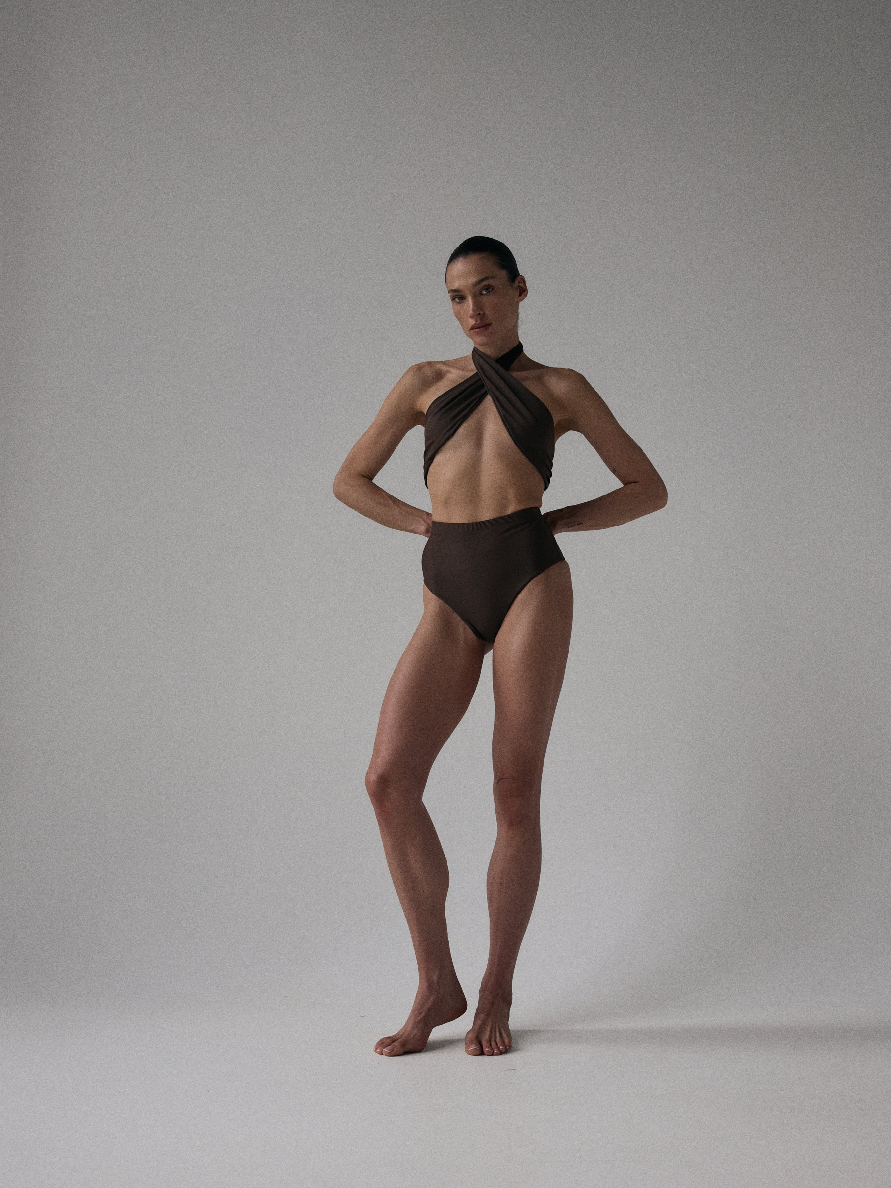 figi kąpielowe typu high-waist OJALA dark chocolate
