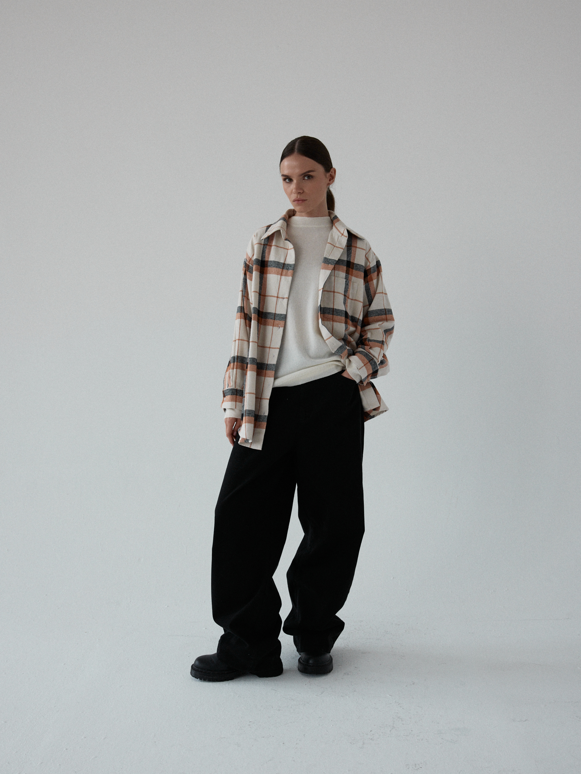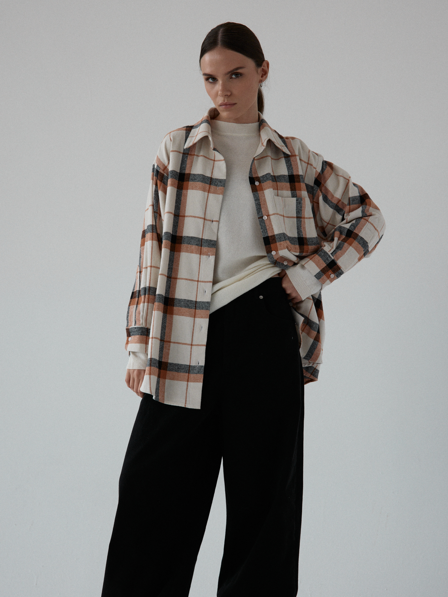 Koszula o luźnym, ultra oversize’owym kroju wykonana z bawełnianej tkaniny. Klasyczna, nieco wydłużona. Prosty, duży kołnierzyk, szerokie mankiety i kieszonka umieszczona z prawej strony dopełnia całości. Model zapinany na guziki. Świetnie wygląda z jeansami w każdym odcieniu jak i garniturowymi spodniami.