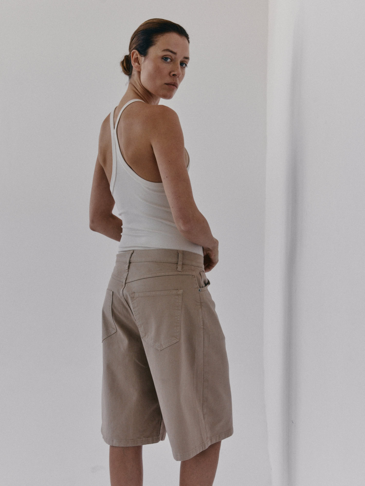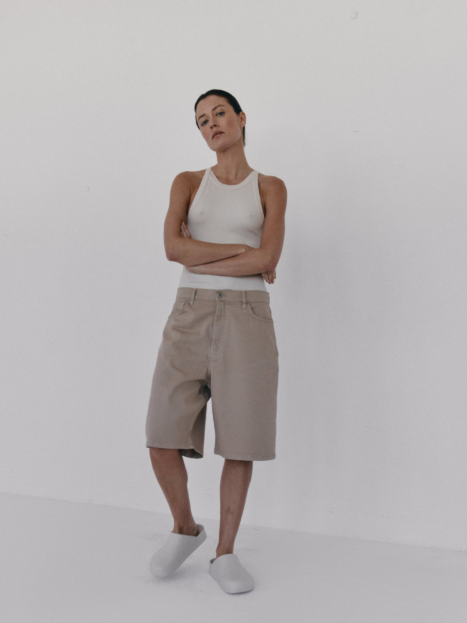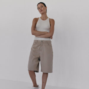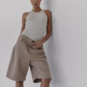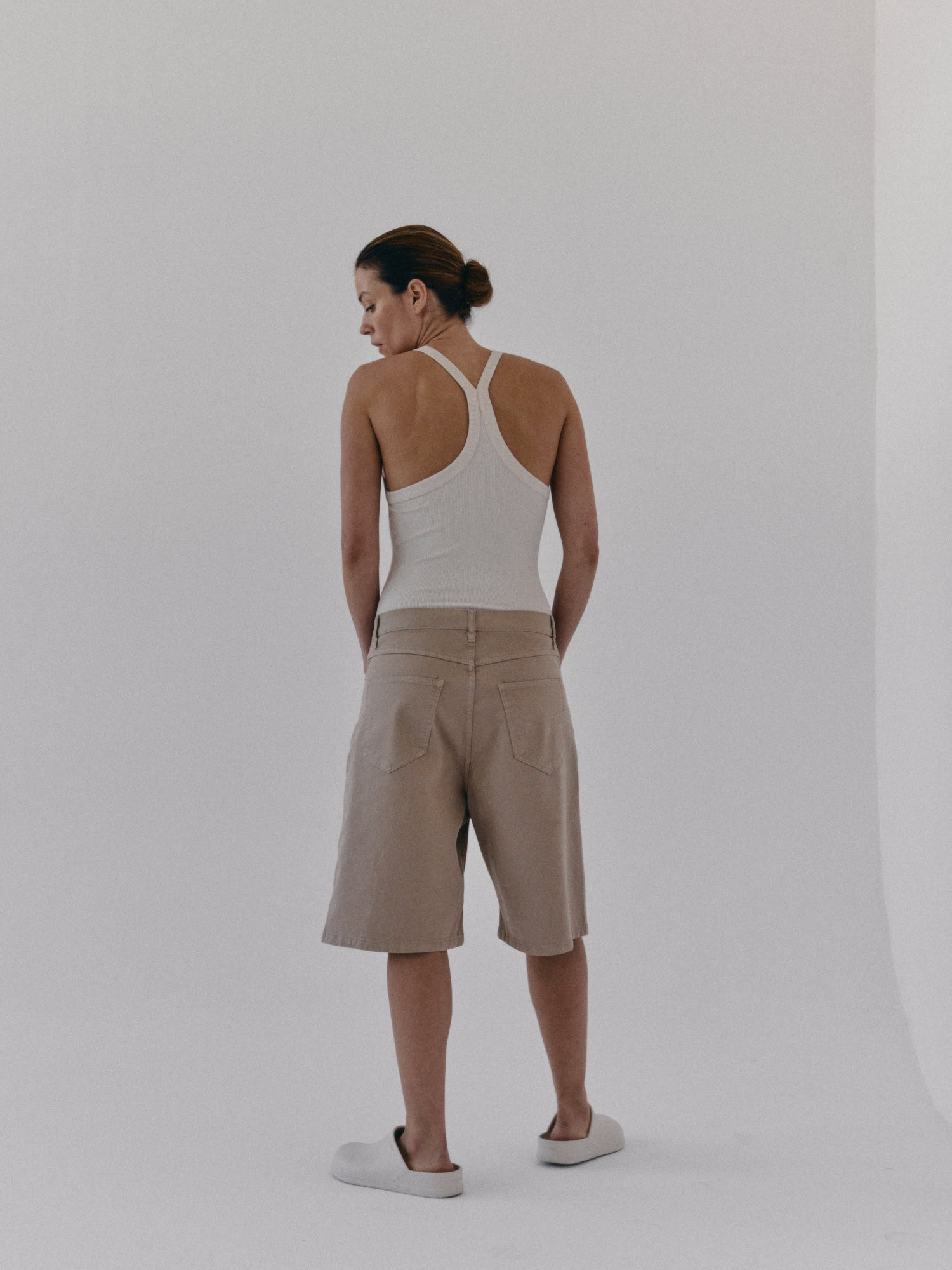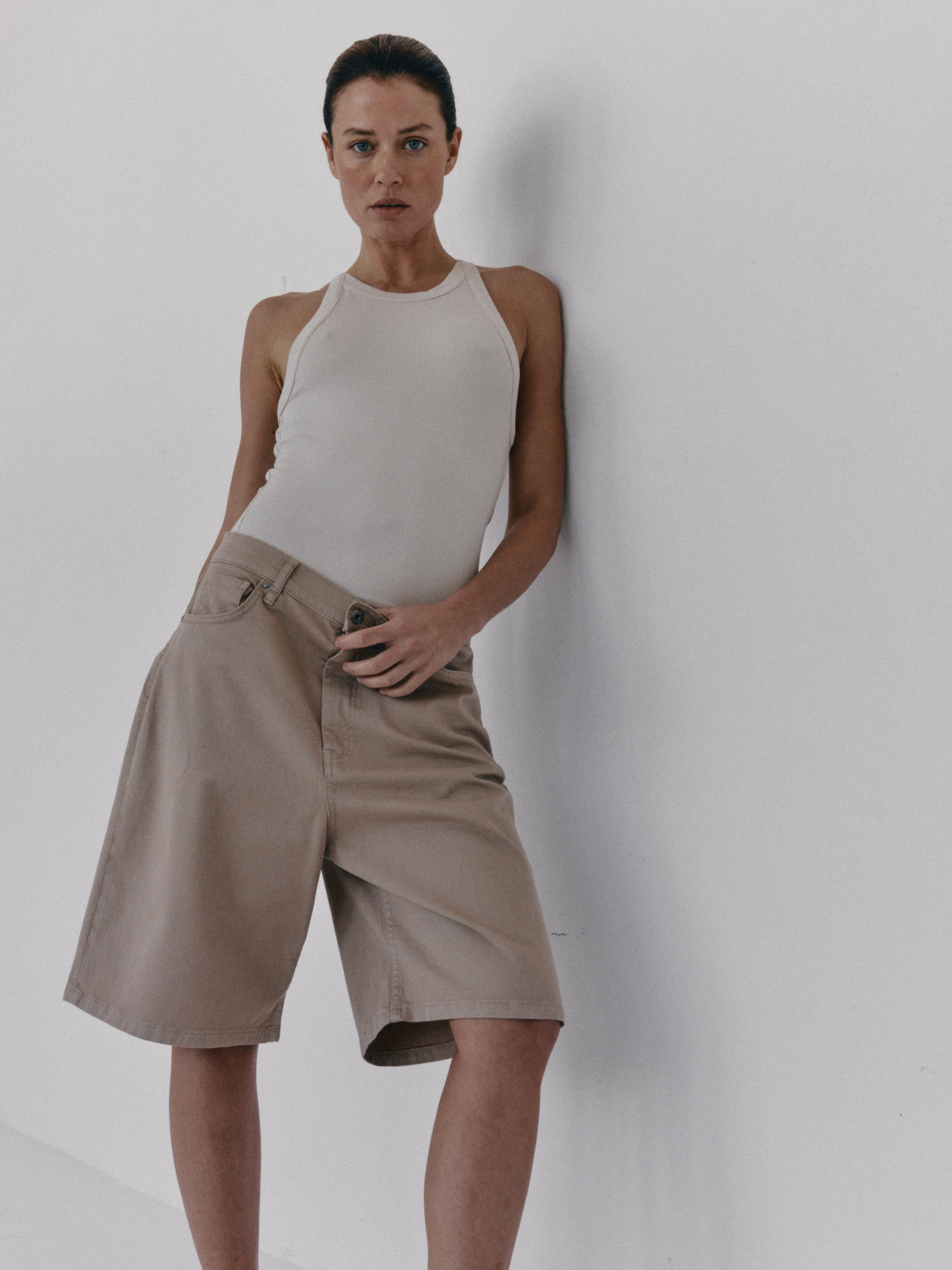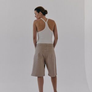 Prążkowany tank top na ramiączka. Model posiada ozdobny tył typu racer. Dopasowany fason oraz elastyczna dzianina zapewnia maksymalną swobodę ruchu. Top sprawdzi się do każdej stylizacji, zarówno w sportowym połączeniu z legginsami jak i eleganckim z marynarką.