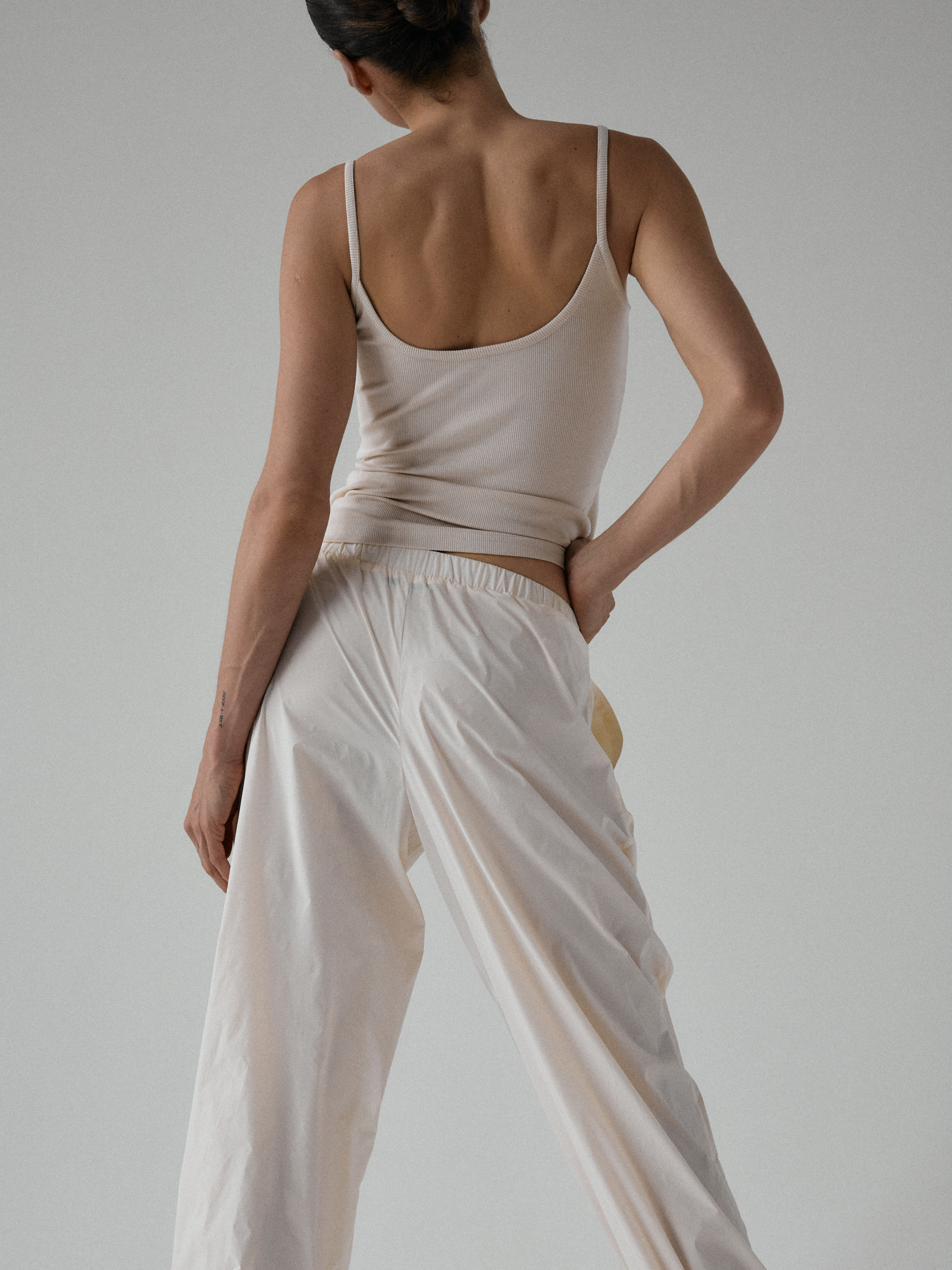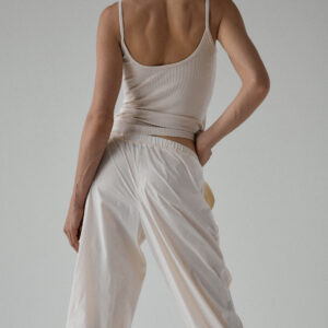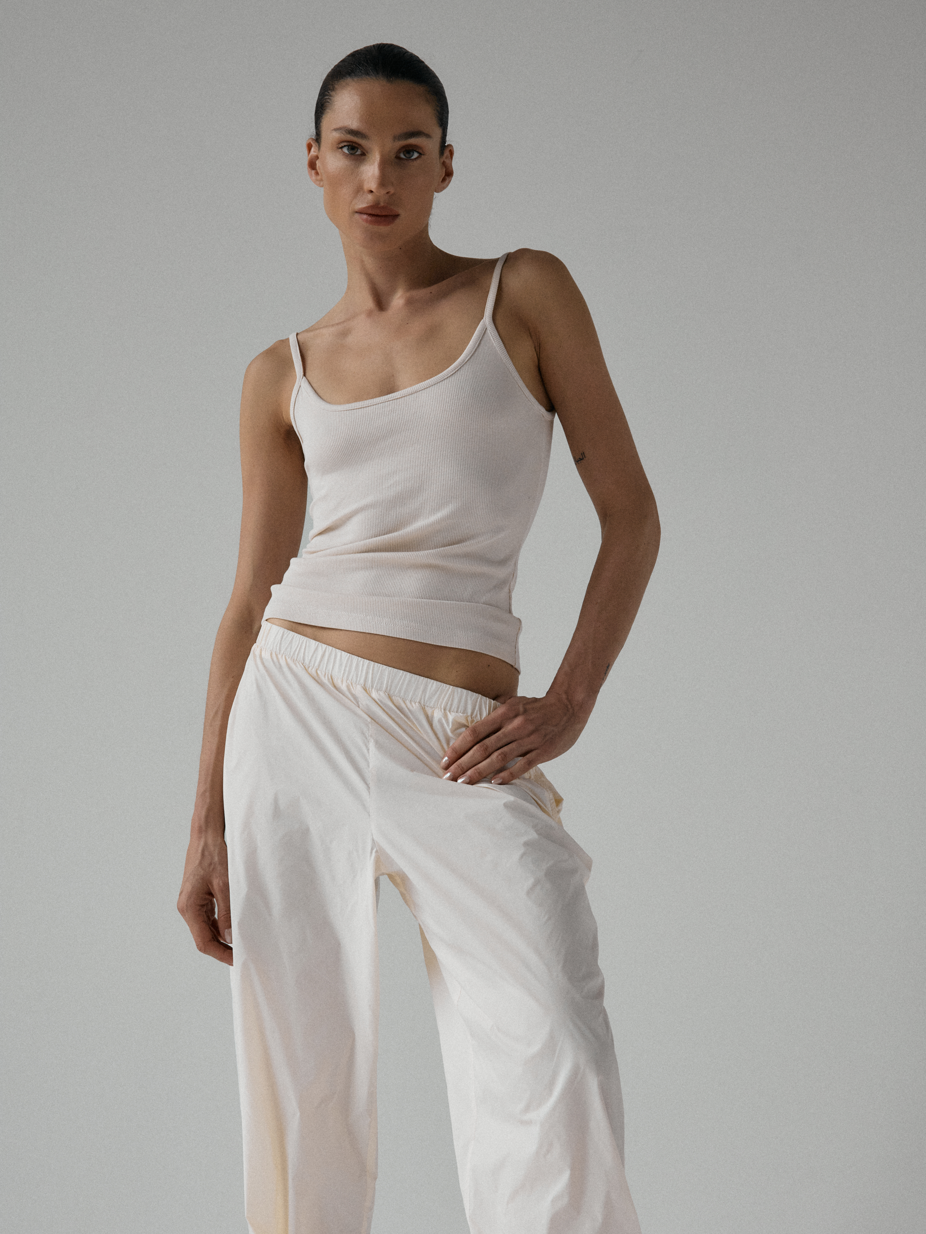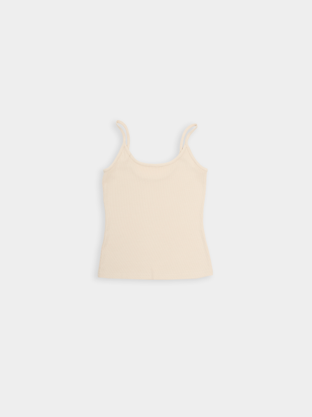 Prążkowana koszulka na ramiączka. Dopasowany fason oraz elastyczna dzianina zapewnia maksymalną swobodę ruchu. Top sprawdzi się do każdej stylizacji, zarówno w sportowym połączeniu z naszymi legginsami JORDE jak i eleganckim z naszą marynarką MAIN.