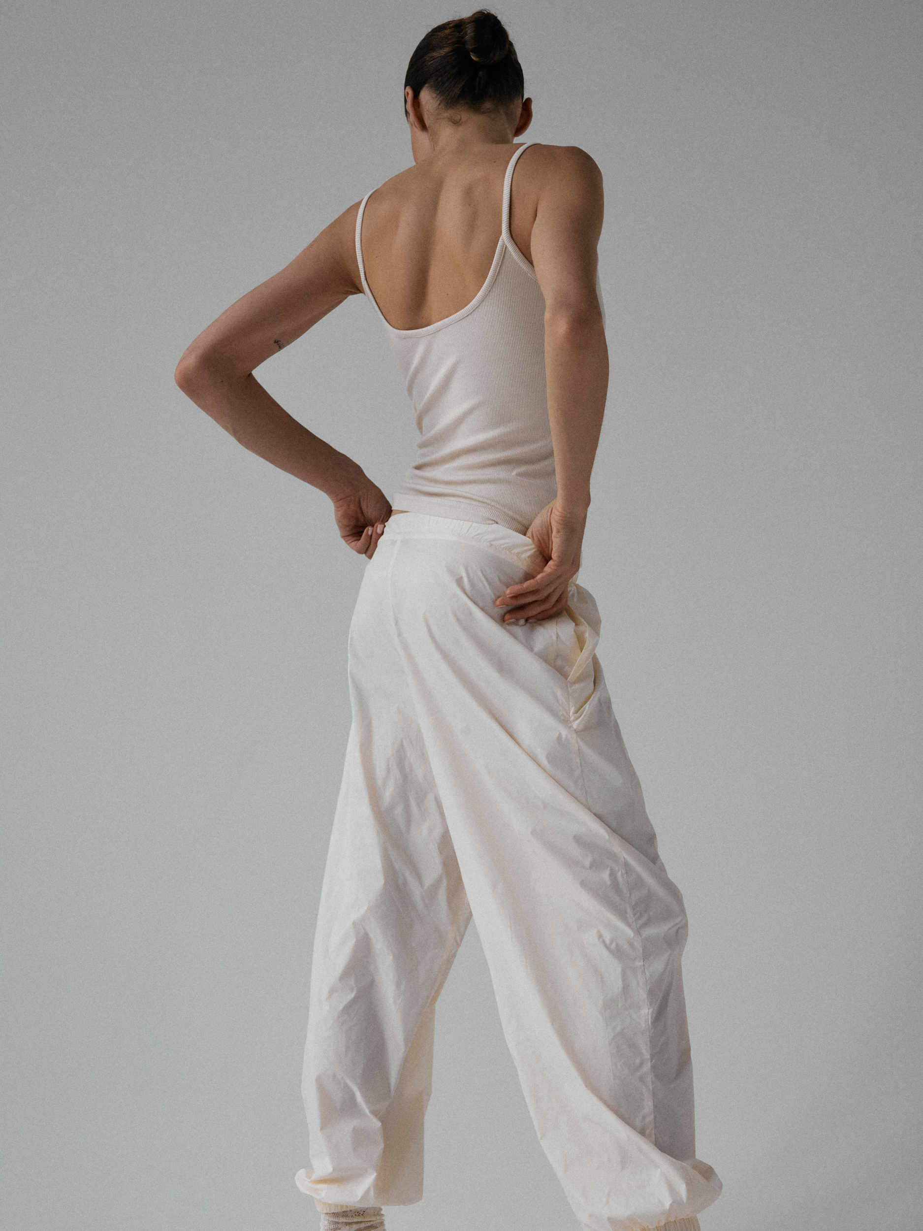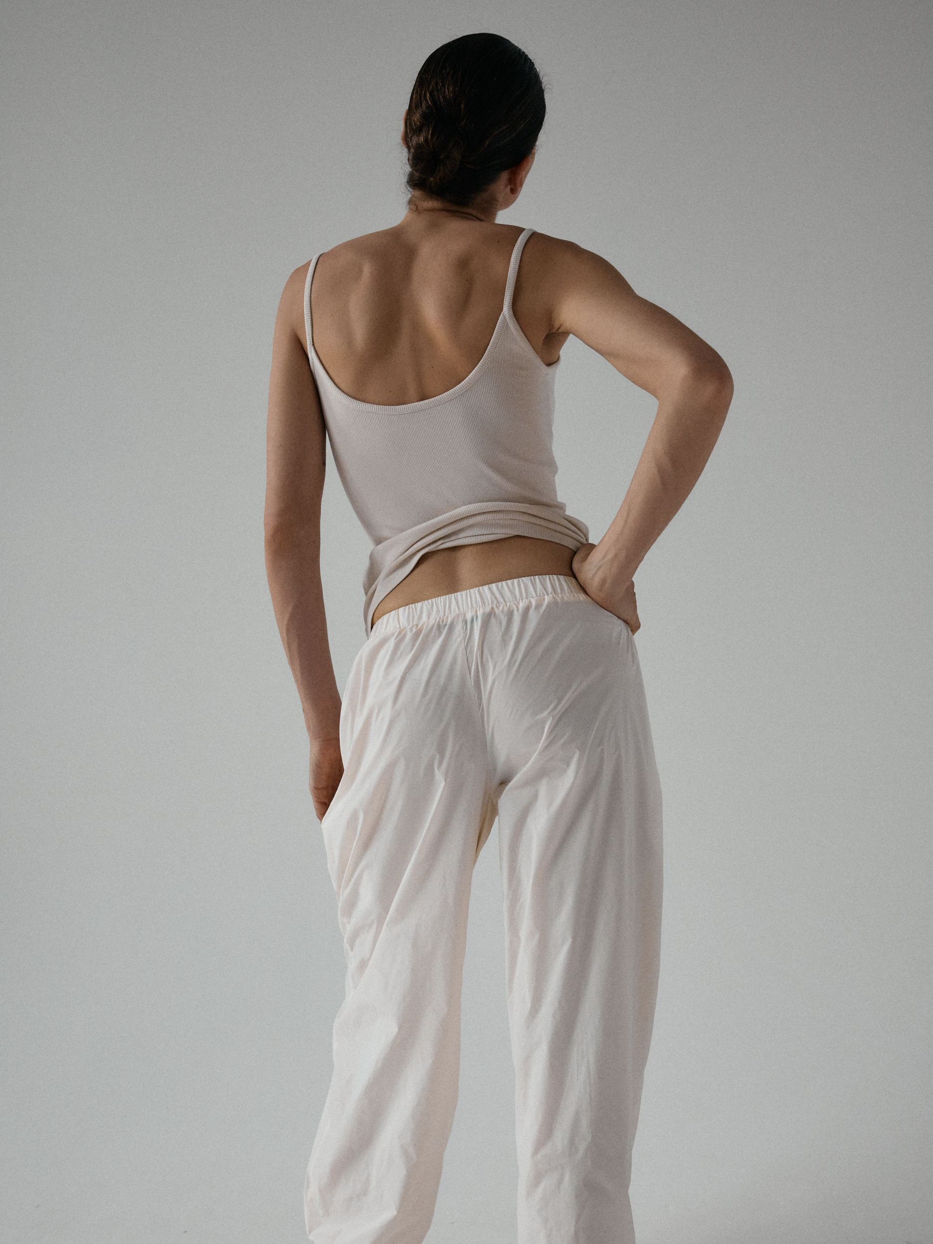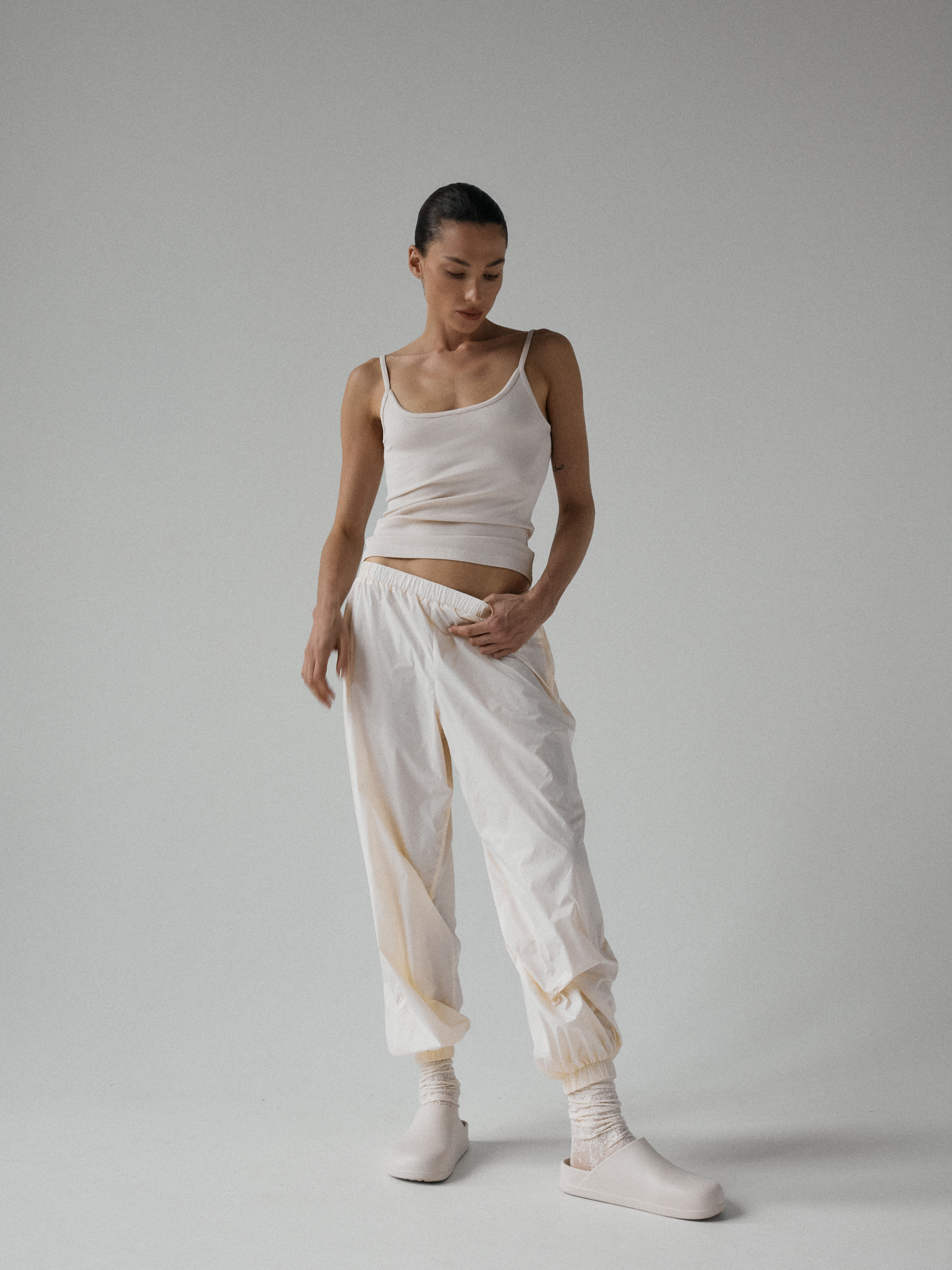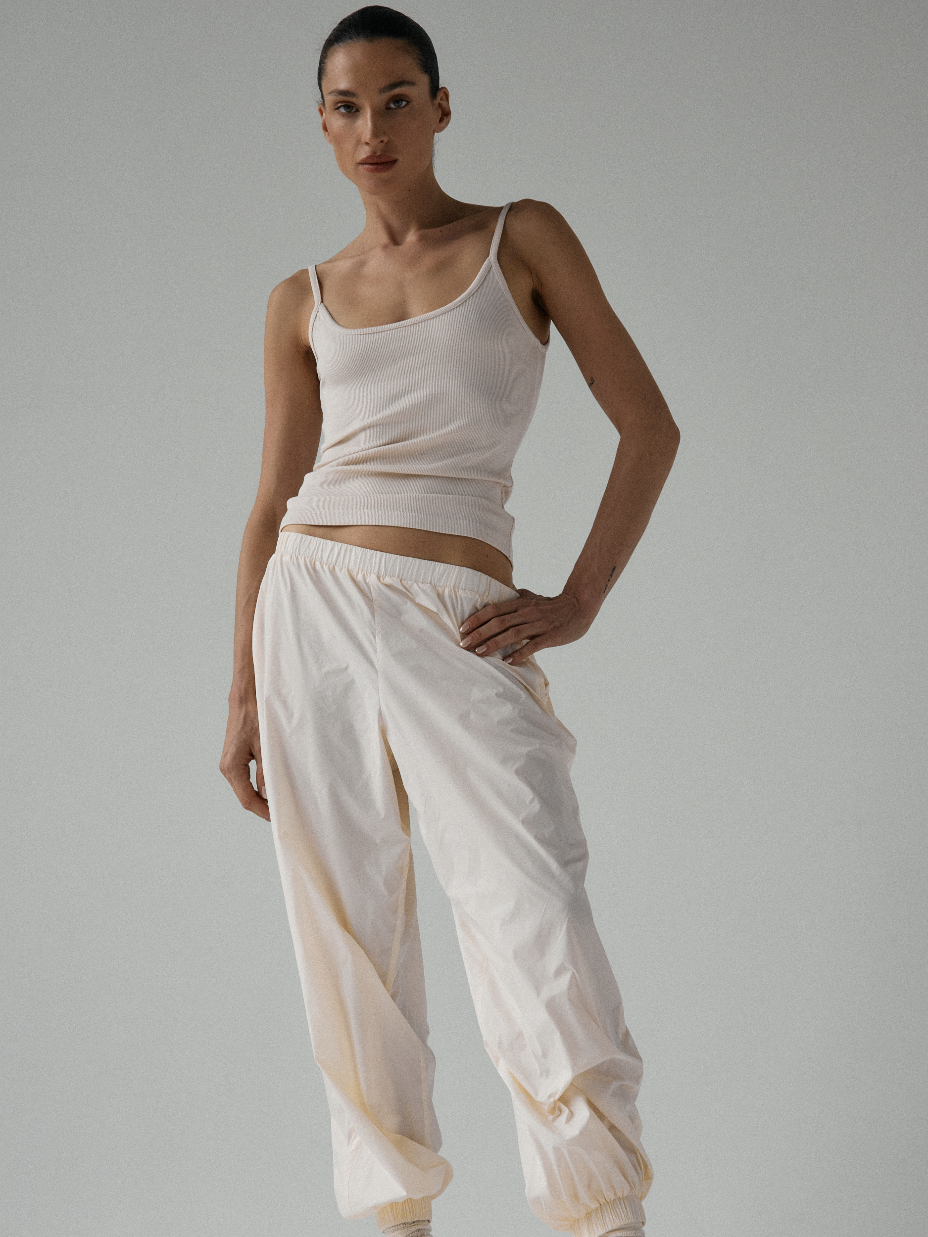 Prążkowana koszulka na ramiączka. Dopasowany fason oraz elastyczna dzianina zapewnia maksymalną swobodę ruchu. Top sprawdzi się do każdej stylizacji, zarówno w sportowym połączeniu z naszymi legginsami JORDE jak i eleganckim z naszą marynarką MAIN.