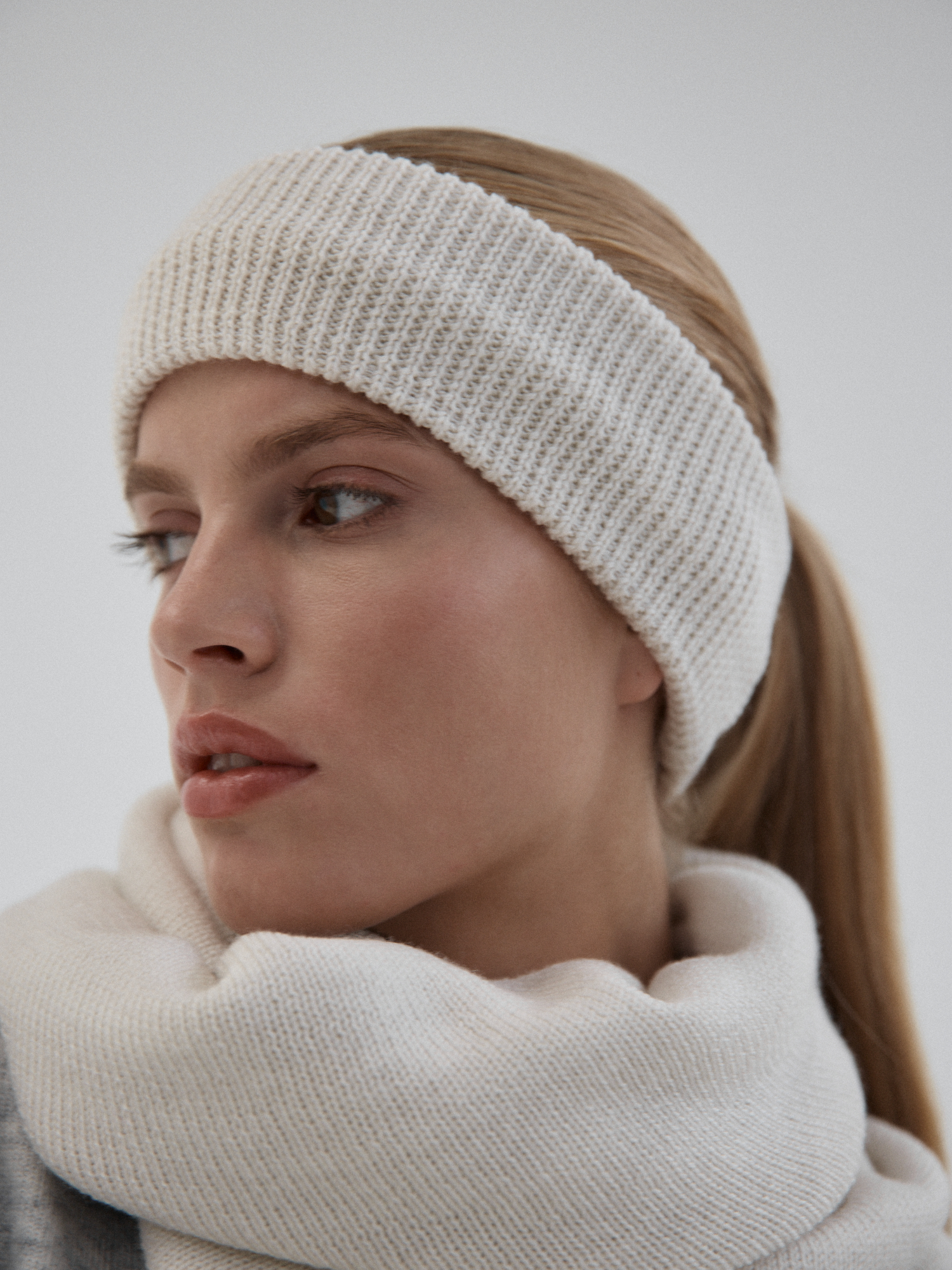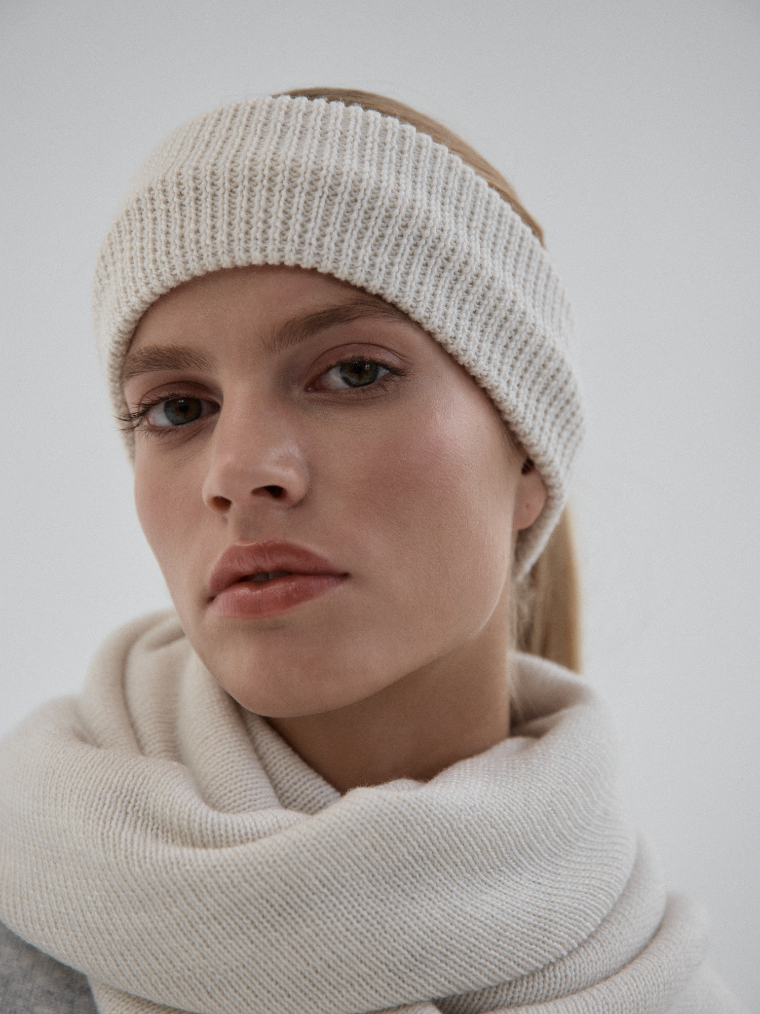 Szeroka opaska z wełny merino. Podwójna warstwa wełny zapewnia ochronę przed wiatrem i zimnem. Opaska jest lekka i elastyczna, dzięki czemu idealnie dopasowuje się na głowie. Stanowi świetną alternatywę dla czapek.