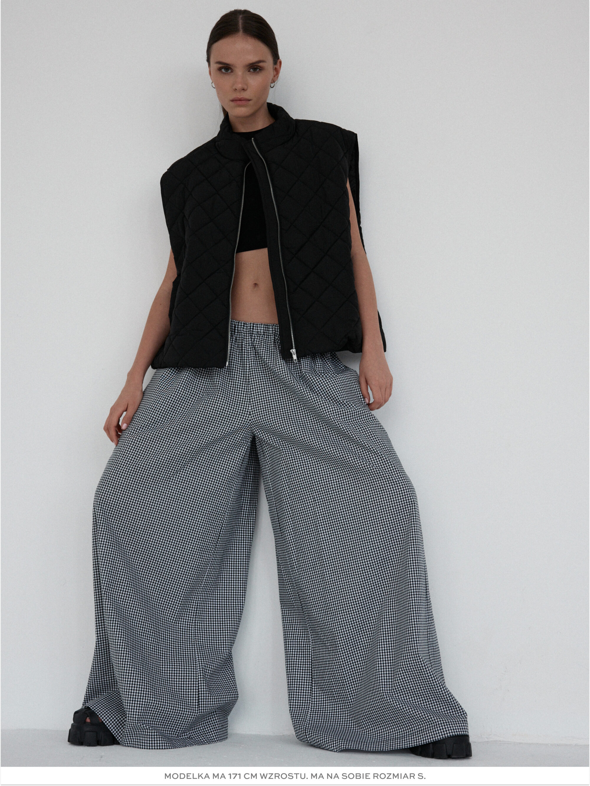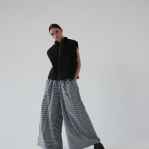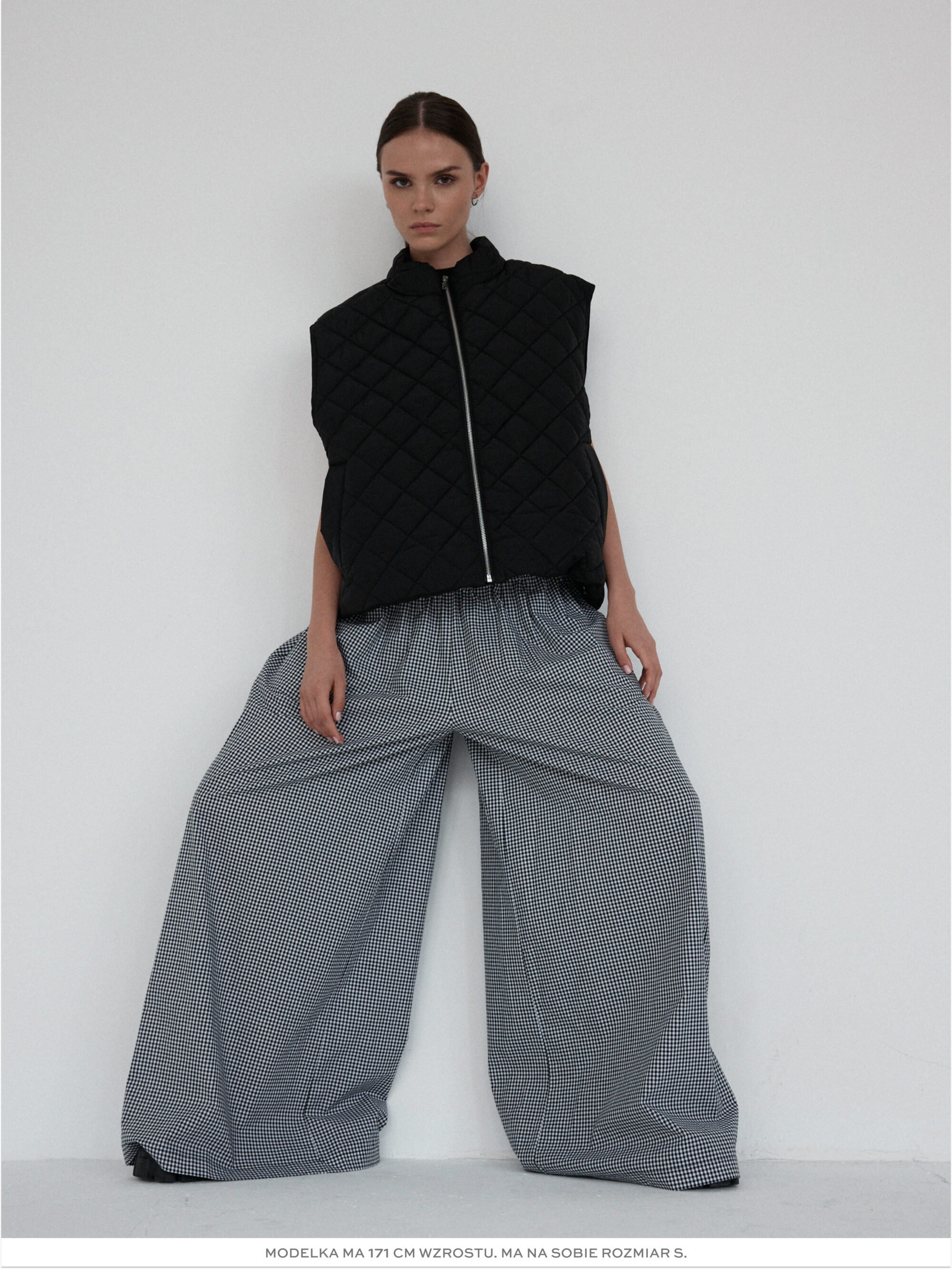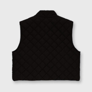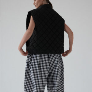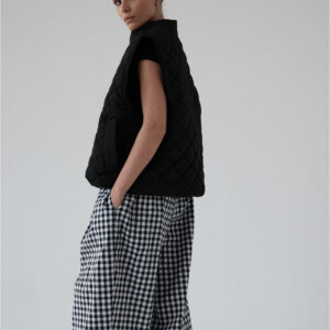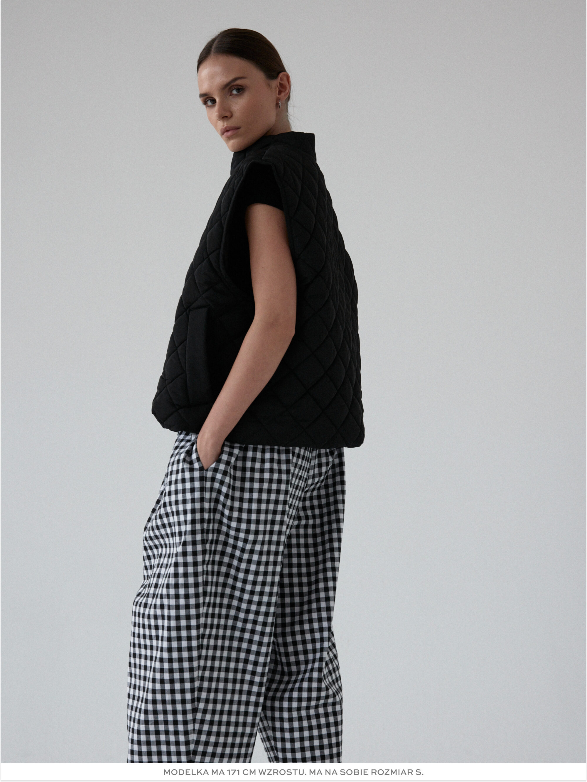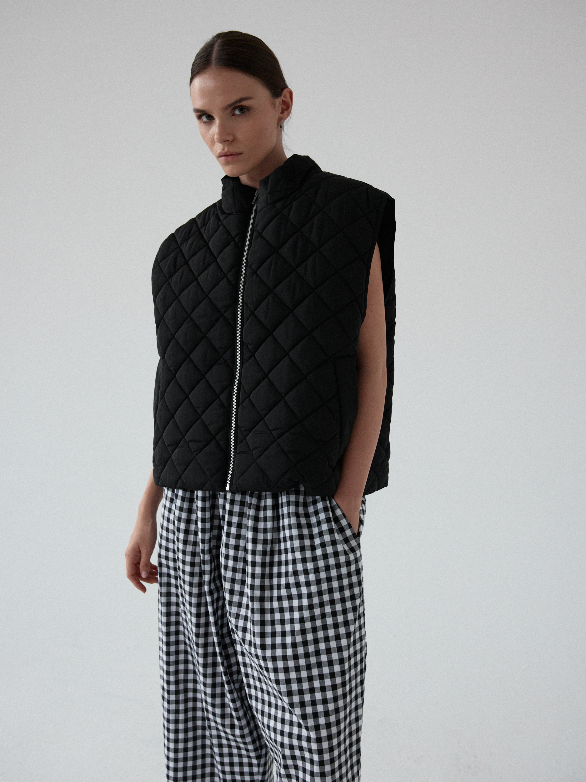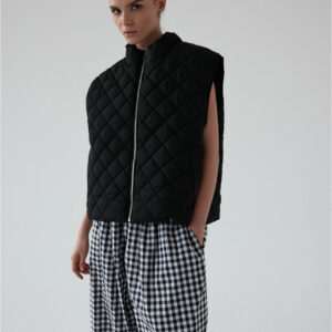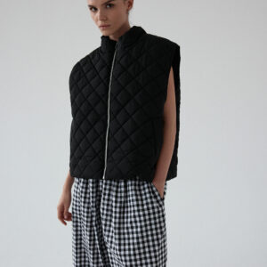 Pikowana kamizelka o luźnym kroju. Pikowanie w romby nadaje kamizelce strukturę, dzięki czemu utrzymuje ona swój kształt. U dołu wszyta regulacja pozwala na dopasowanie kamizelki do własnych preferencji. Model posiada dwie funkcjonalne kieszeni oraz zamek błyskawiczny. Świetnie sprawdzi się w codziennych stylizacjach warstwowych – noś ją zarówno do koszul i swetrów, jak i w duecie z bluzą czy sukienką. Lekka, a jednocześnie ciepła.
