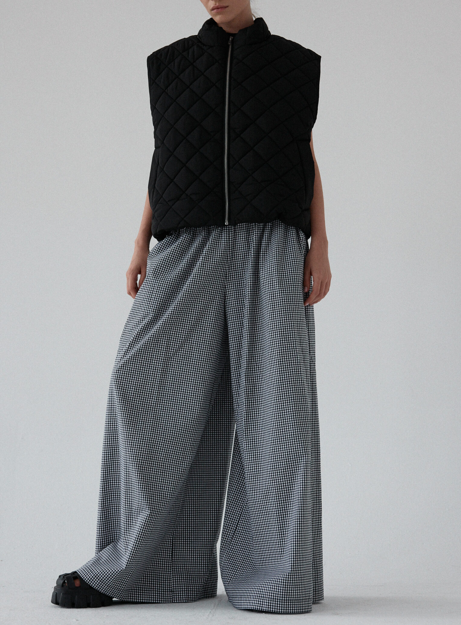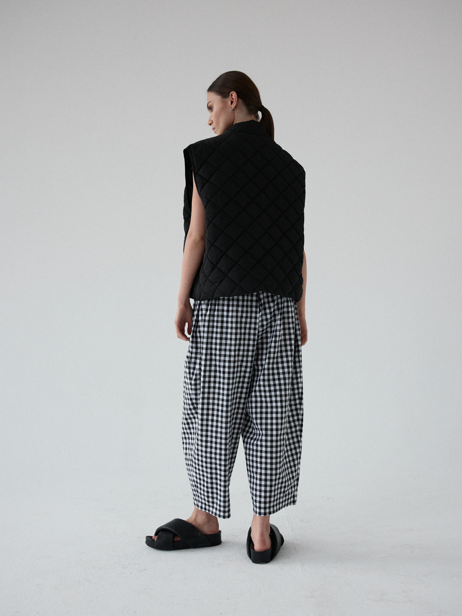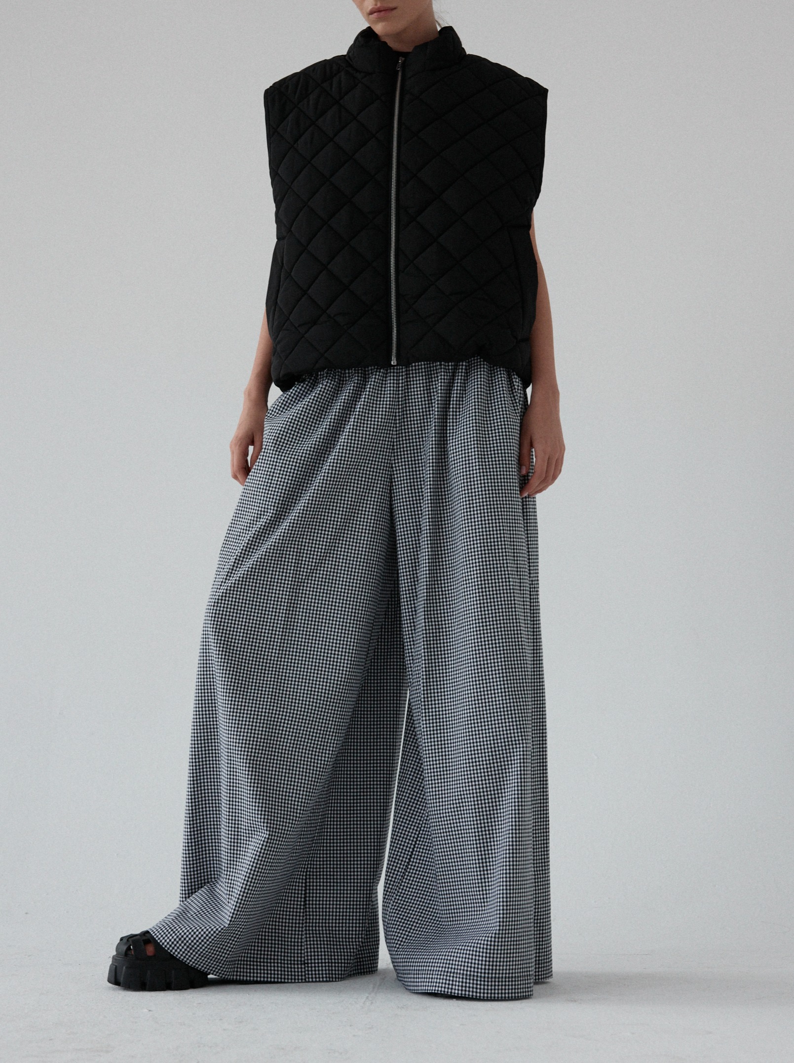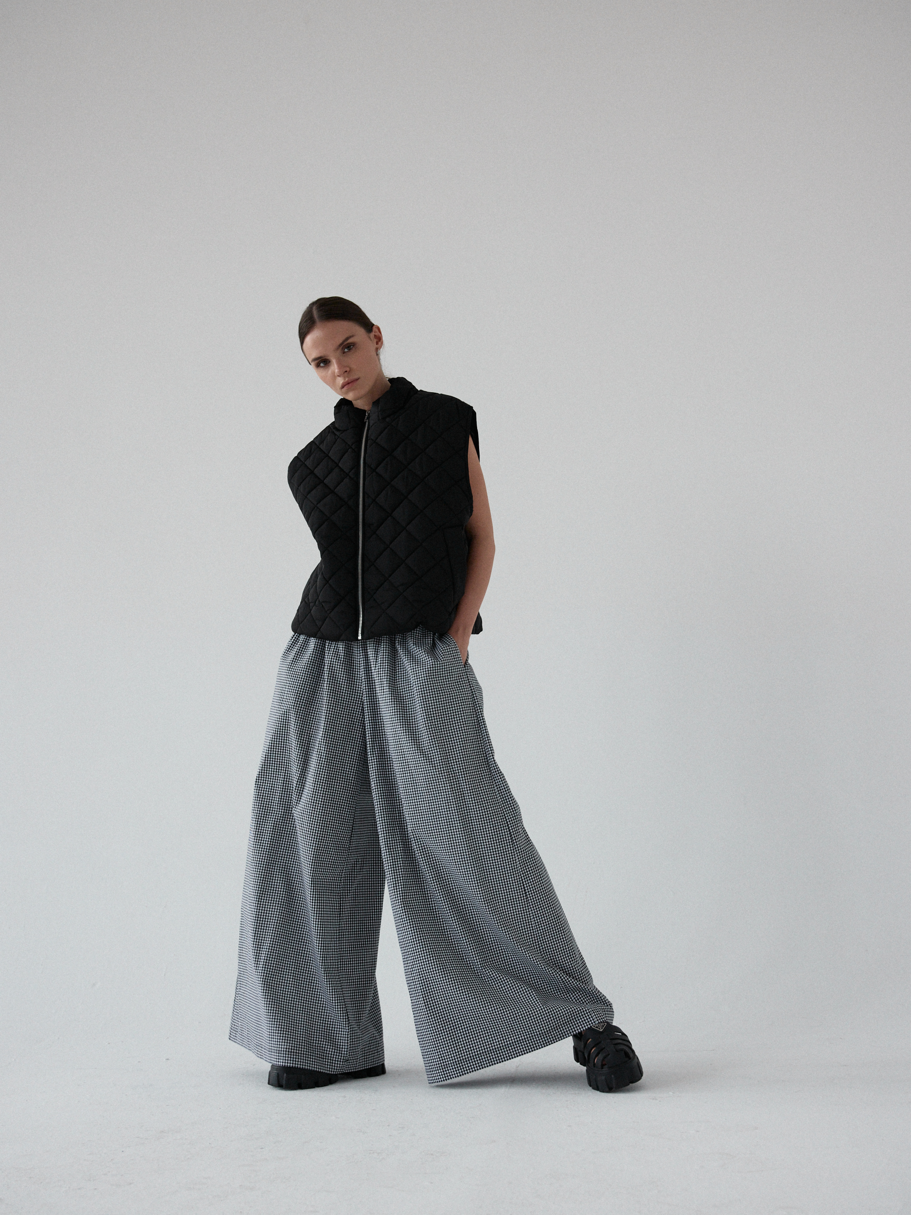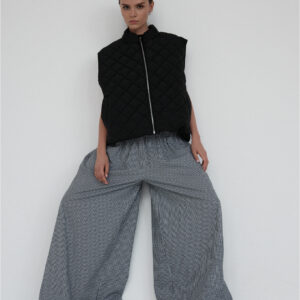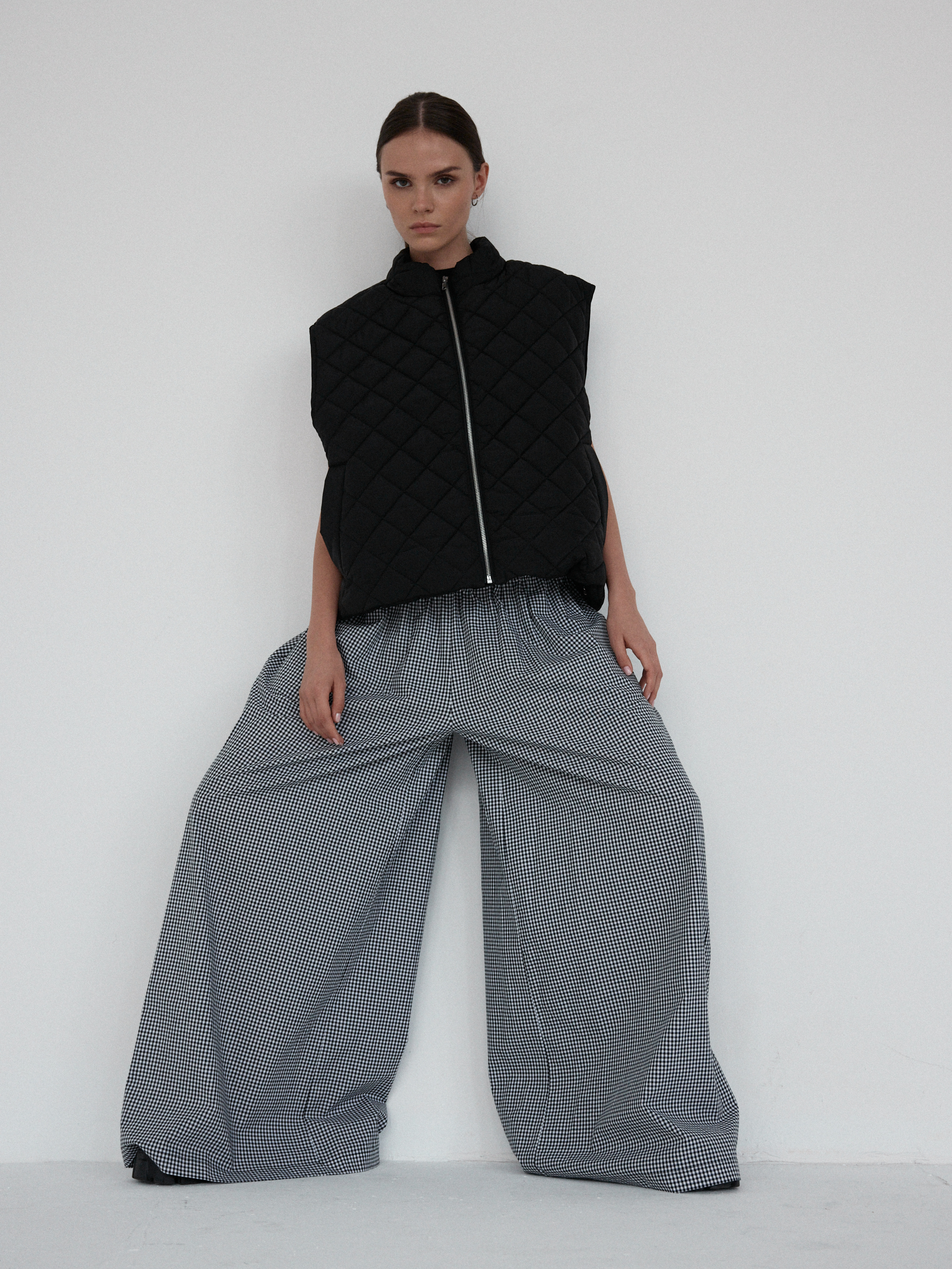 Pikowana kamizelka o luźnym kroju. Pikowanie w romby nadaje kamizelce strukturę, dzięki czemu utrzymuje ona swój kształt. U dołu wszyta regulacja pozwala na dopasowanie kamizelki do własnych preferencji. Model posiada dwie funkcjonalne kieszeni oraz zamek błyskawiczny. Świetnie sprawdzi się w codziennych stylizacjach warstwowych – noś ją zarówno do koszul i swetrów, jak i w duecie z bluzą czy sukienką. Lekka, a jednocześnie ciepła.