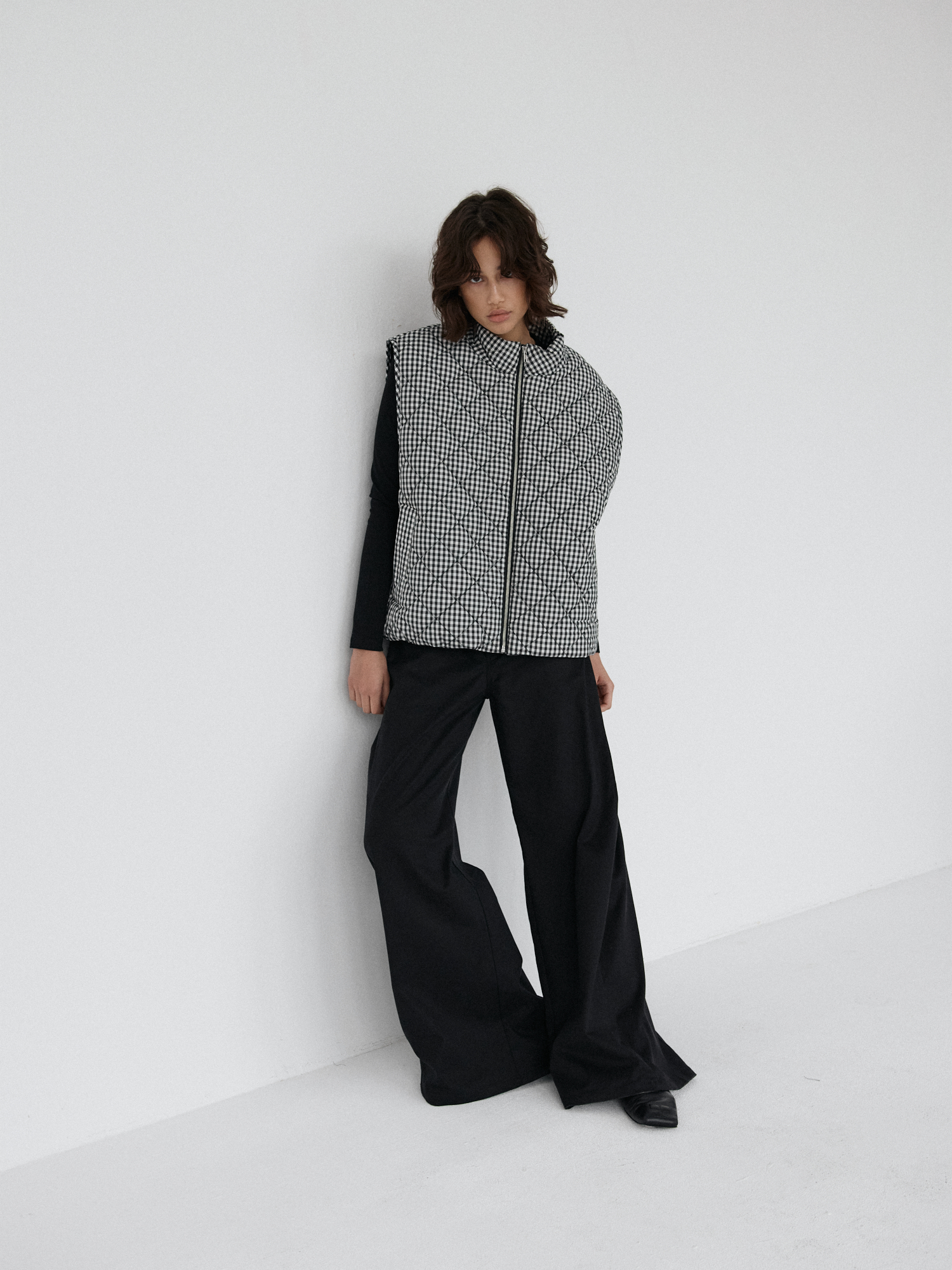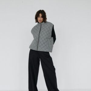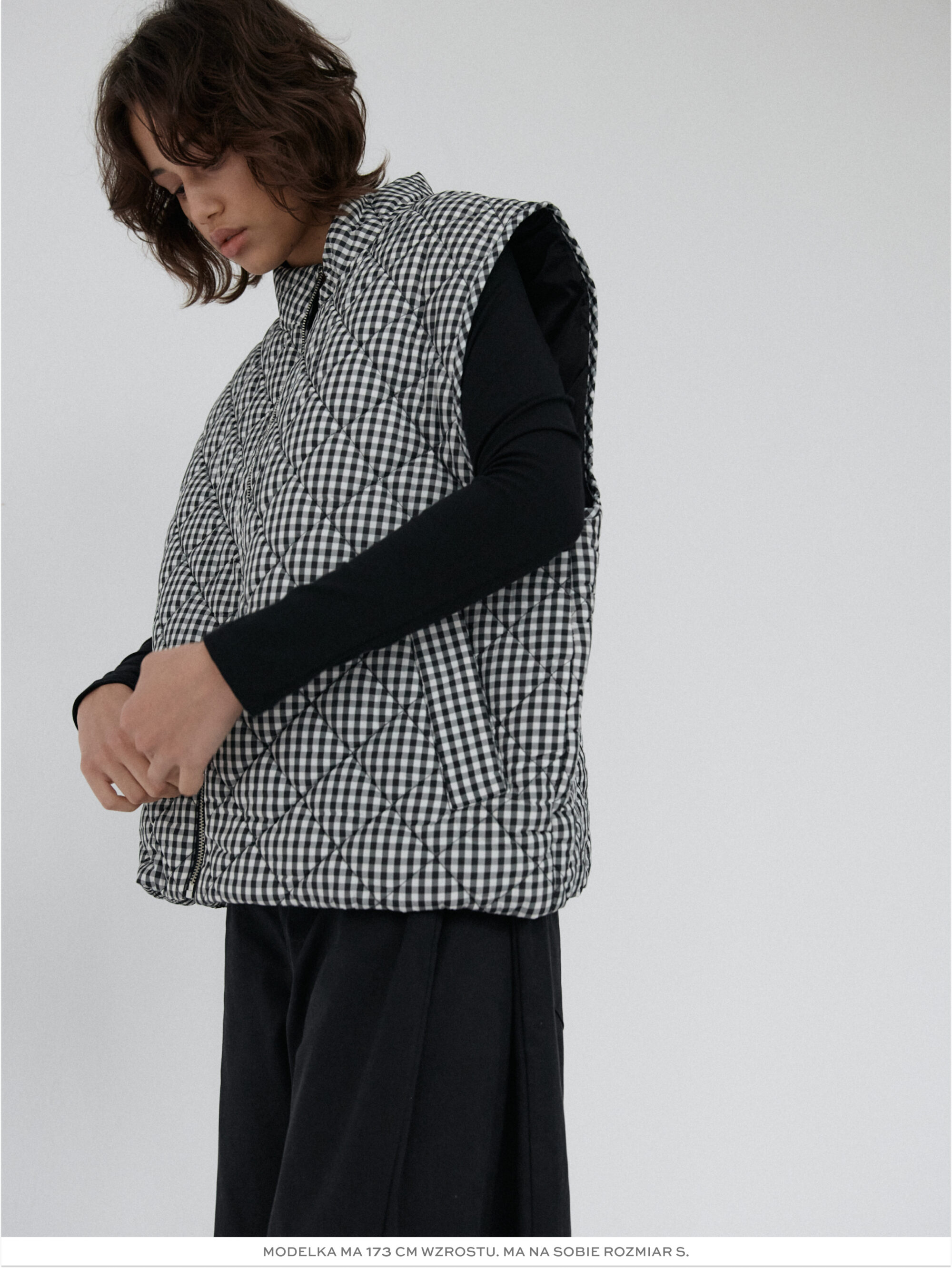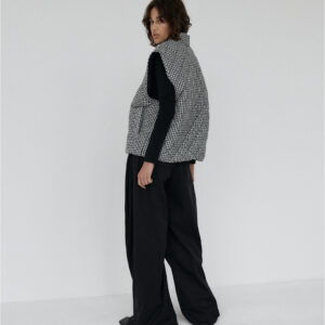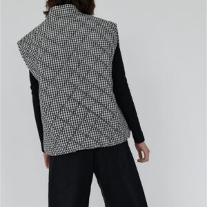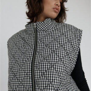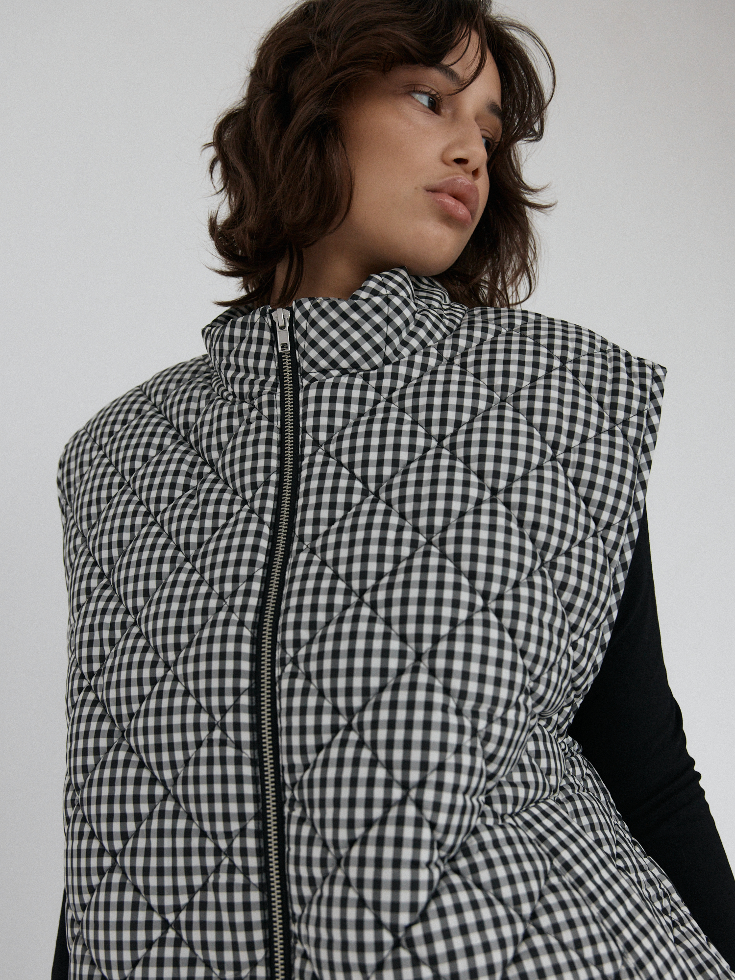 Pikowana kamizelka o luźnym kroju. Pikowanie w romby nadaje kamizelce strukturę, dzięki czemu utrzymuje ona swój kształt. U dołu wszyta regulacja pozwala na dopasowanie kamizelki do własnych preferencji. Model posiada dwie funkcjonalne kieszeni oraz zamek błyskawiczny. Świetnie sprawdzi się w codziennych stylizacjach warstwowych – noś ją zarówno do koszul i swetrów, jak i w duecie z bluzą czy sukienką. Lekka, a jednocześnie ciepła.