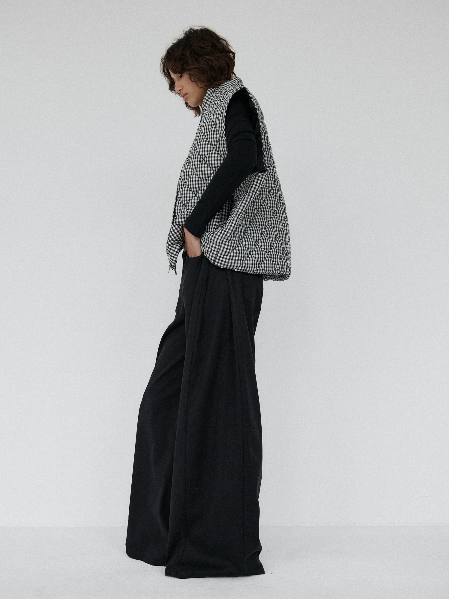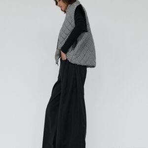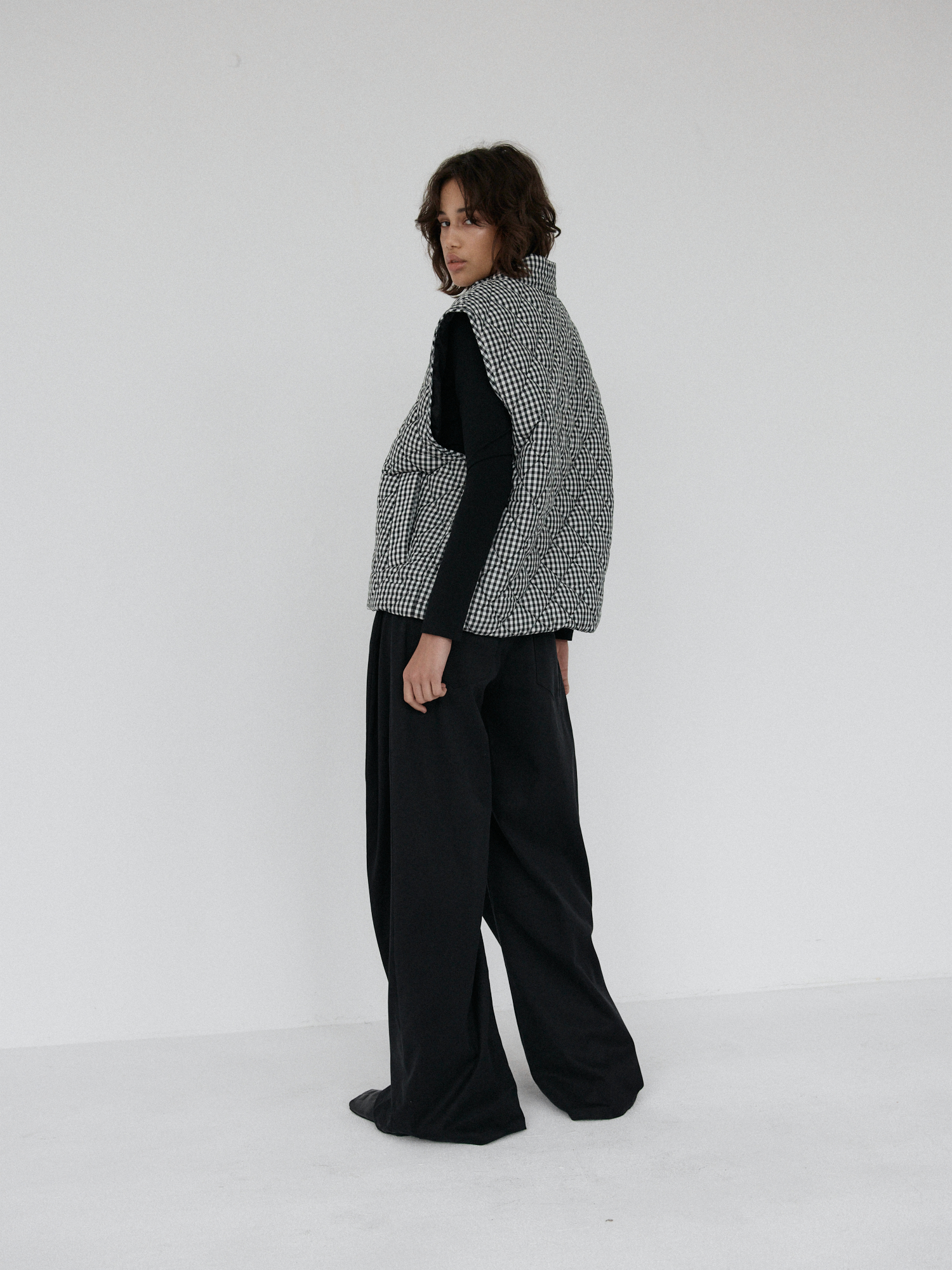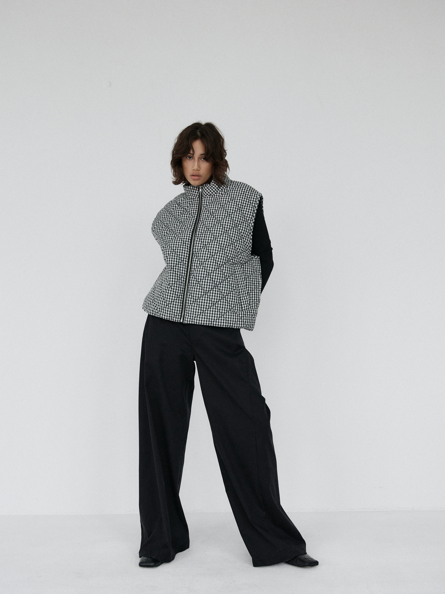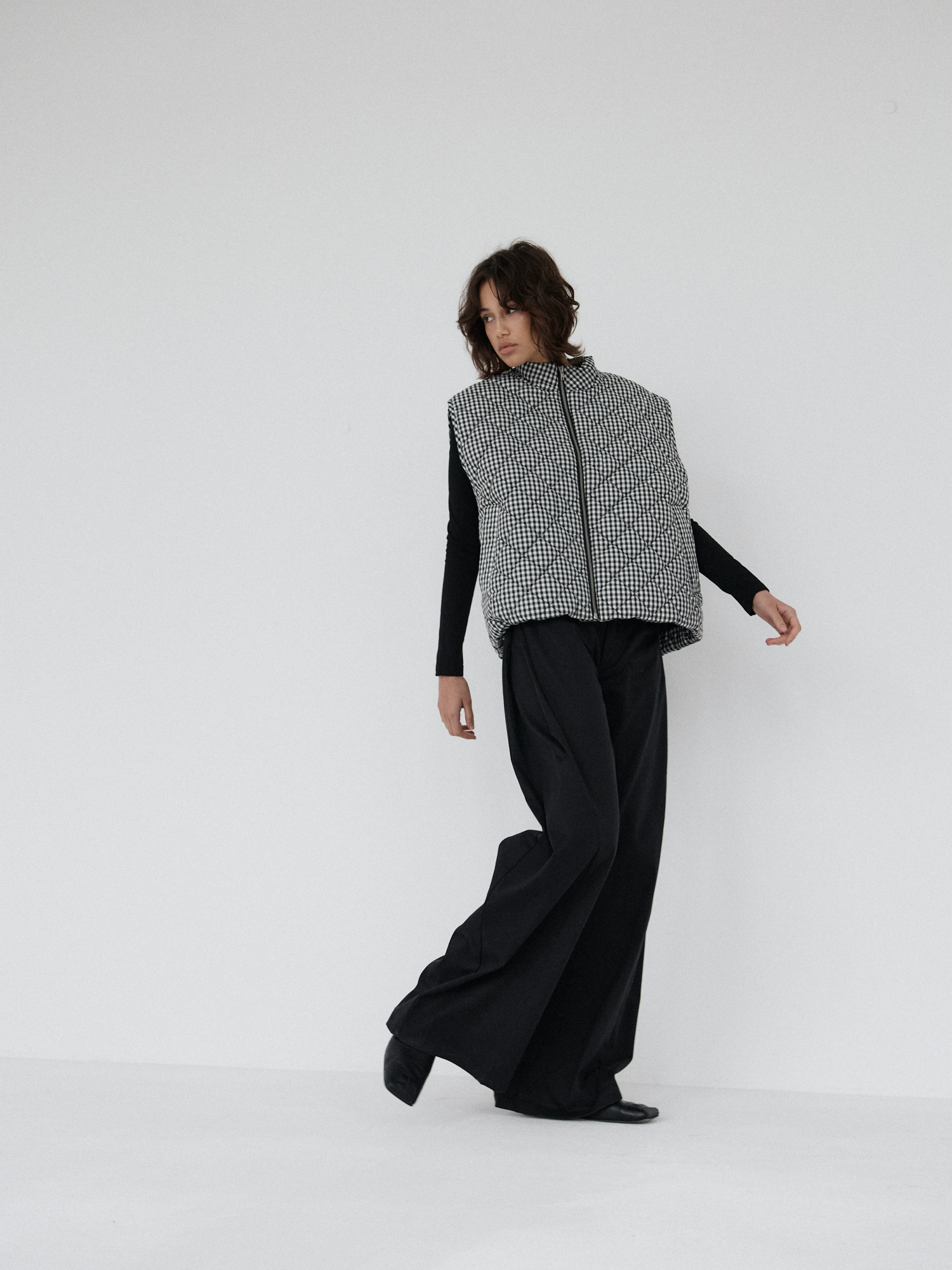 Pikowana kamizelka o luźnym kroju. Pikowanie w romby nadaje kamizelce strukturę, dzięki czemu utrzymuje ona swój kształt. U dołu wszyta regulacja pozwala na dopasowanie kamizelki do własnych preferencji. Model posiada dwie funkcjonalne kieszeni oraz zamek błyskawiczny. Świetnie sprawdzi się w codziennych stylizacjach warstwowych – noś ją zarówno do koszul i swetrów, jak i w duecie z bluzą czy sukienką. Lekka, a jednocześnie ciepła.