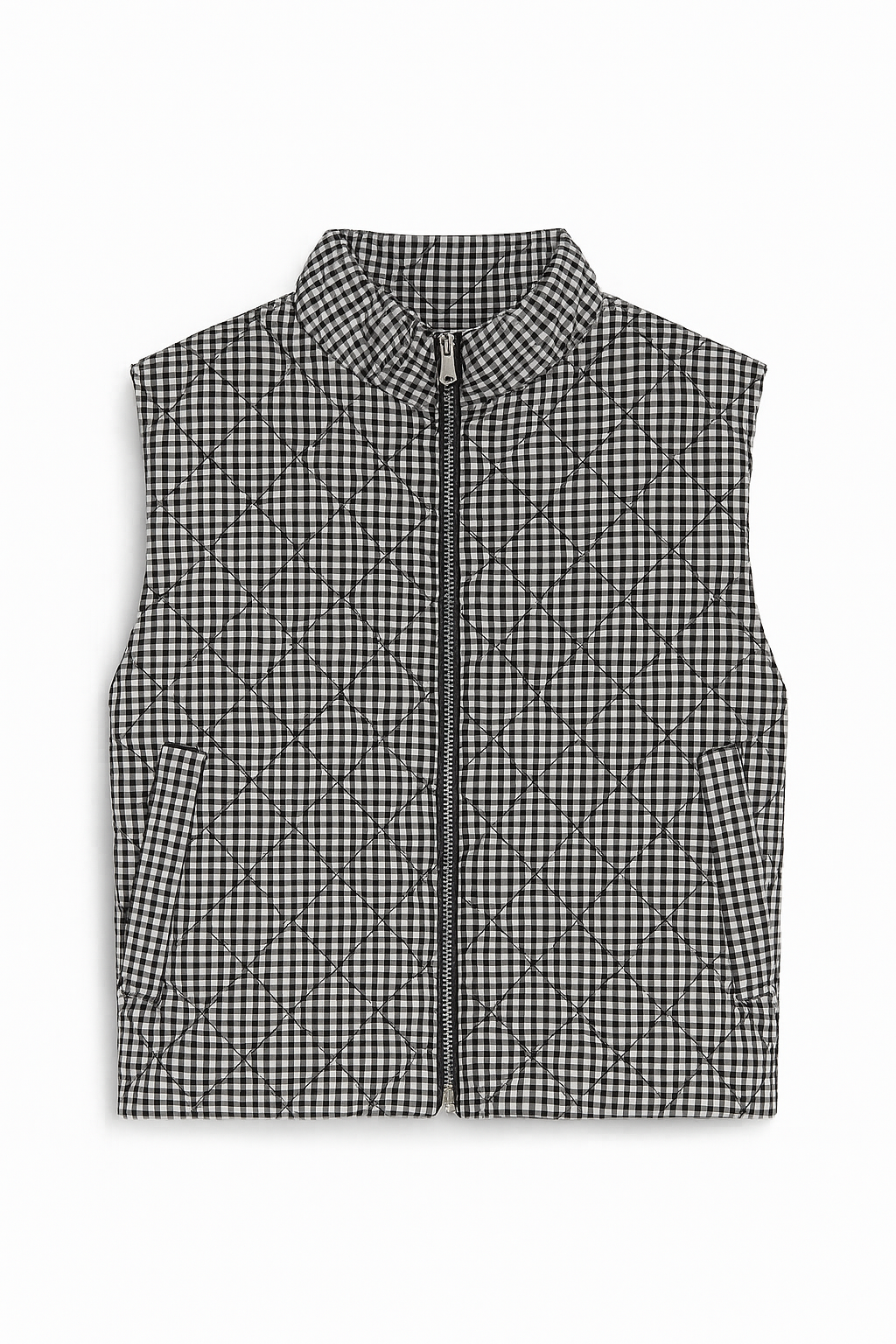 Pikowana kamizelka o luźnym kroju. Pikowanie w romby nadaje kamizelce strukturę, dzięki czemu utrzymuje ona swój kształt. U dołu wszyta regulacja pozwala na dopasowanie kamizelki do własnych preferencji. Model posiada dwie funkcjonalne kieszeni oraz zamek błyskawiczny. Świetnie sprawdzi się w codziennych stylizacjach warstwowych – noś ją zarówno do koszul i swetrów, jak i w duecie z bluzą czy sukienką. Lekka, a jednocześnie ciepła.