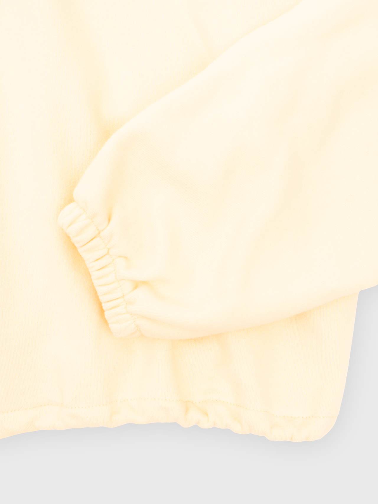 Bluza LE PUMP uszyta jest z wysokogatunkowej bawełny z domieszką poliestru z recyklingu. Specjalne uszlachetnienie – szmerglowanie z prawej strony sprawia, że jest niezwykle przyjemna w dotyku. Dzianina ma drobną pętelkę w środku, co czyni ją perfekcyjną na sezon wiosenno-letni, a także sprawia, że materiał miękko się układa. Nie podrażnia skóry, nie elektryzuje się.