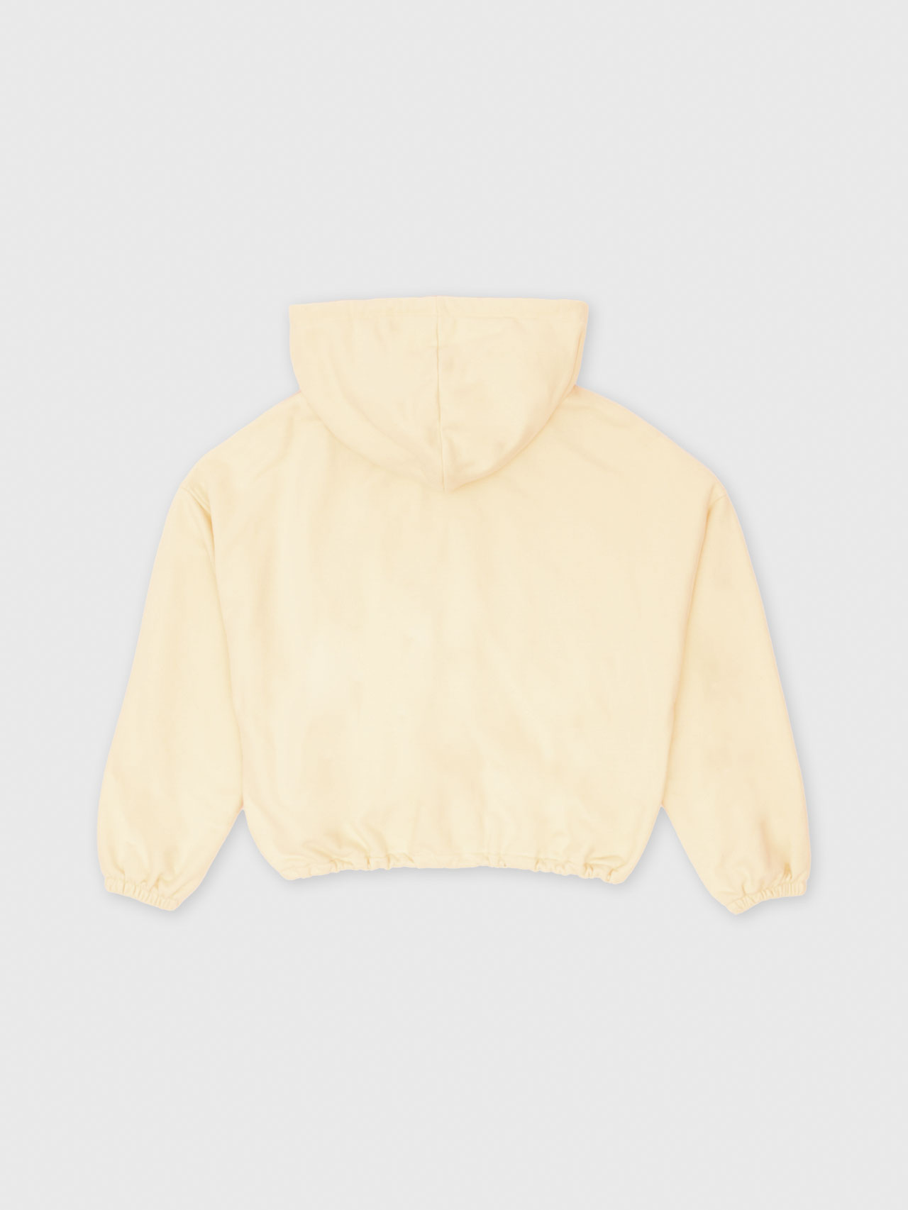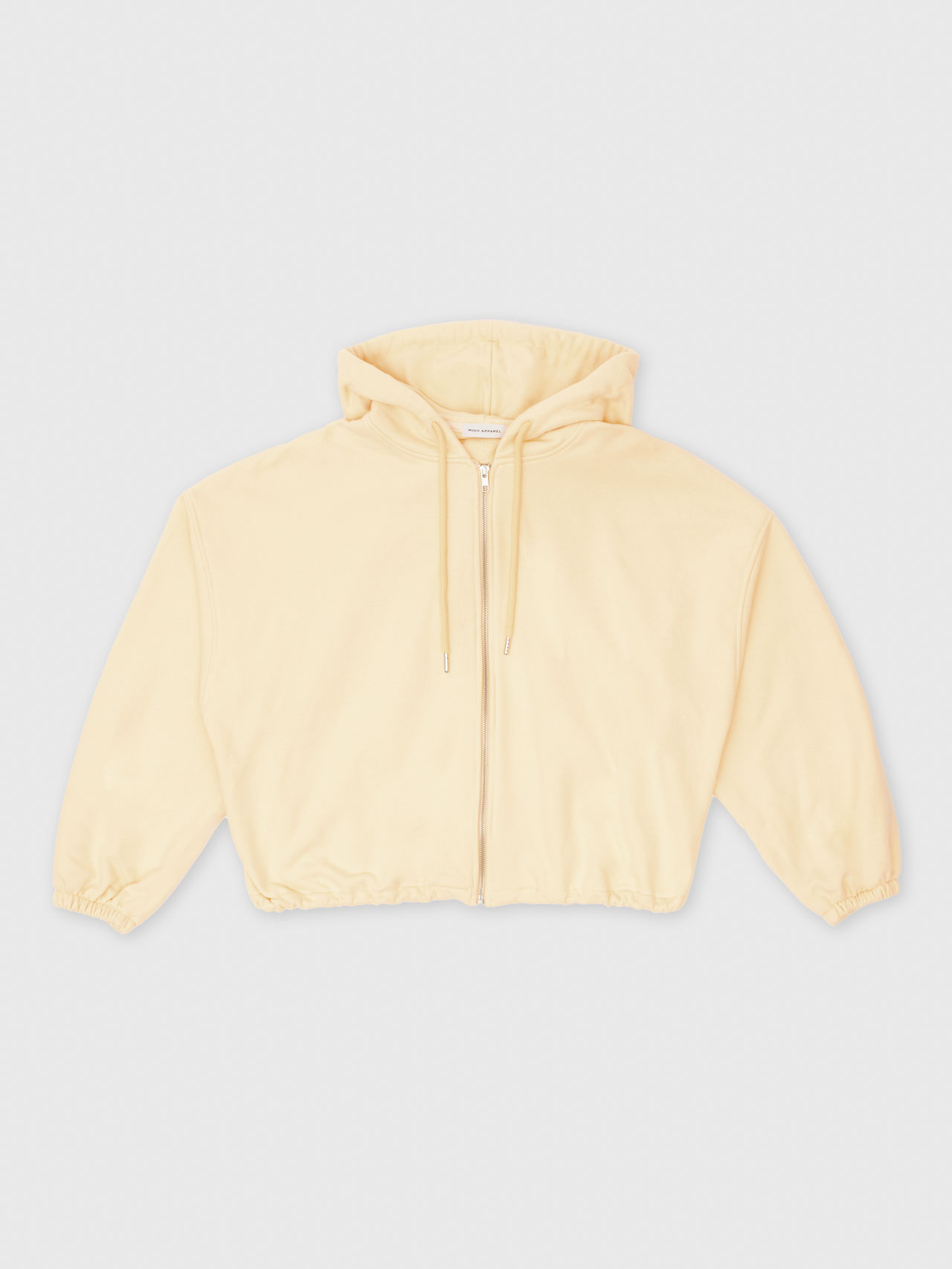 Oversize’owa bluza z obszernym kapturem zapinana na zamek. Model wyróżnia się charakterystycznymi bufiastymi rękawami typu balloon sleeve, które nadają całości stylowy charakter. Bluza posiada dwie funkcjonalne kieszenie. Miękka, przyjemna w dotyku tkanina zapewnia komfort noszenia przez cały dzień, a luźny krój sprawia, że doskonale układa się na sylwetce..