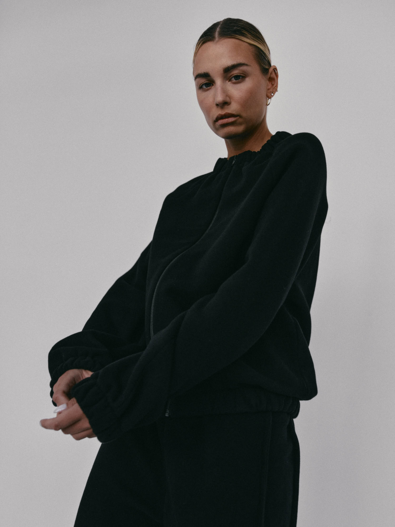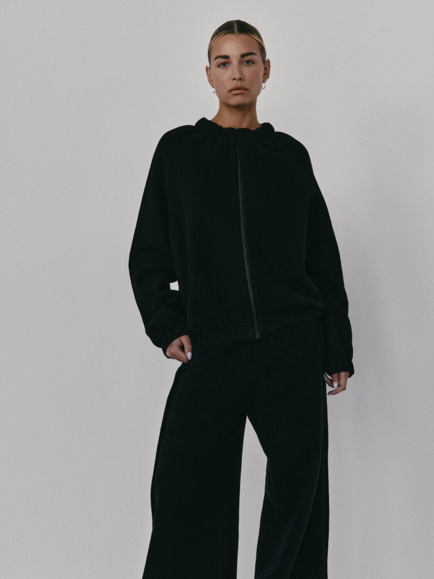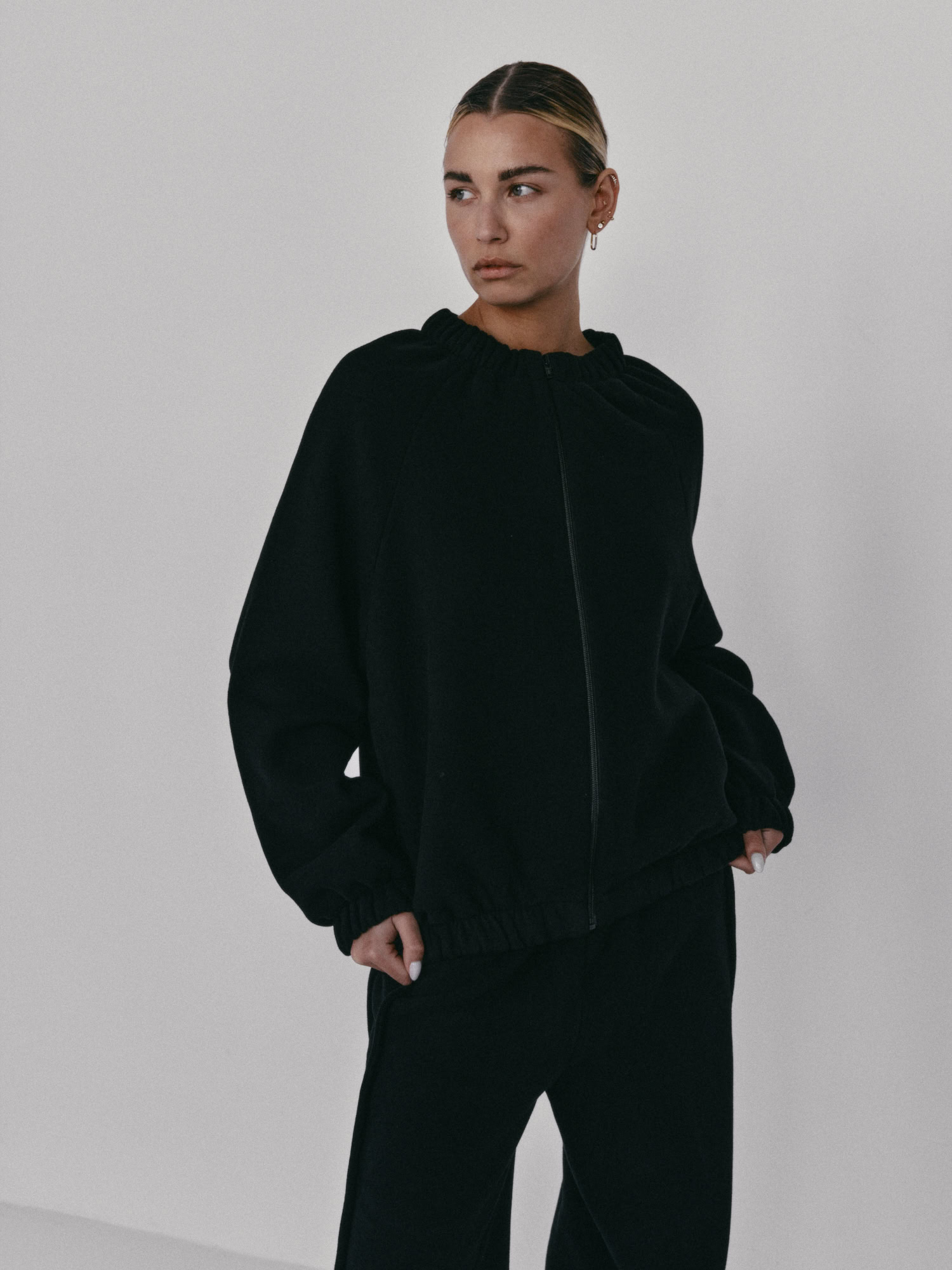 Bomberka o swobodnym kroju, zapinana na zamek, z elastycznym wykończeniem przy szyi, rękawach i na dole. Długość bluzy jest odpowiednia do spodni dresowych, leginsów i jeansów. Idealnie sprawdzi się w casualowym jak i sportowym zestawieniu. Tworzy świetny zestaw z naszymi spodniami dresowymi SMOOTH COTTON.