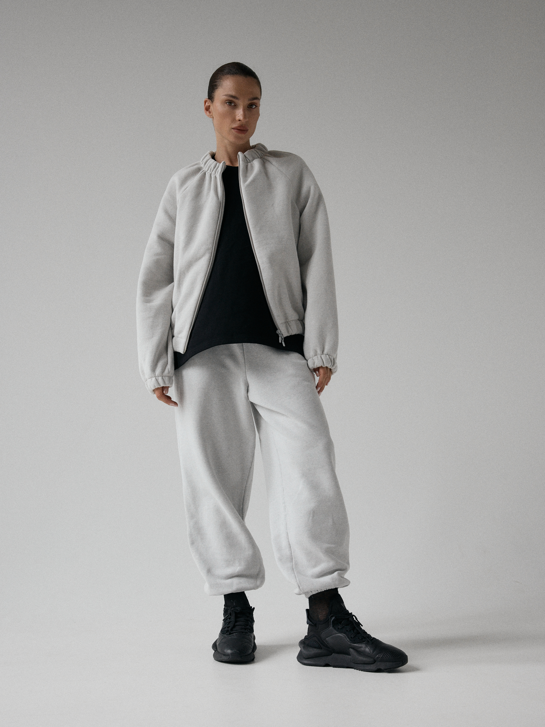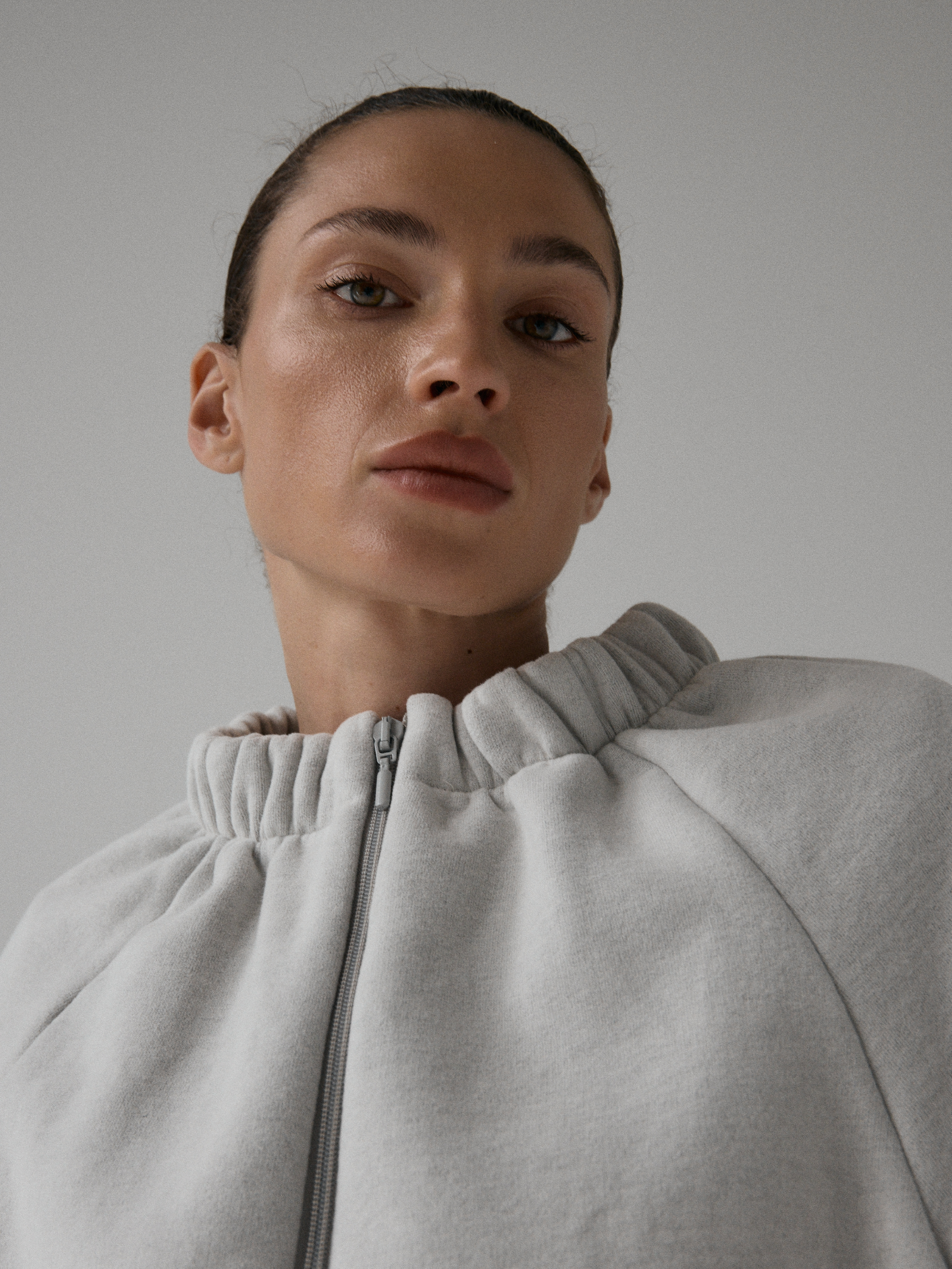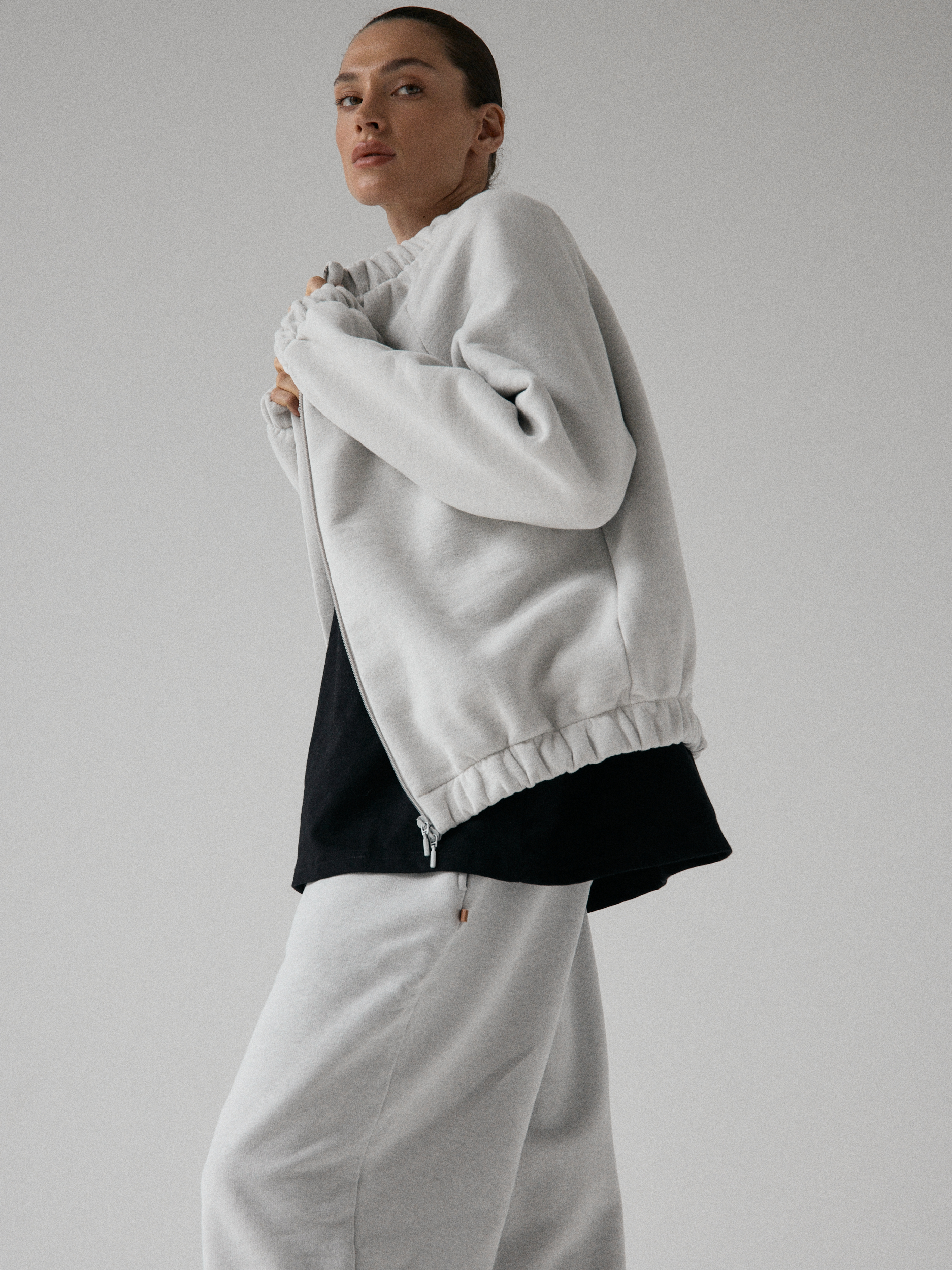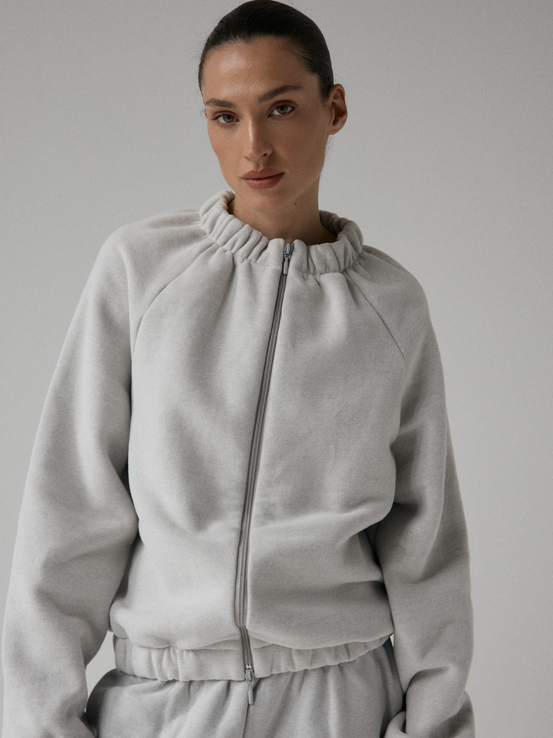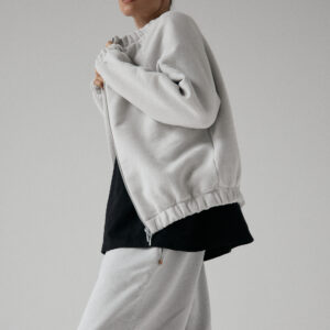 Bomberka o swobodnym kroju, zapinana na zamek, z elastycznym wykończeniem przy szyi, rękawach i na dole. Długość bluzy jest odpowiednia do spodni dresowych, leginsów i jeansów. Idealnie sprawdzi się w casualowym jak i sportowym zestawieniu. Tworzy świetny zestaw z naszymi spodniami dresowymi SMOOTH COTTON.