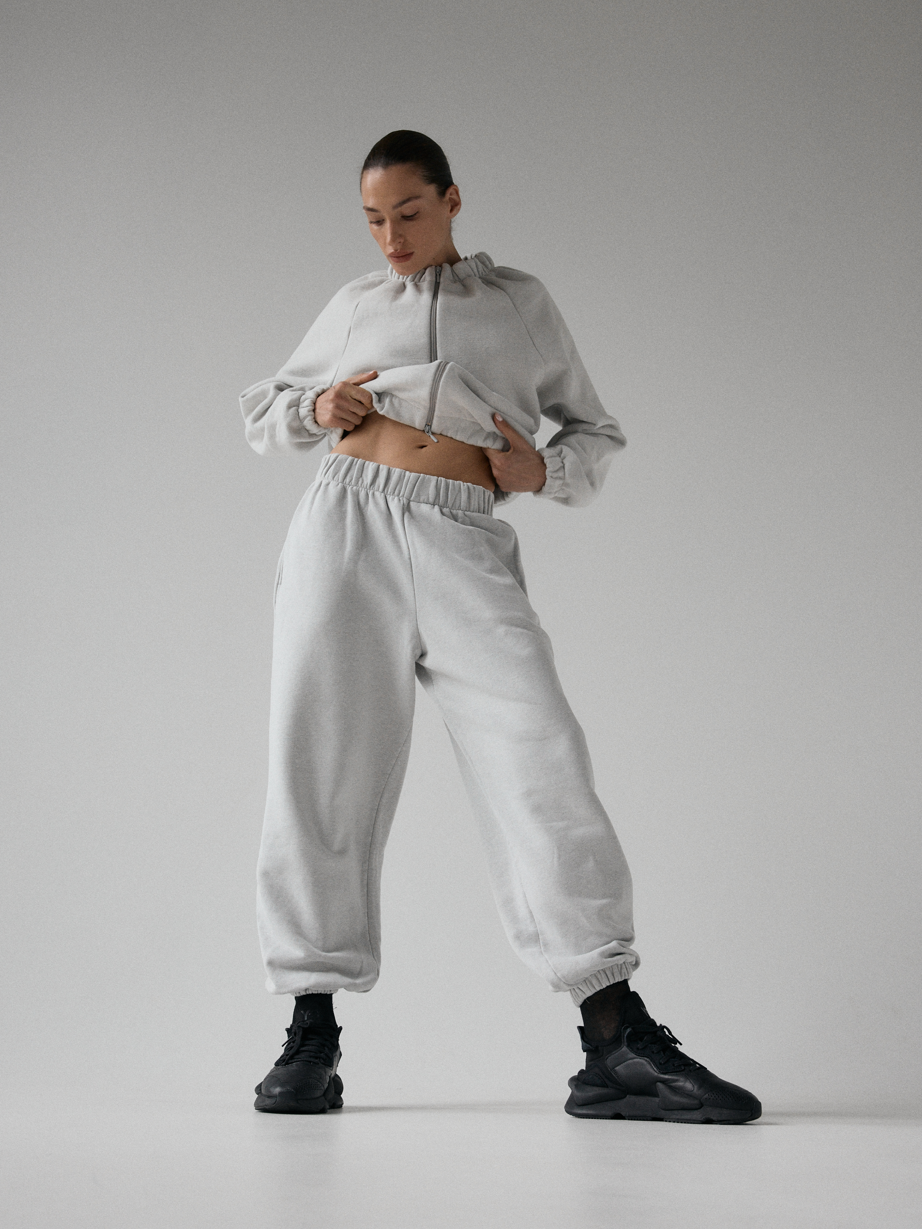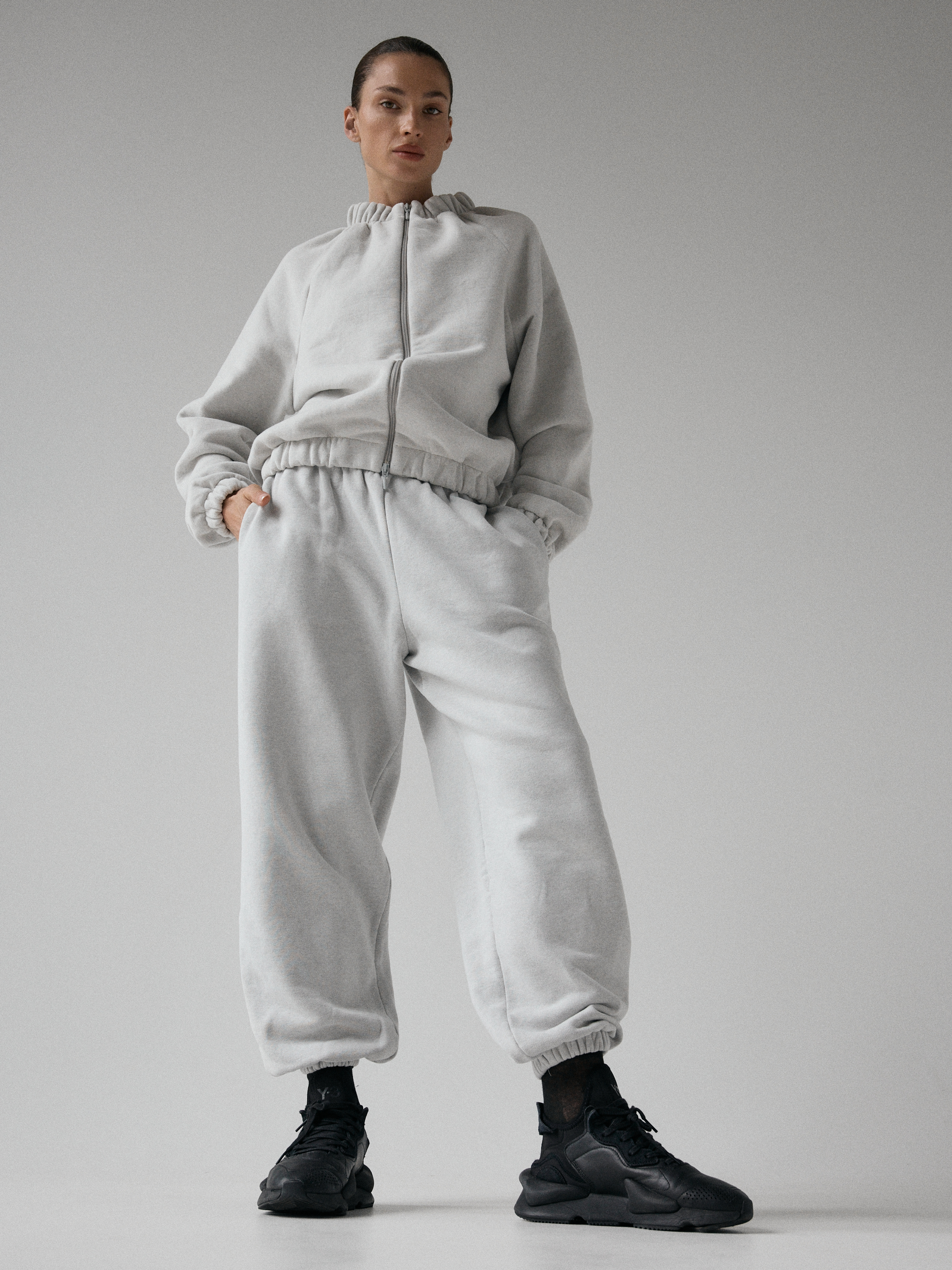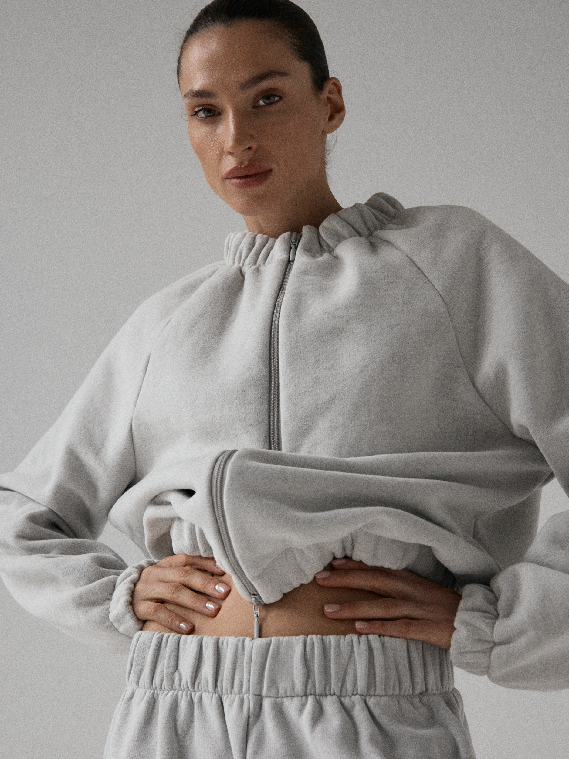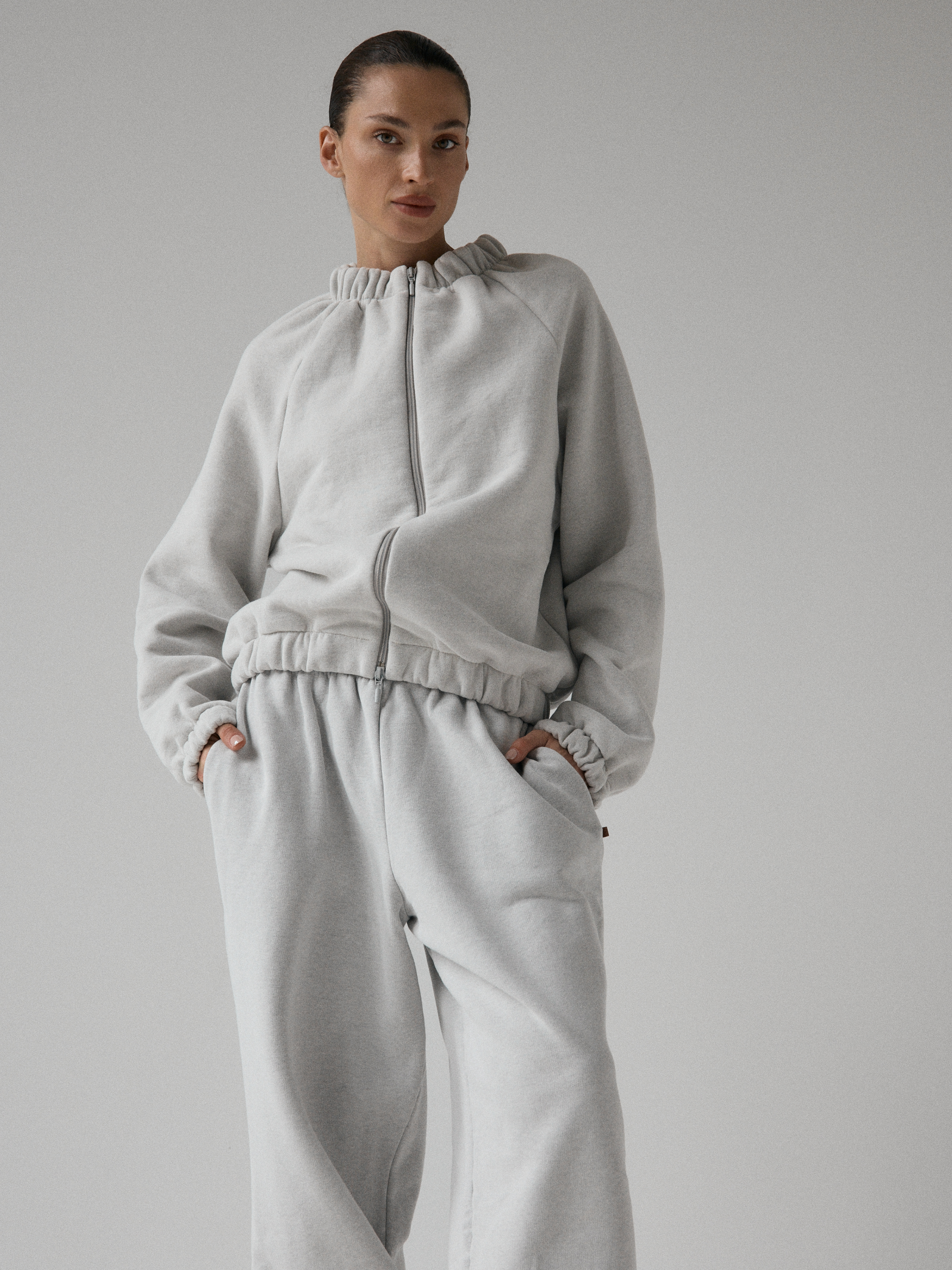 Bomberka o swobodnym kroju, zapinana na zamek, z elastycznym wykończeniem przy szyi, rękawach i na dole. Długość bluzy jest odpowiednia do spodni dresowych, leginsów i jeansów. Idealnie sprawdzi się w casualowym jak i sportowym zestawieniu. Tworzy świetny zestaw z naszymi spodniami dresowymi SMOOTH COTTON.