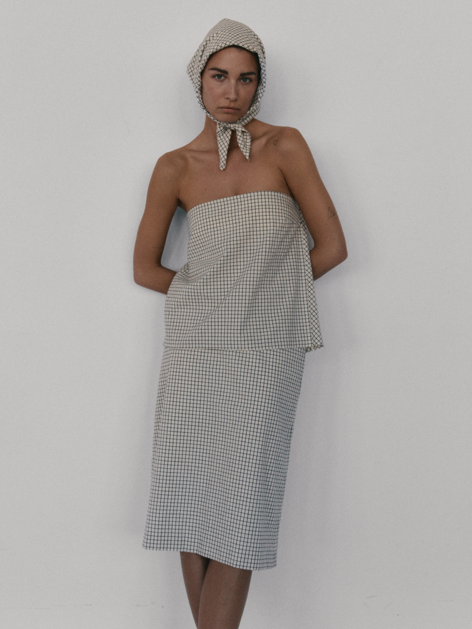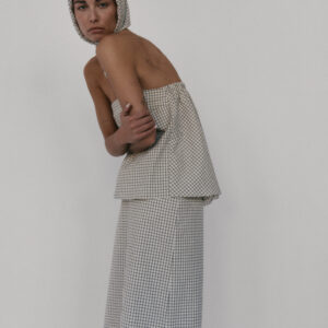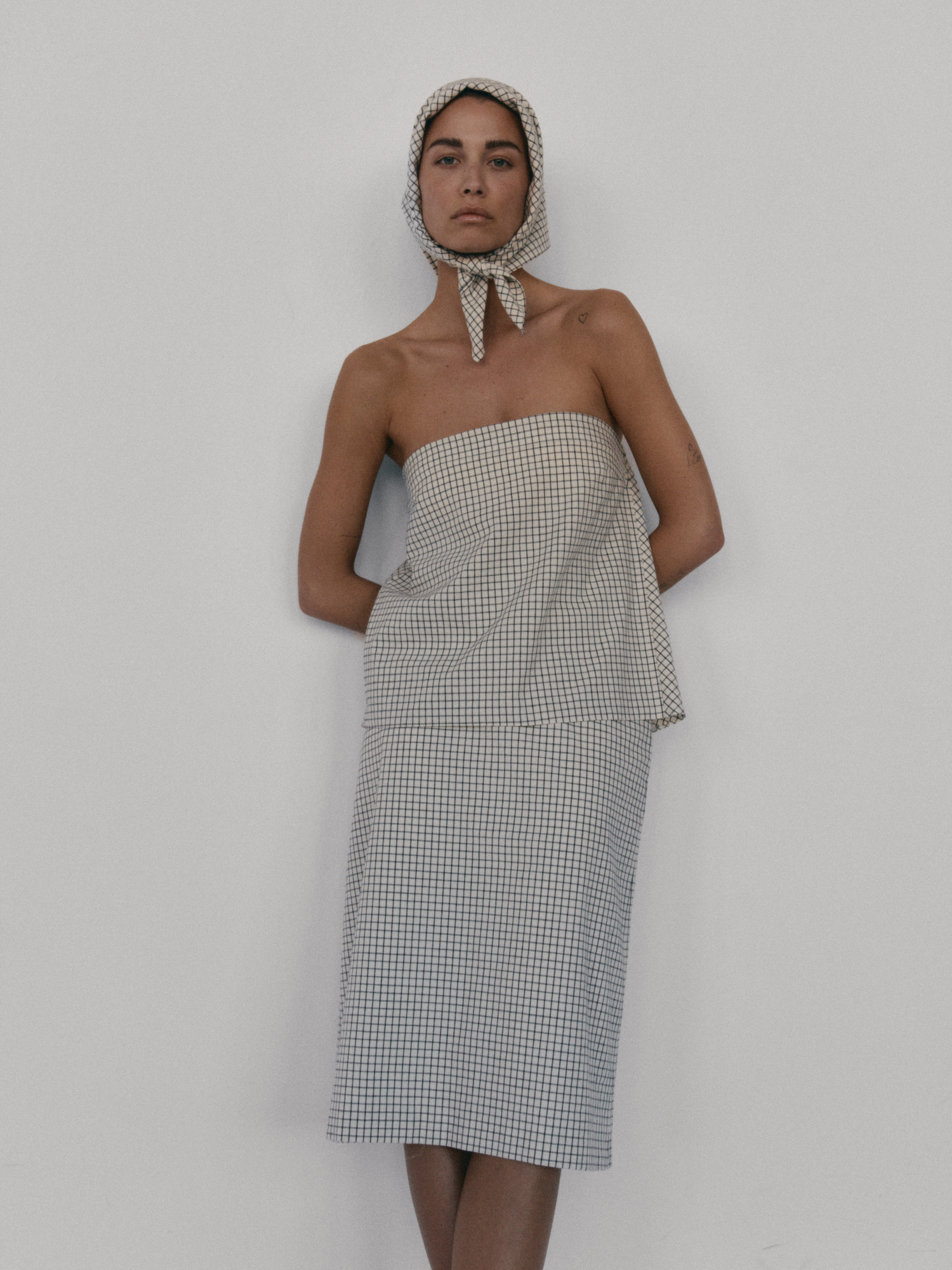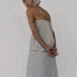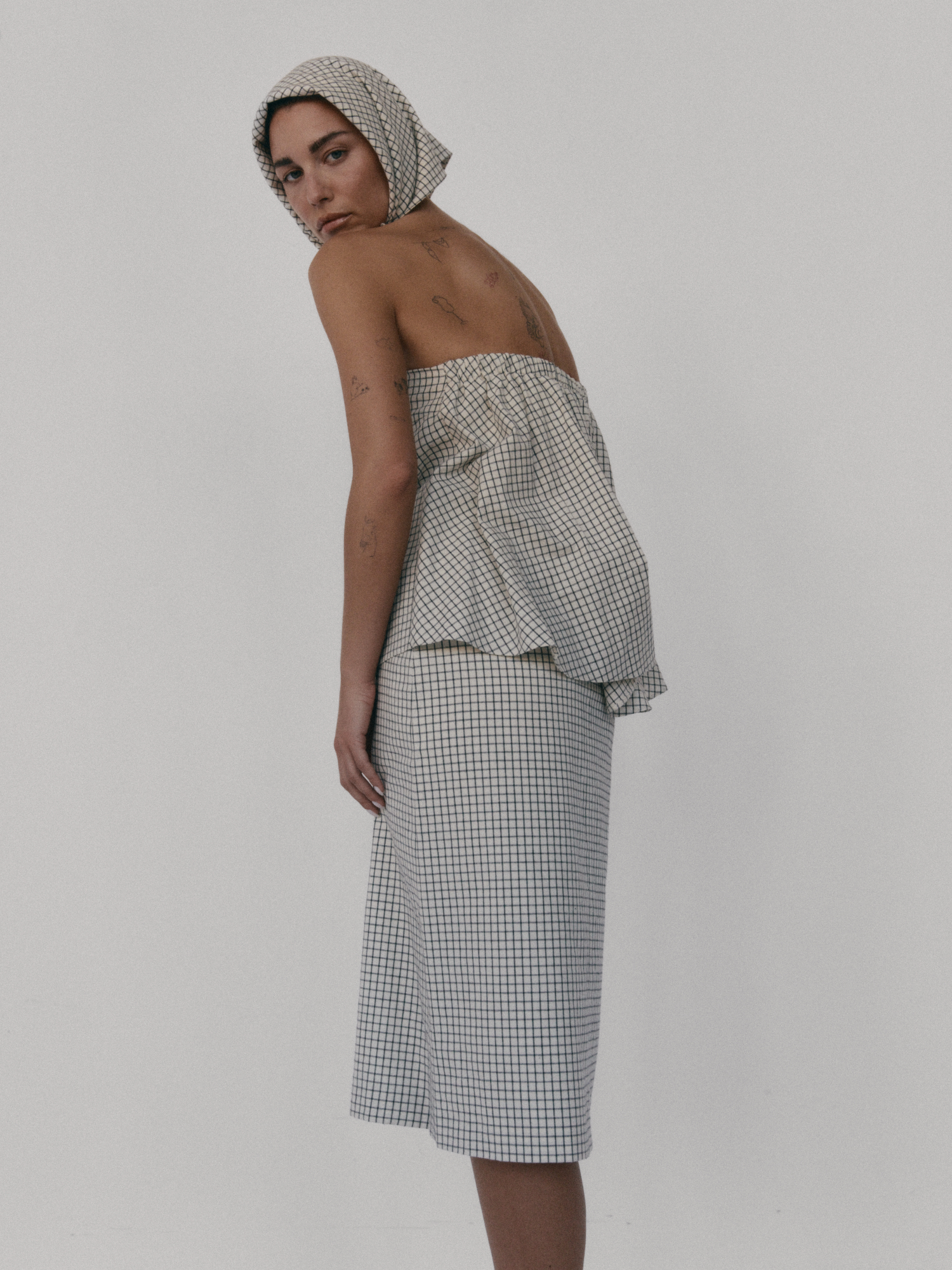 Spódnica midi o prostym kroju. Długość lekko za kolano. Zapiana na zamek z tyłu. Idealnie sprawdzi się w zestawie z topem oraz chustką MIE.
