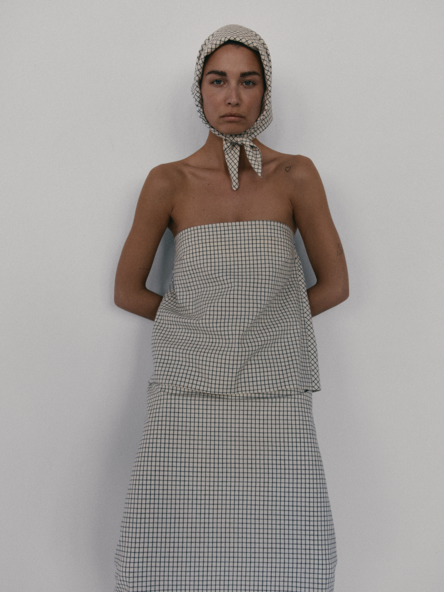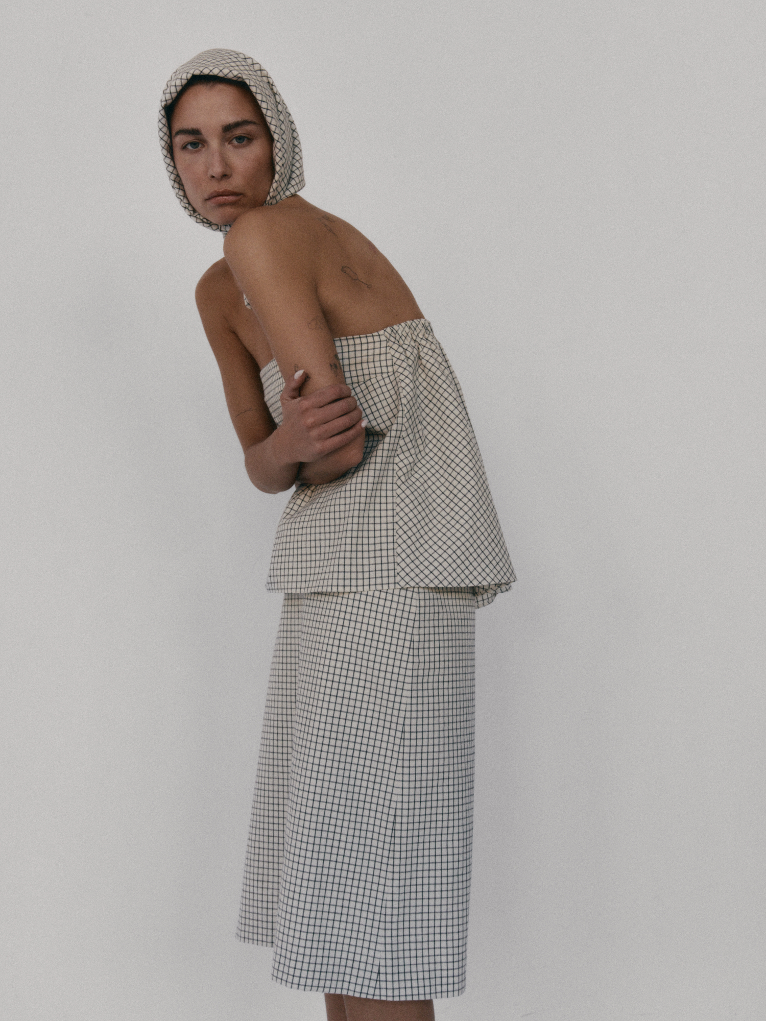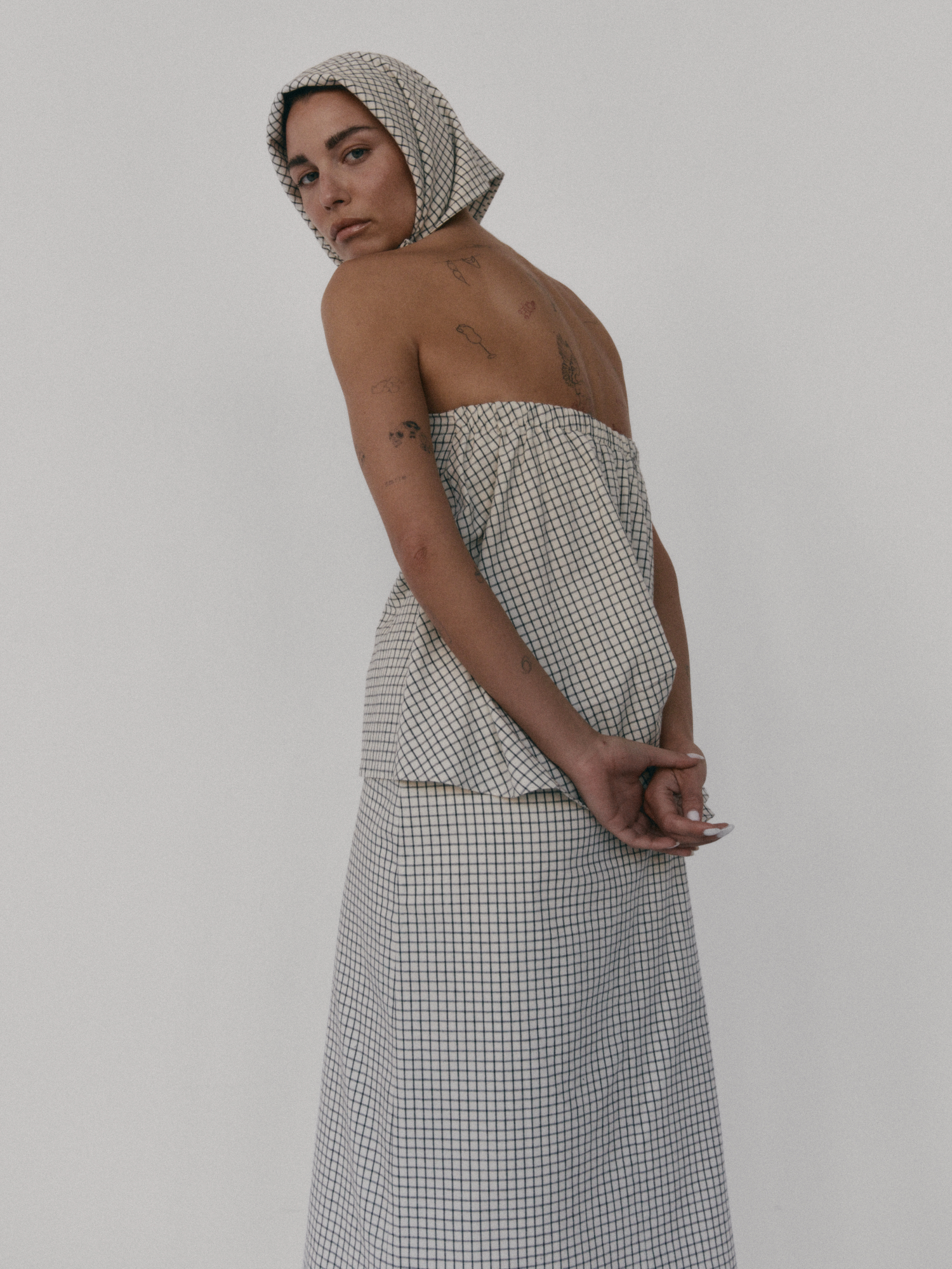 Spódnica midi o prostym kroju. Długość lekko za kolano. Zapiana na zamek z tyłu. Idealnie sprawdzi się w zestawie z topem oraz chustką MIE.