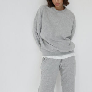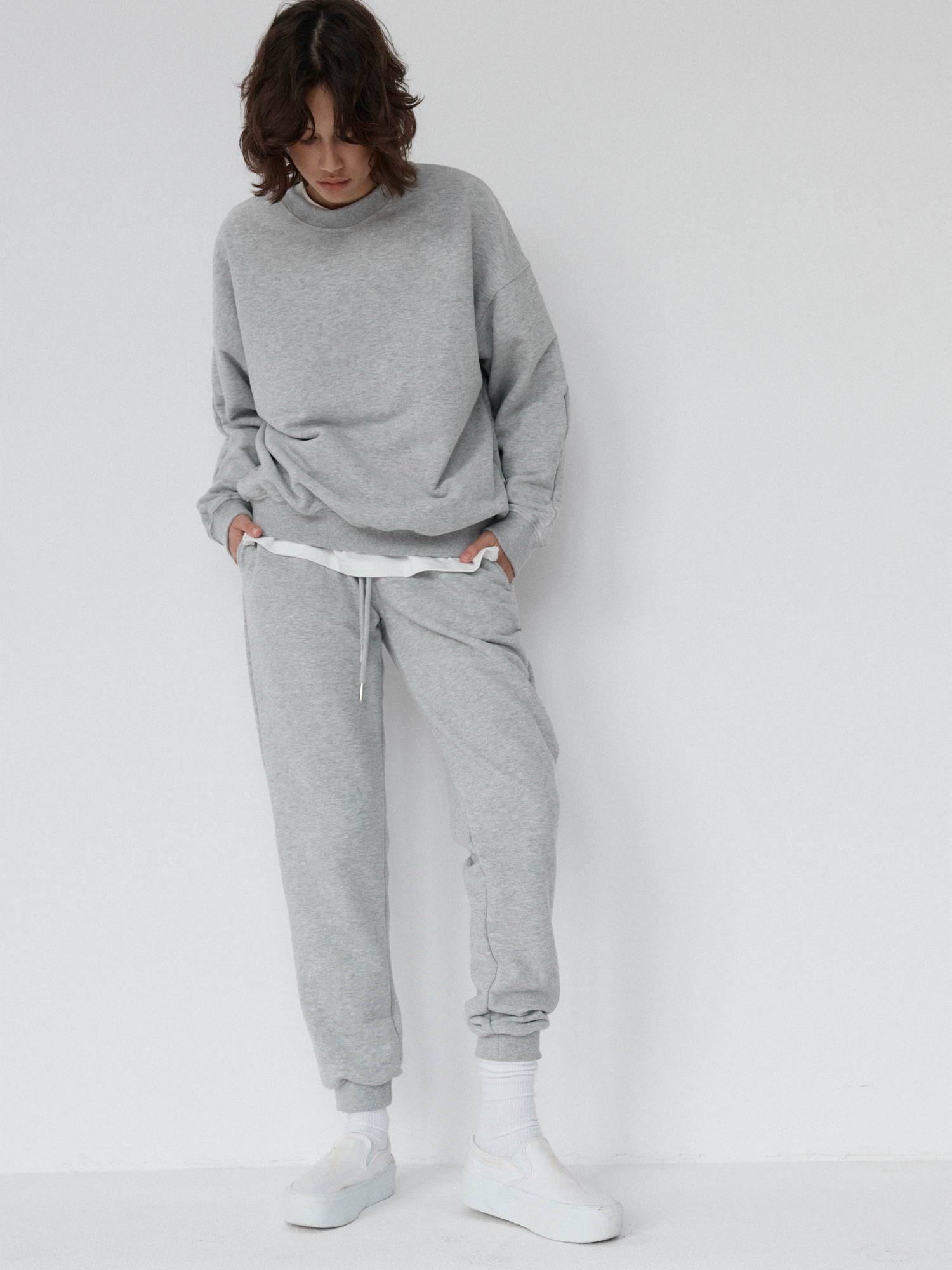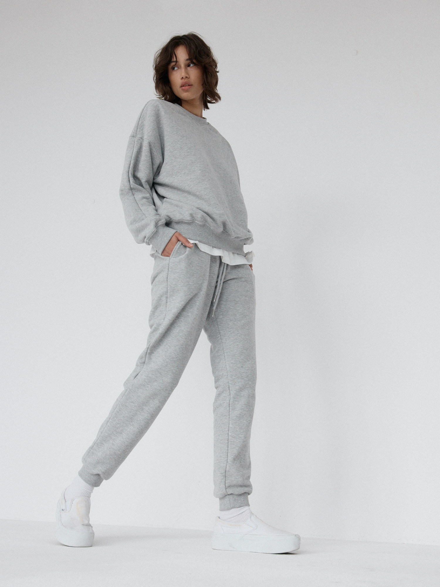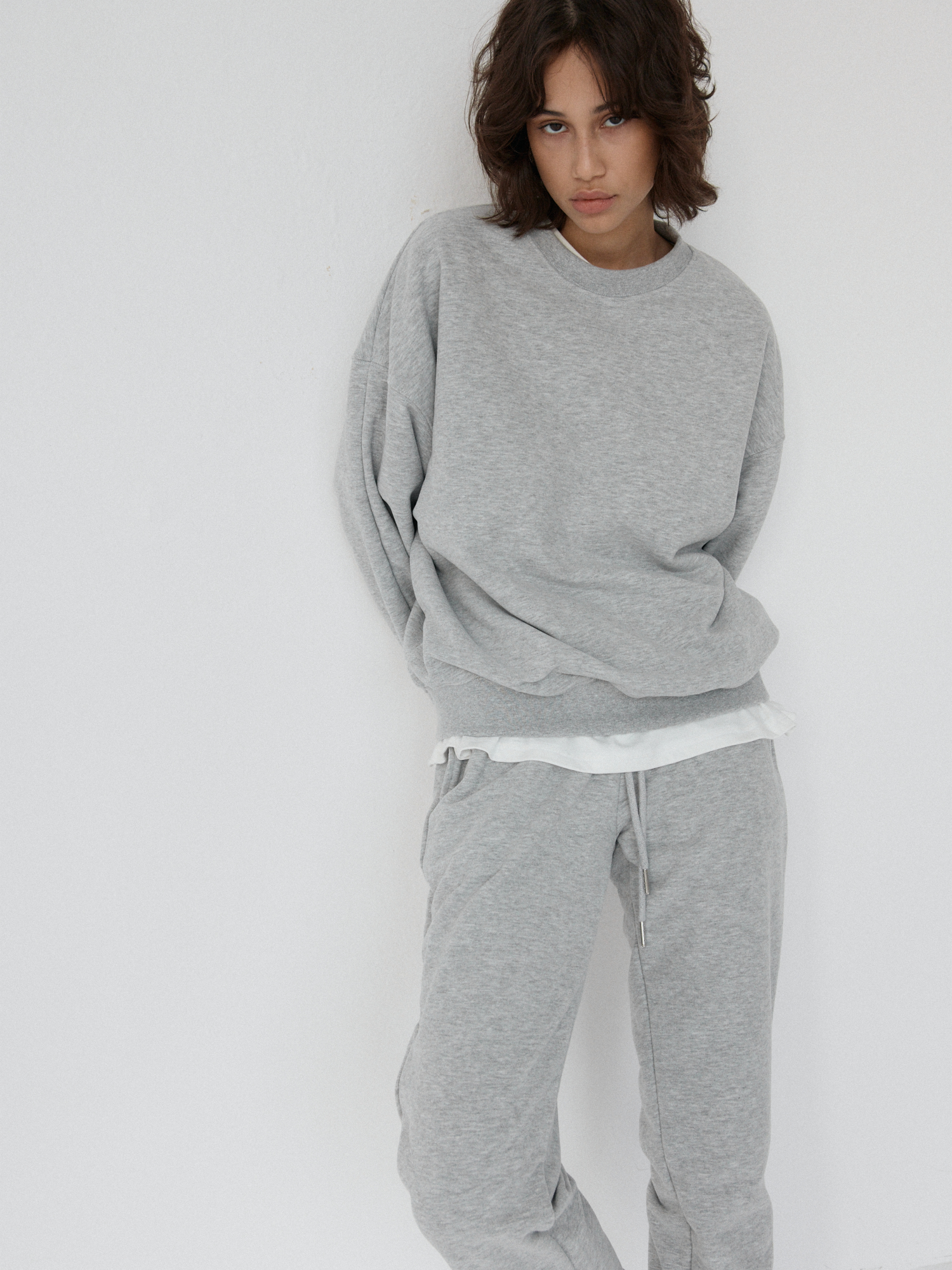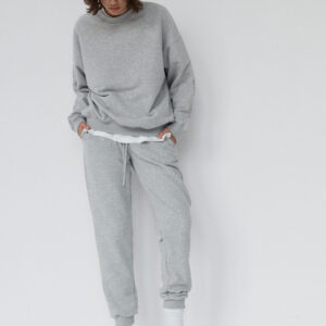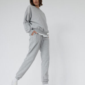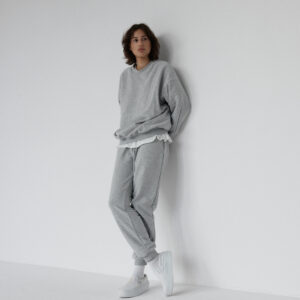 Spodnie dresowe o kroju typu slim fit, z niskim stanem i nogawkami zwężającymi się ku dołowi, wykończone ściągaczem. Model posiada głębokie kieszenie. W pasie wszyty bawełniany sznurek, który umożliwia regulację obwodu i swobodne dopasowanie do sylwetki. Idealnie prezentuje się z bluzami z serii LE PUMP.