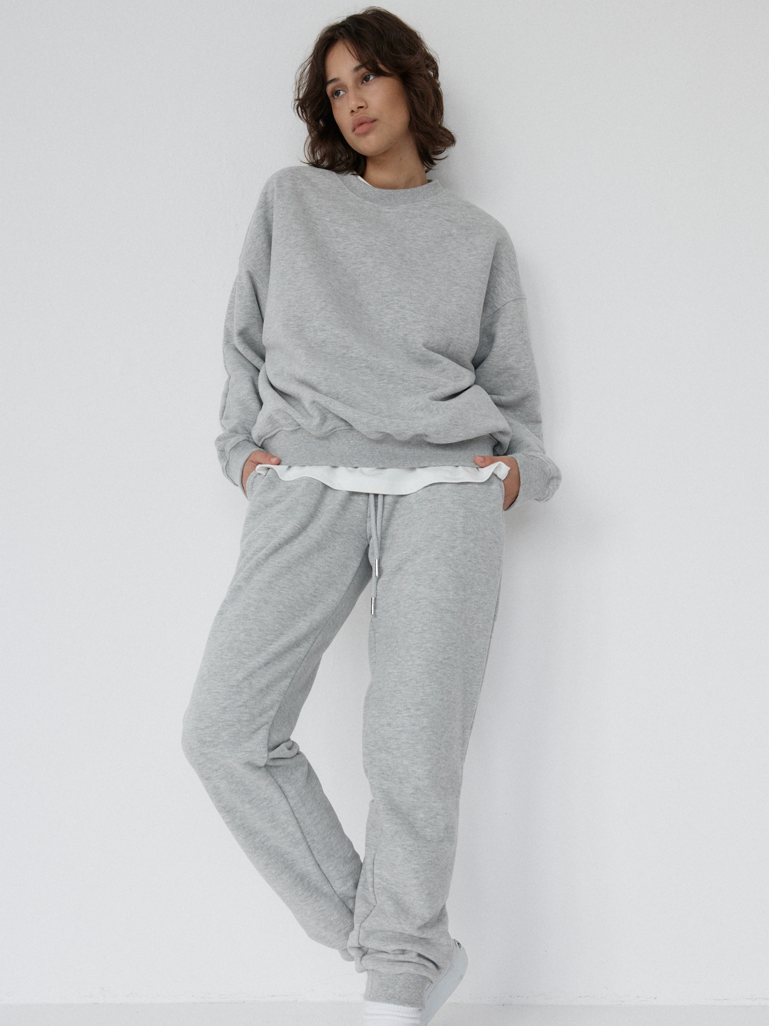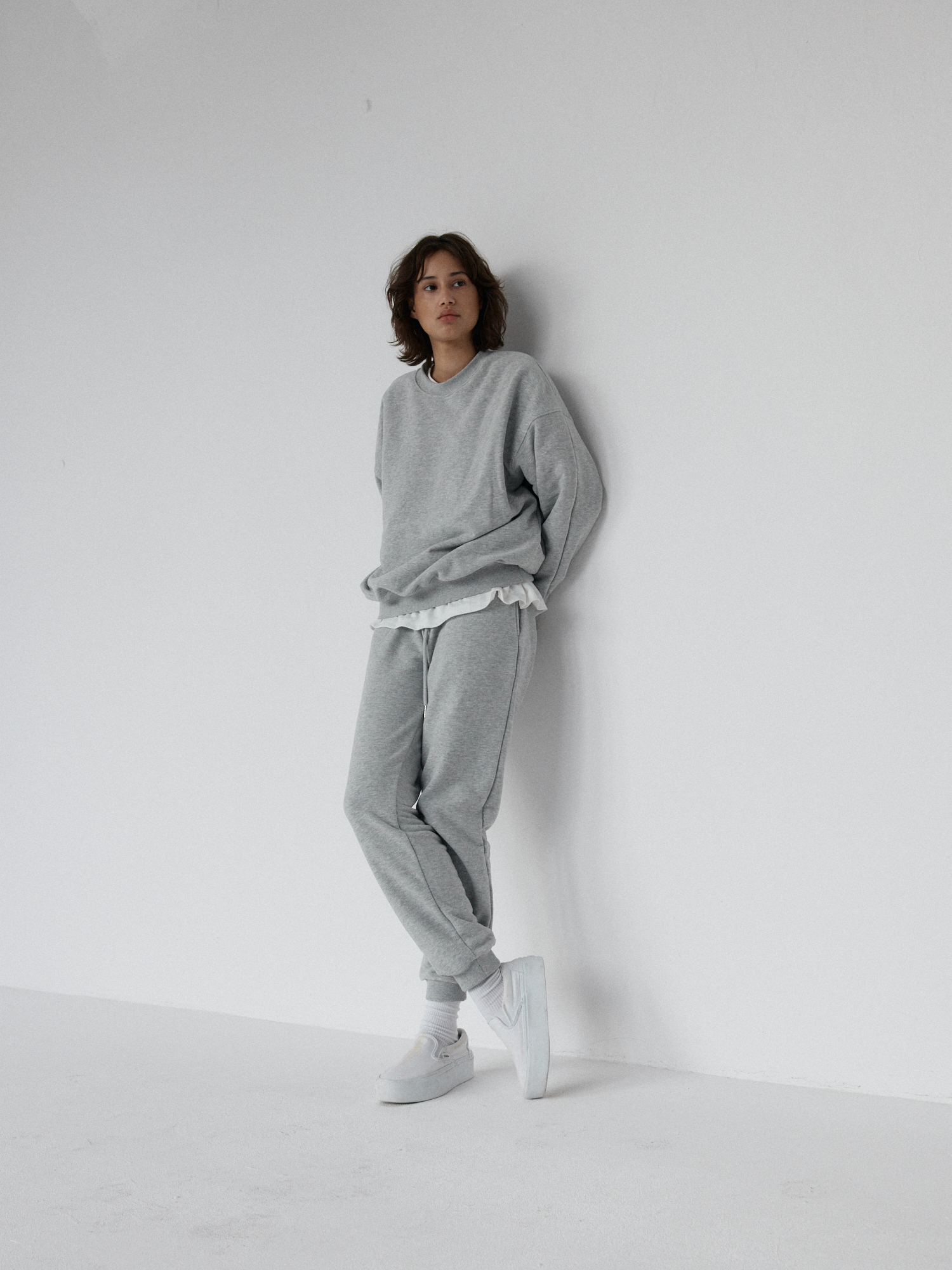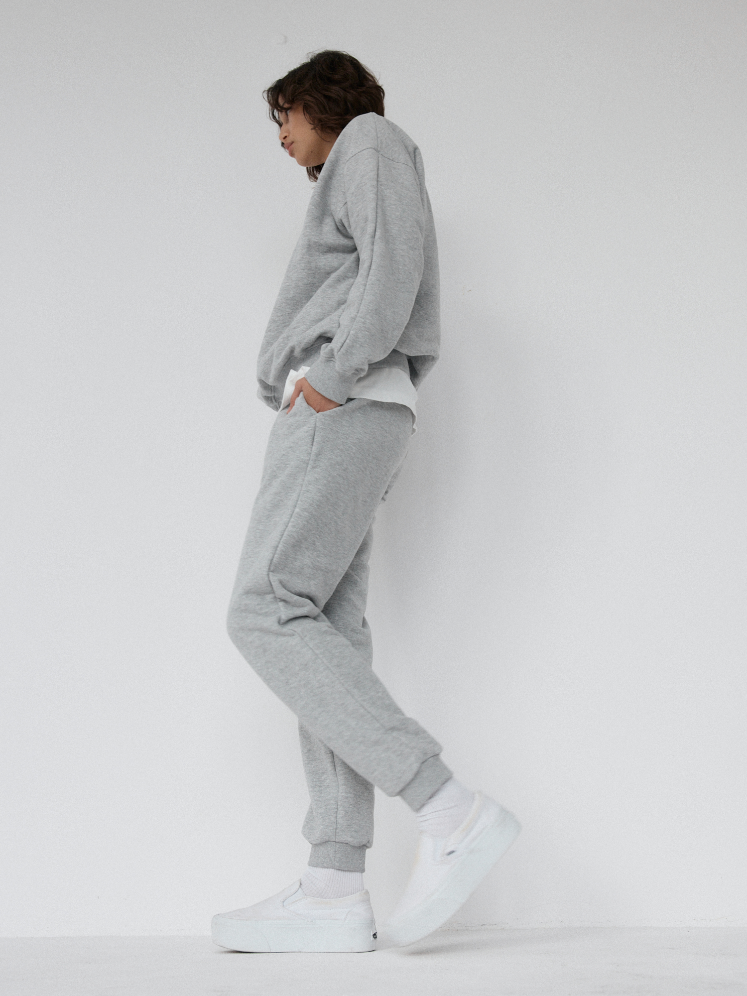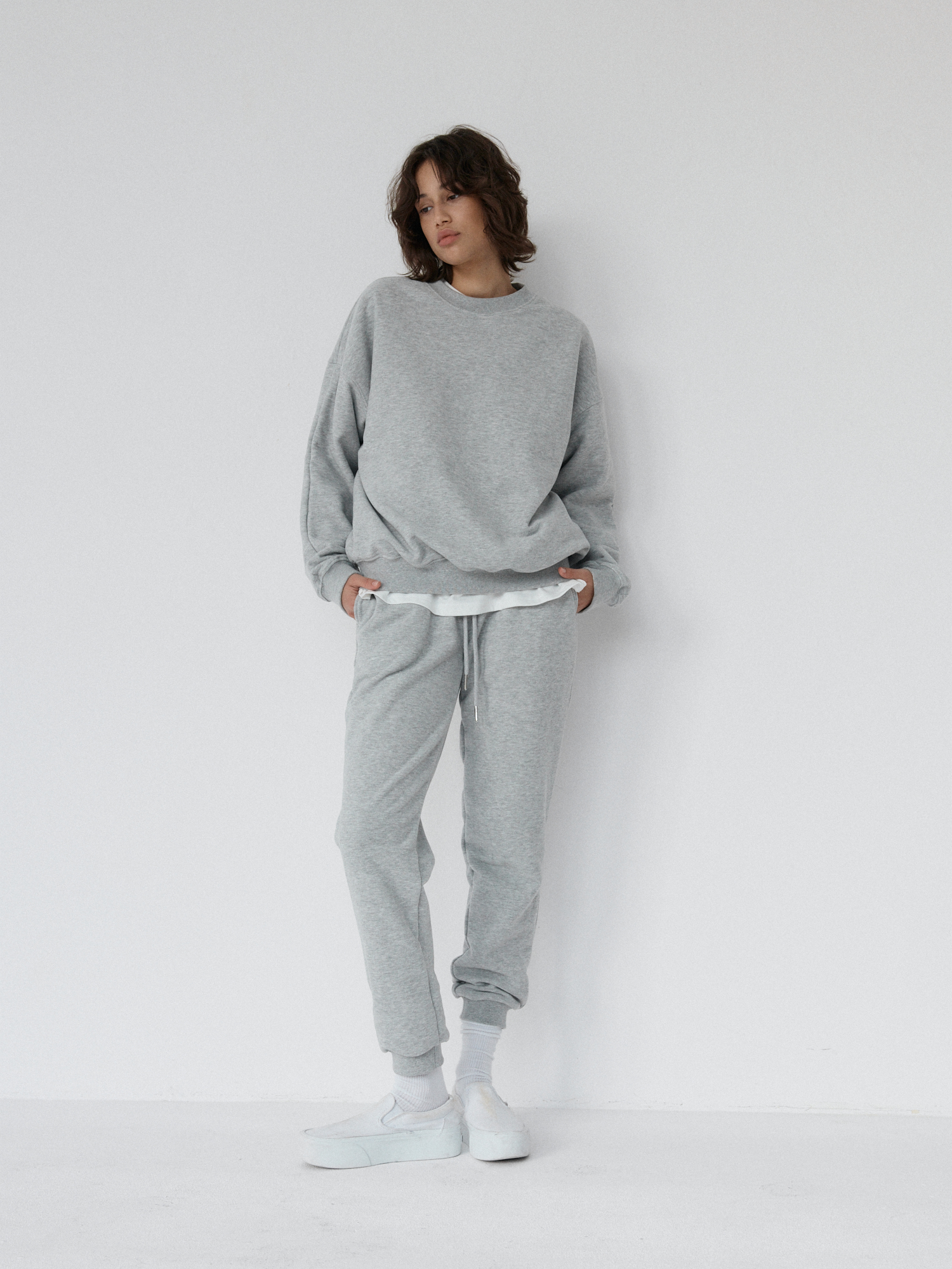 Spodnie dresowe o kroju typu slim fit, z niskim stanem i nogawkami zwężającymi się ku dołowi, wykończone ściągaczem. Model posiada głębokie kieszenie. W pasie wszyty bawełniany sznurek, który umożliwia regulację obwodu i swobodne dopasowanie do sylwetki. Idealnie prezentuje się z bluzami z serii LE PUMP.