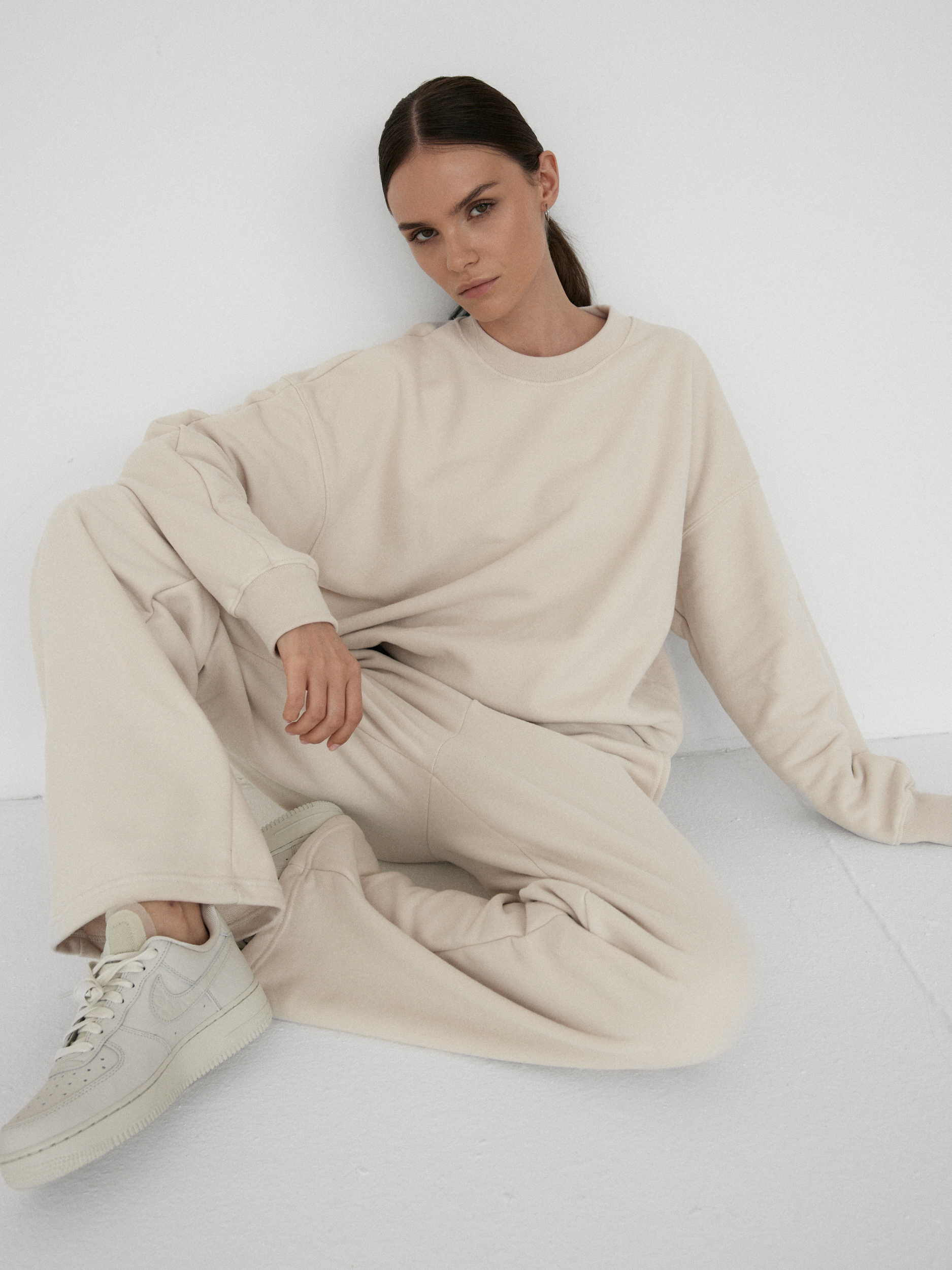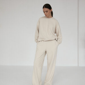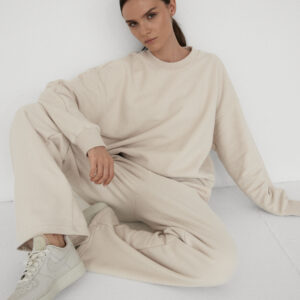 Spodnie LE PUMP uszyte są z wysokogatunkowej bawełny z domieszką poliestru, o delikatnie niższej gramaturze niż bestsellerowy model SOFT TOUCH z kolekcji WHAT IF. Specjalne uszlachetnienie – szmerglowanie z prawej strony sprawia, że jest niezwykle przyjemna w dotyku. Dzianina ma drobną pętelkę w środku, co czyni ją perfekcyjną na sezon wiosenno-letni, a także sprawia, że materiał miękko się układa. Nie podrażnia skóry, nie elektryzuje się.