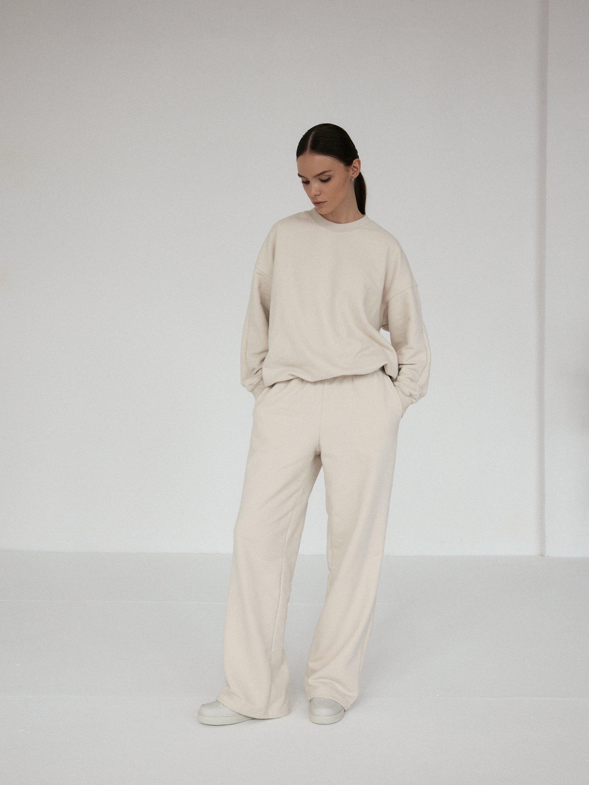 spodnie dresowe z prostą nogawką LE PUMP almond beige