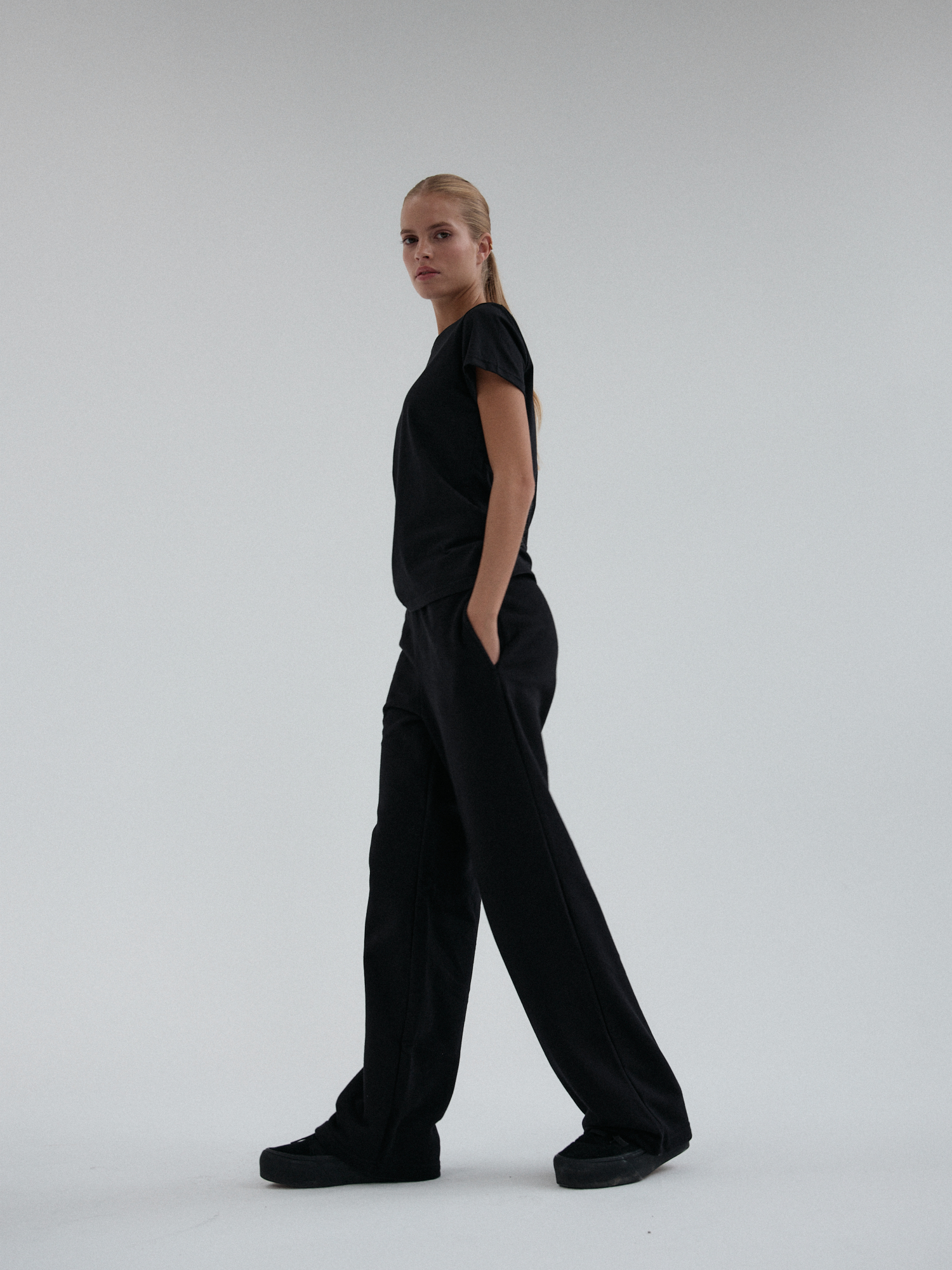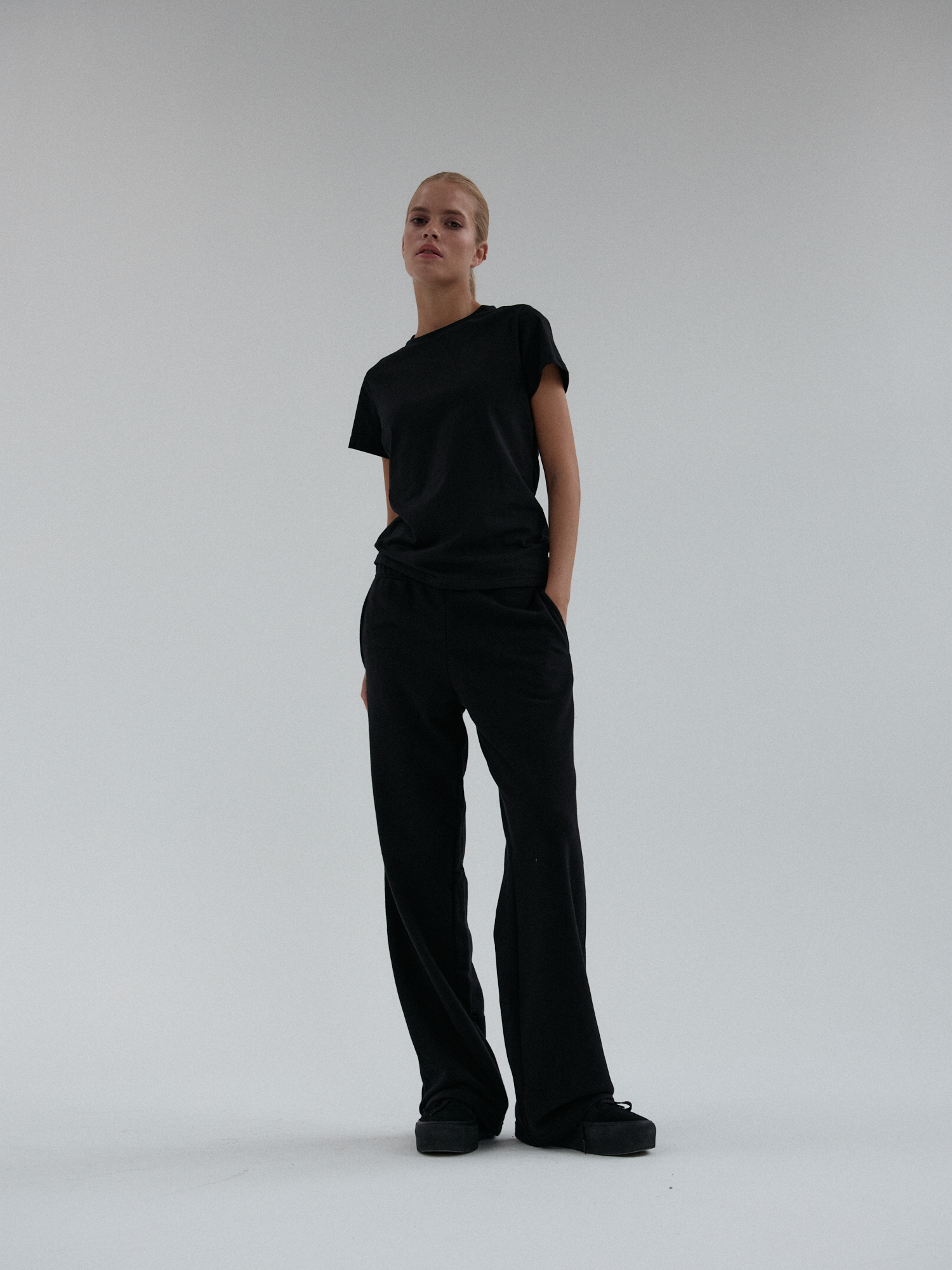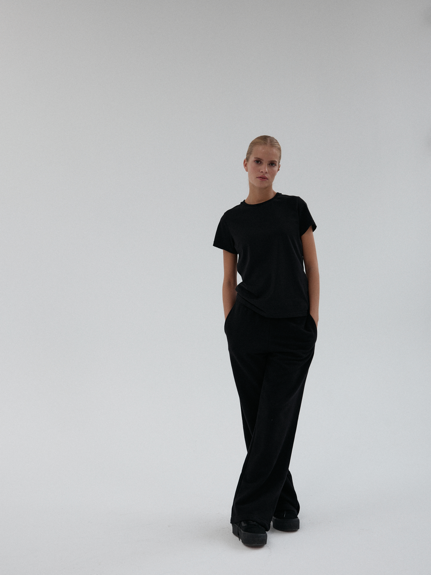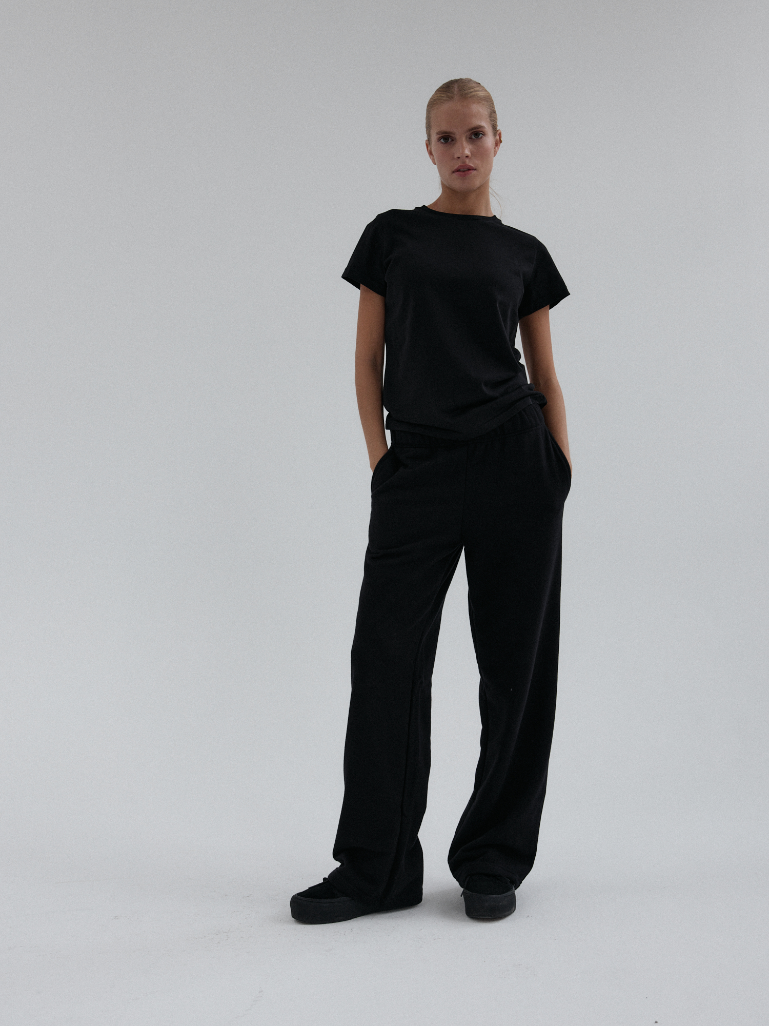 Spodnie dresowe o luźnym, prostym kroju. Uszyte z miękkiej i elastycznej dzianiny, zapewniają komfort noszenia. Posiadają praktyczne kieszenie oraz elastyczną talię, która dopasowuje się do sylwetki.