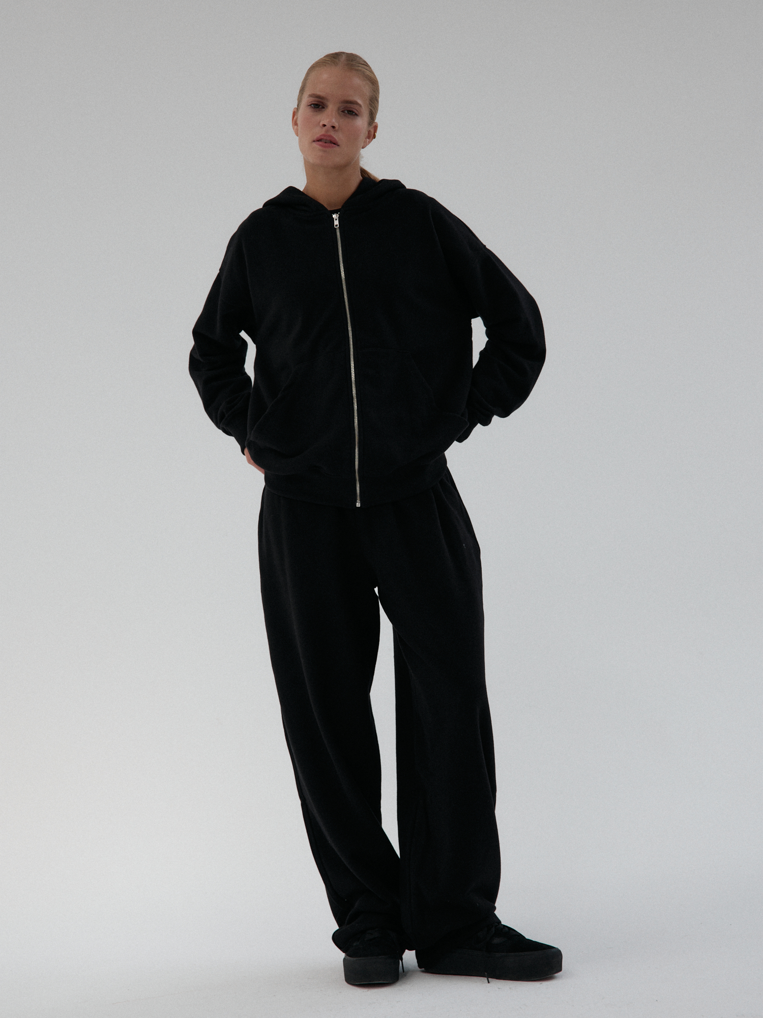 Spodnie LE PUMP uszyte są z wysokogatunkowej bawełny z domieszką poliestru, o delikatnie niższej gramaturze niż bestsellerowy model SOFT TOUCH z kolekcji WHAT IF. Specjalne uszlachetnienie – szmerglowanie z prawej strony sprawia, że jest niezwykle przyjemna w dotyku. Dzianina ma drobną pętelkę w środku, co czyni ją perfekcyjną na sezon wiosenno-letni, a także sprawia, że materiał miękko się układa. Nie podrażnia skóry, nie elektryzuje się.