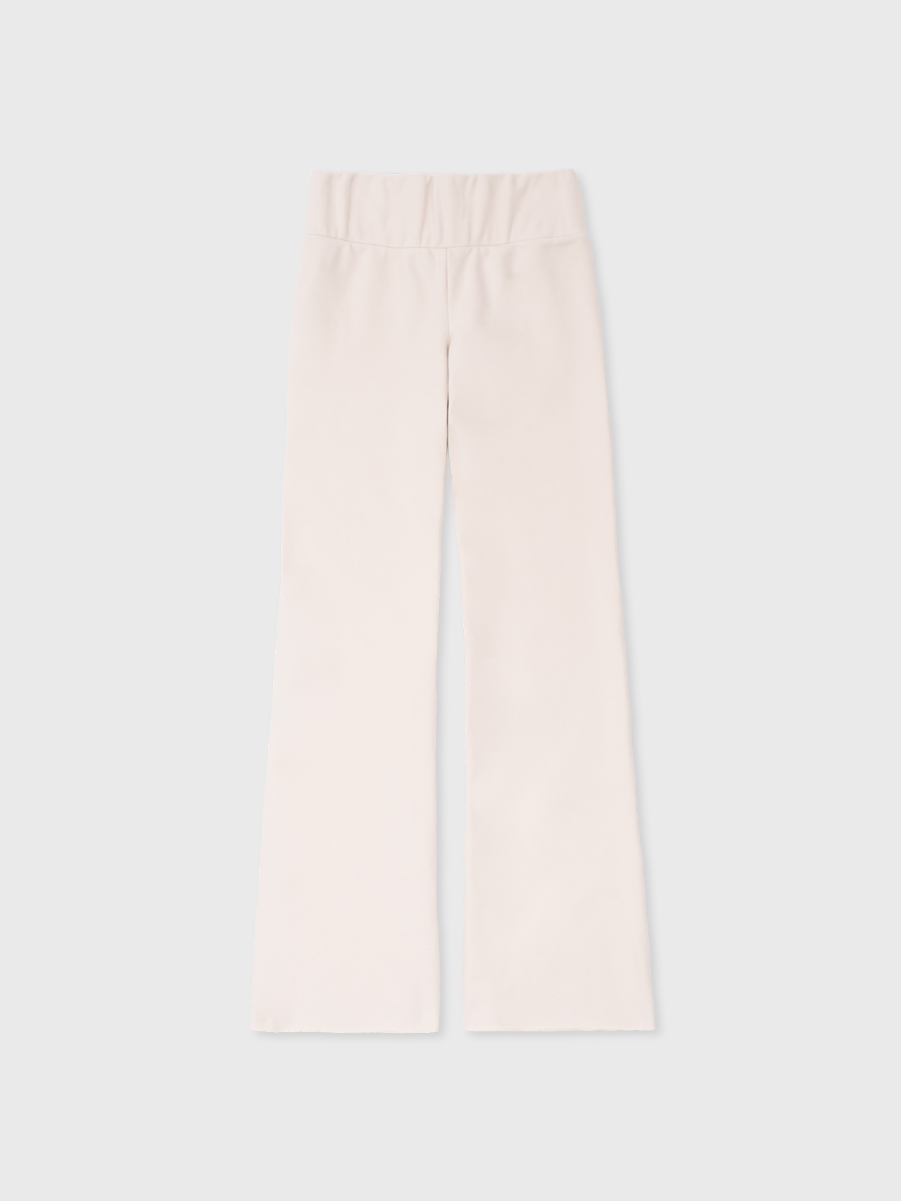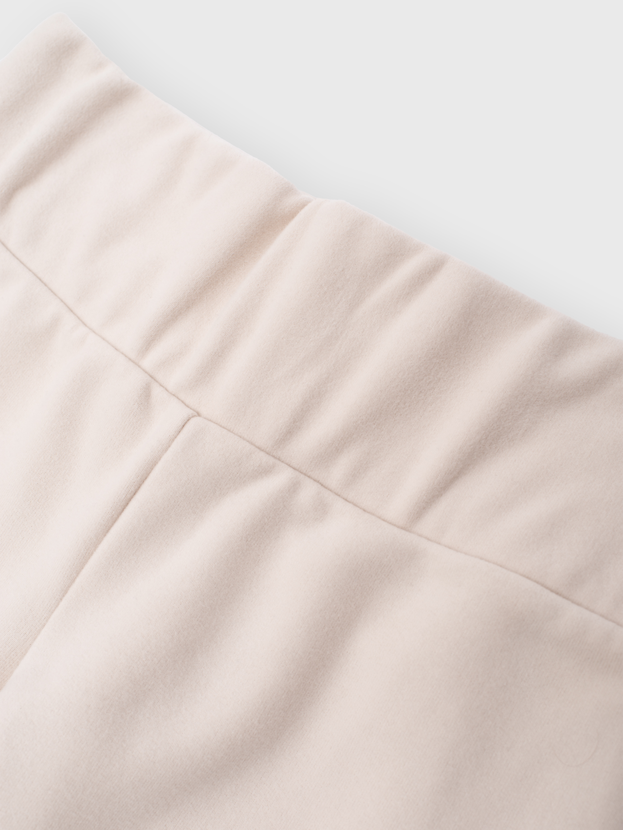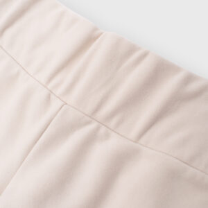 Spodnie LE PUMP uszyte są  z wysokogatunkowej bawełny z domieszką poliestru z recyklingu. Specjalne uszlachetnienie – szmerglowanie z prawej strony sprawia, że są niezwykle przyjemne w dotyku. Dzianina ma drobną pętelkę w środku, co czyni ją perfekcyjną na sezon wiosenno-letni, a także sprawia, że materiał miękko się układa. Nie podrażnia skóry, nie elektryzuje się.