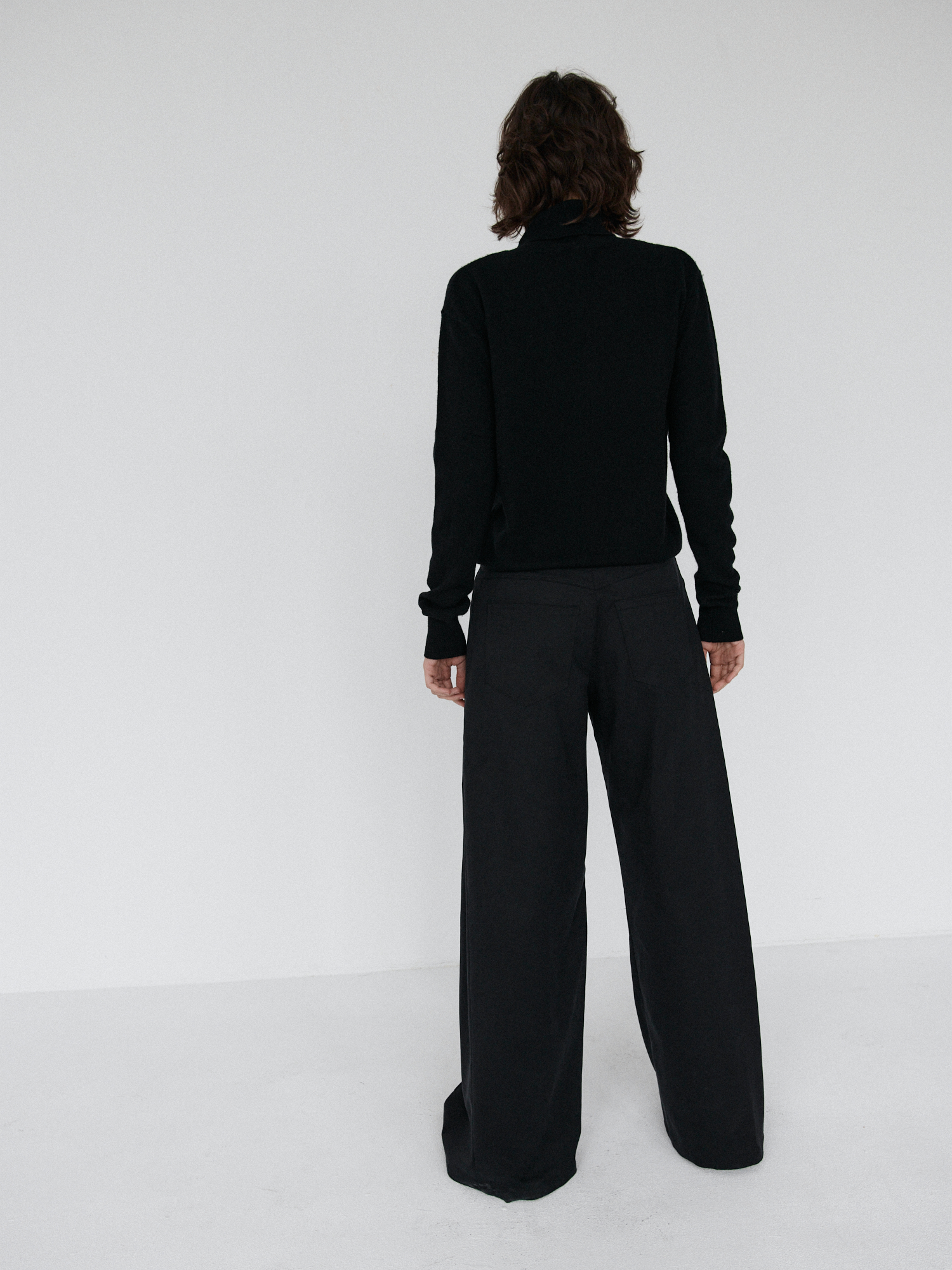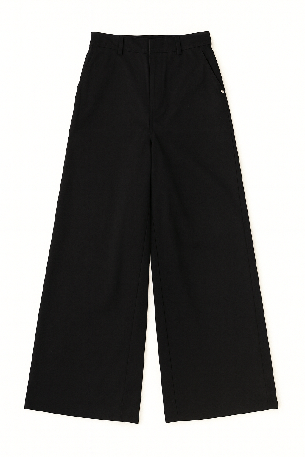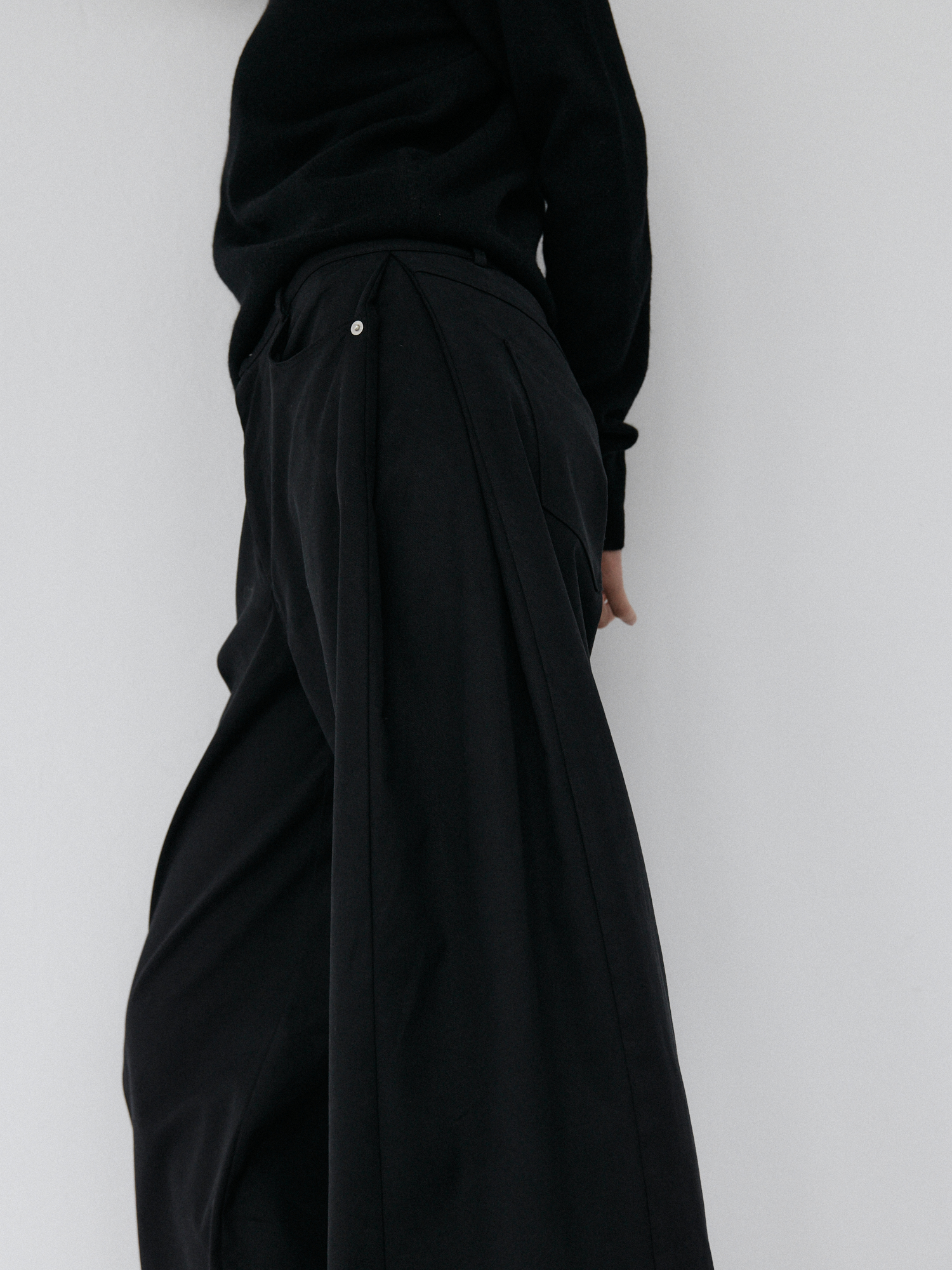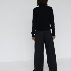 Spodnie o luźnym, ultra szerokim kroju typu wide leg. Model posiada średni stan oraz kontrafałdę z boku nogawki, która dodatkowo ją poszerza. Długie nogawki swobodnie opadają na stopy. Model posiada funkcjonalne kieszenie z przodu i z tyłu. Spodnie zapinane na zamek i guzik. Idealne zarówno do codziennych, jak i bardziej eleganckich stylizacji — świetnie wyglądają z oversize’owym swetrem, koszulą czy dopasowanym topem.