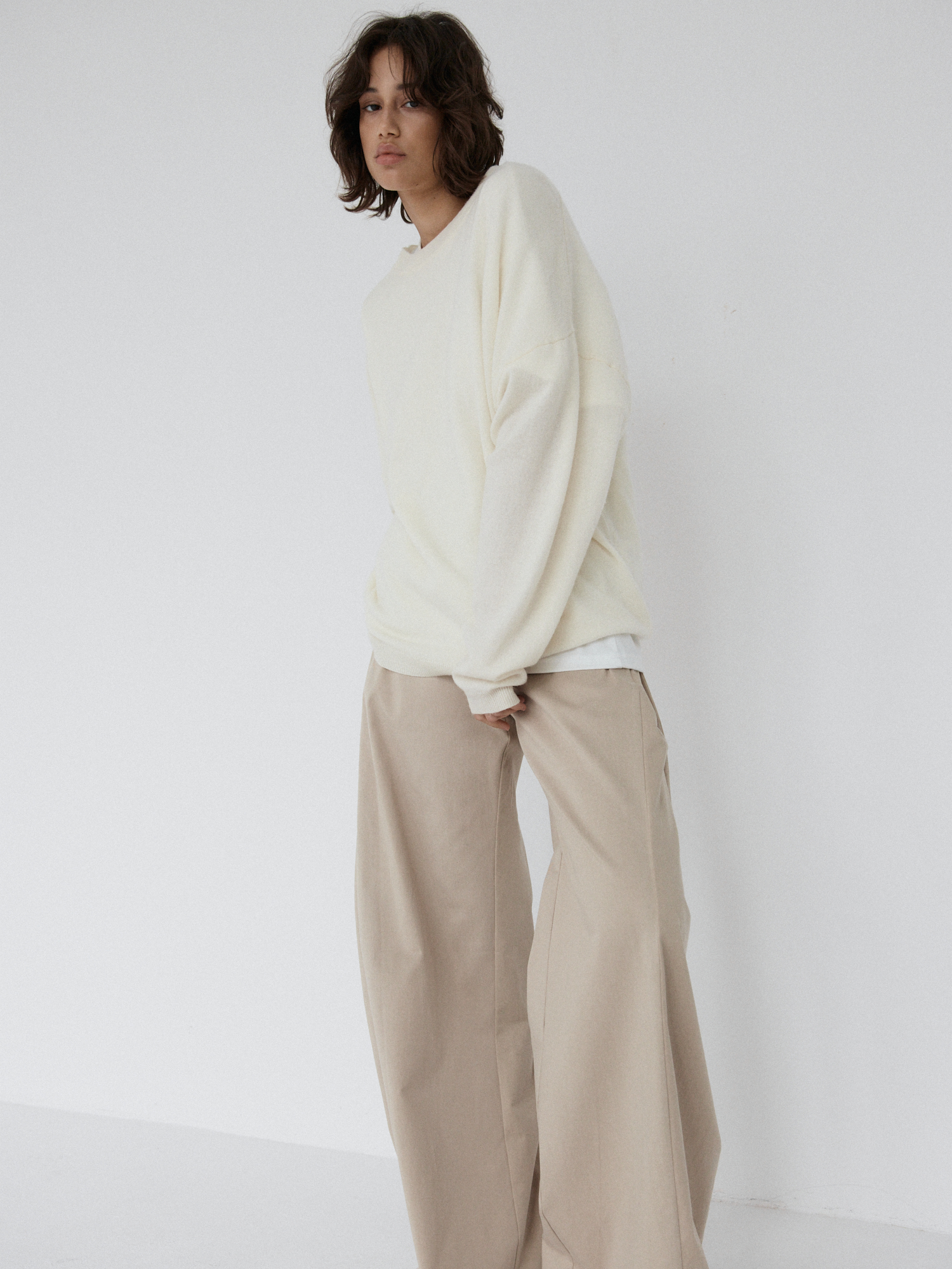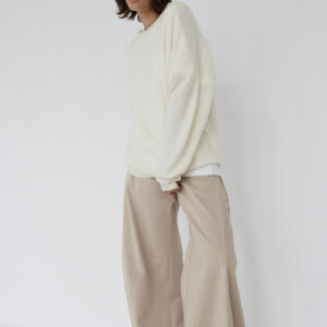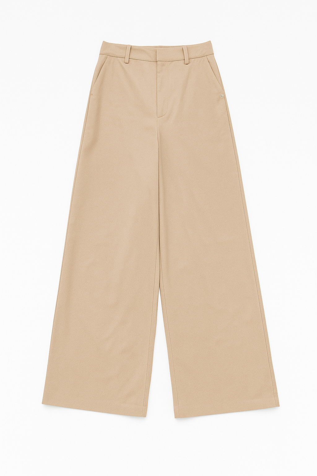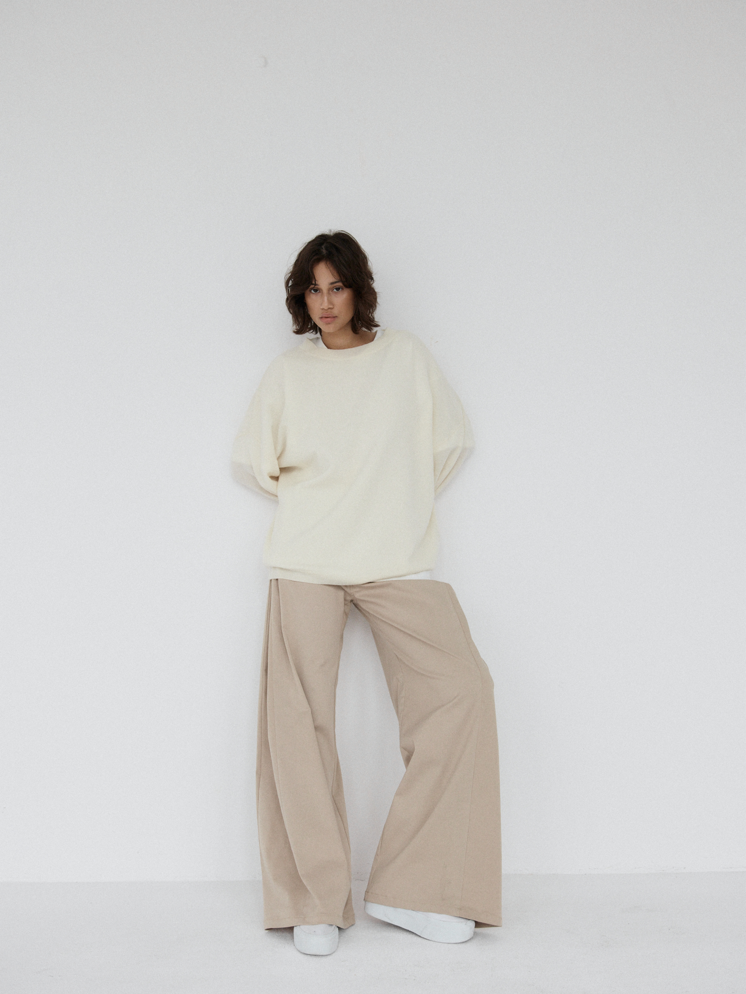 Spodnie o luźnym, ultra szerokim kroju typu wide leg. Model posiada średni stan oraz kontrafałdę z boku nogawki, która dodatkowo ją poszerza. Długie nogawki swobodnie opadają na stopy. Model posiada funkcjonalne kieszenie z przodu i z tyłu. Spodnie zapinane na zamek i guzik. Idealne zarówno do codziennych, jak i bardziej eleganckich stylizacji — świetnie wyglądają z oversize’owym swetrem, koszulą czy dopasowanym topem.