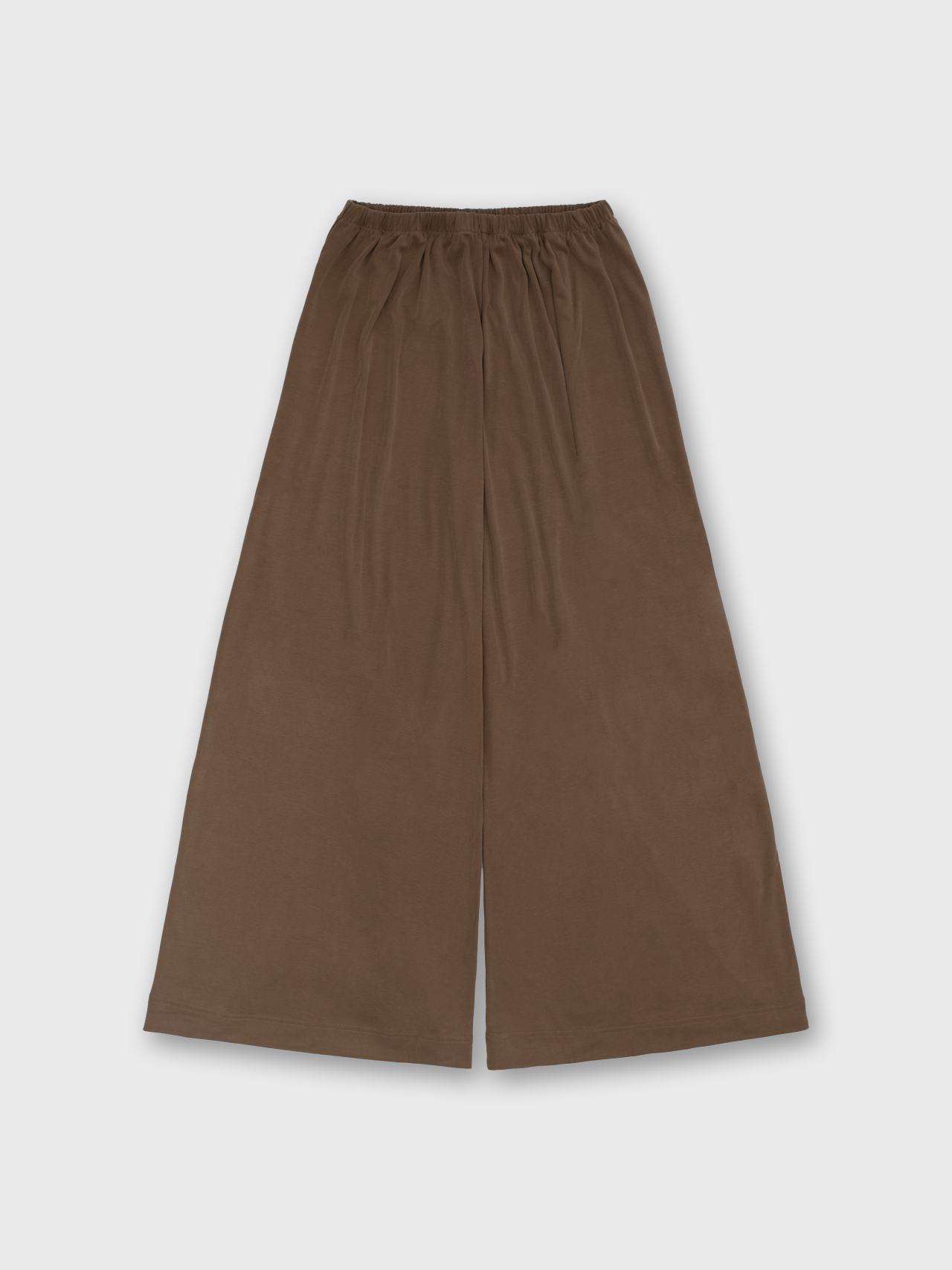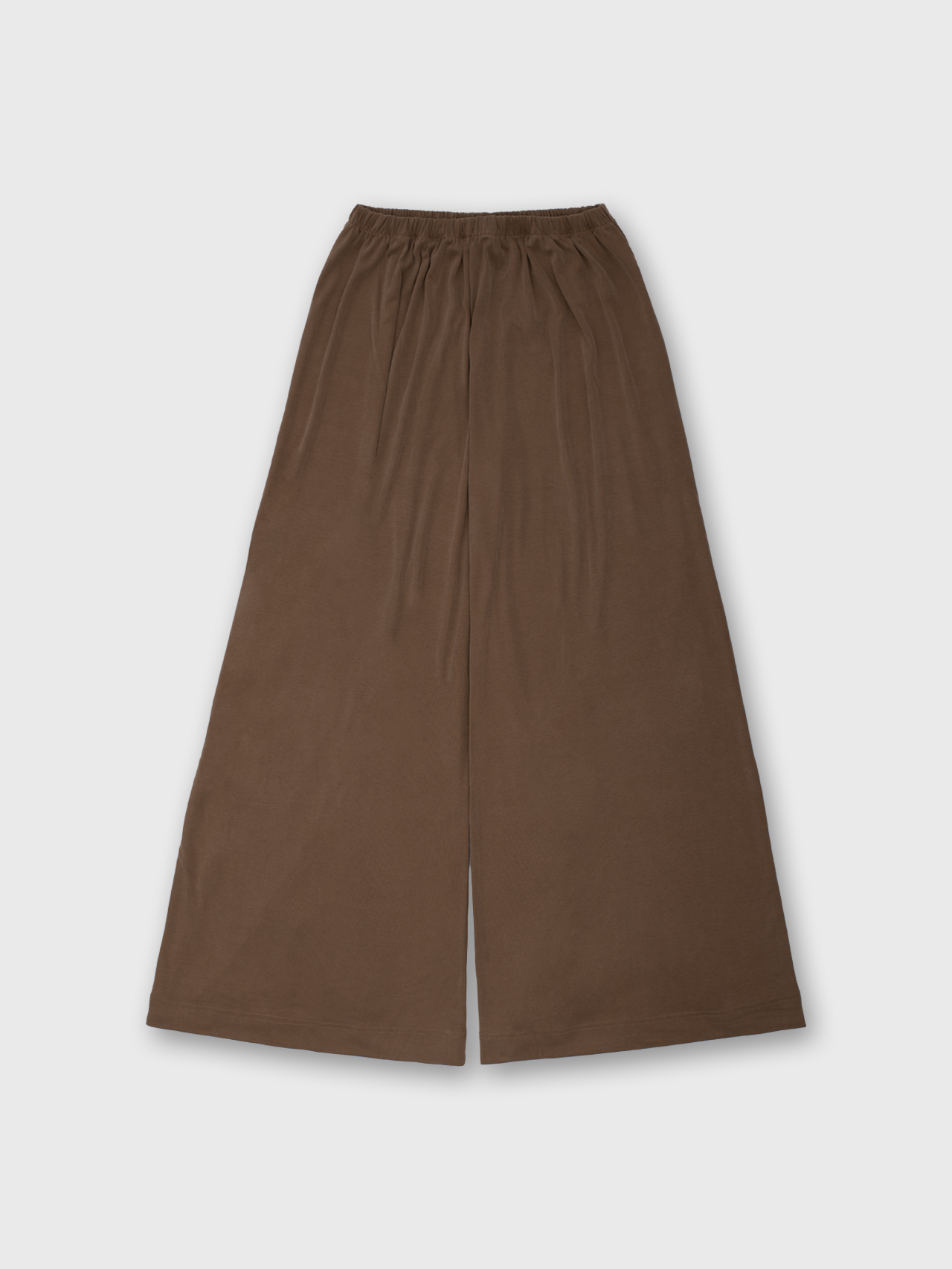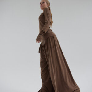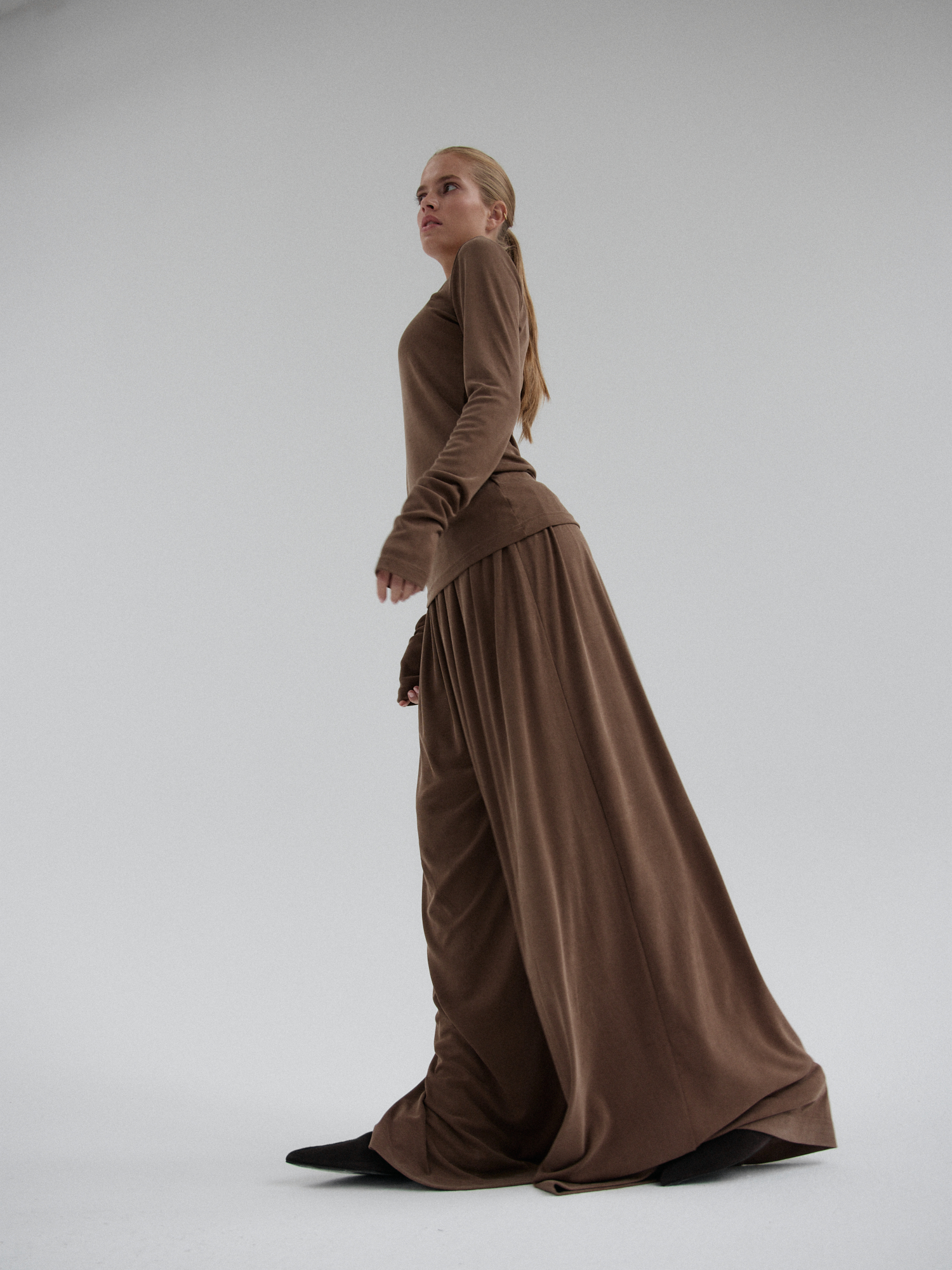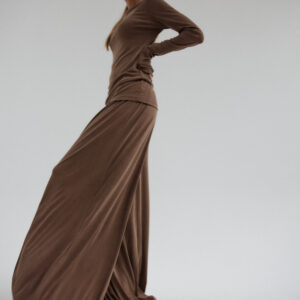 Minimalistyczne spodnie o kroju wide leg, które zachwycają płynnością i lekkością materiału. Wykonane z niezwykle miękkiej i elastycznej dzianiny, pięknie układają się przy każdym ruchu, tworząc nowoczesną, a zarazem komfortową sylwetkę. Model posiada szerokie nogawki oraz elastyczną talię zapewniającą wygodę noszenia i dopasowanie do sylwetki. Spodnie najlepiej wyglądają w zestawieniu z naszym longsleevem CIEO w tym samym odcieniu.