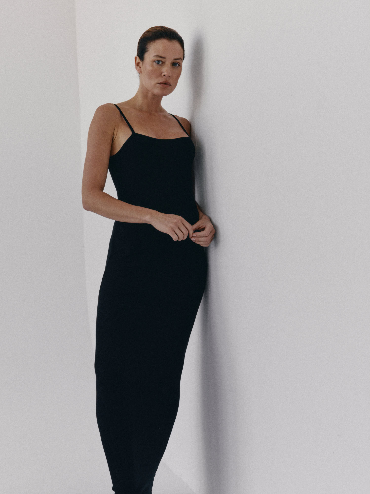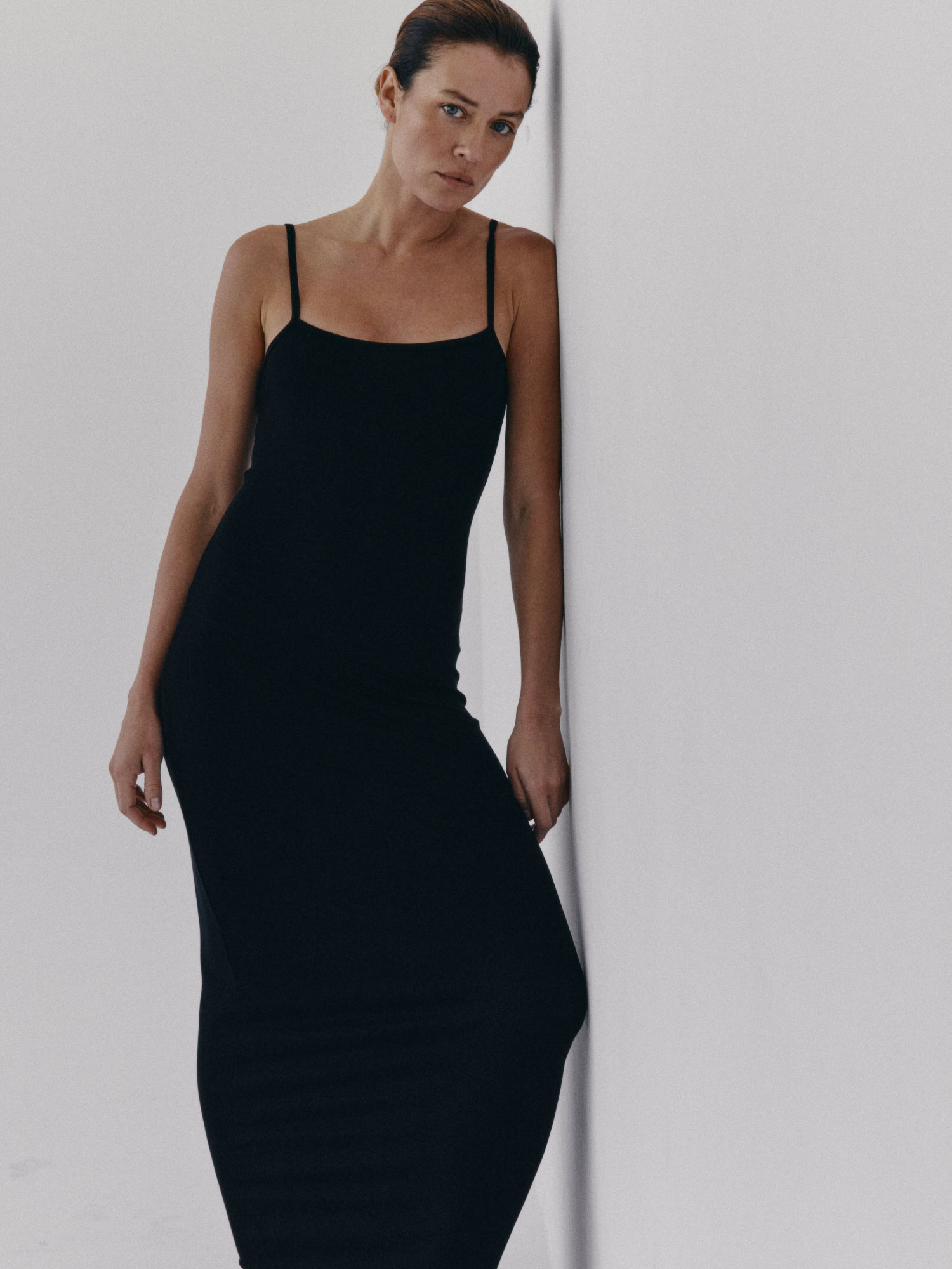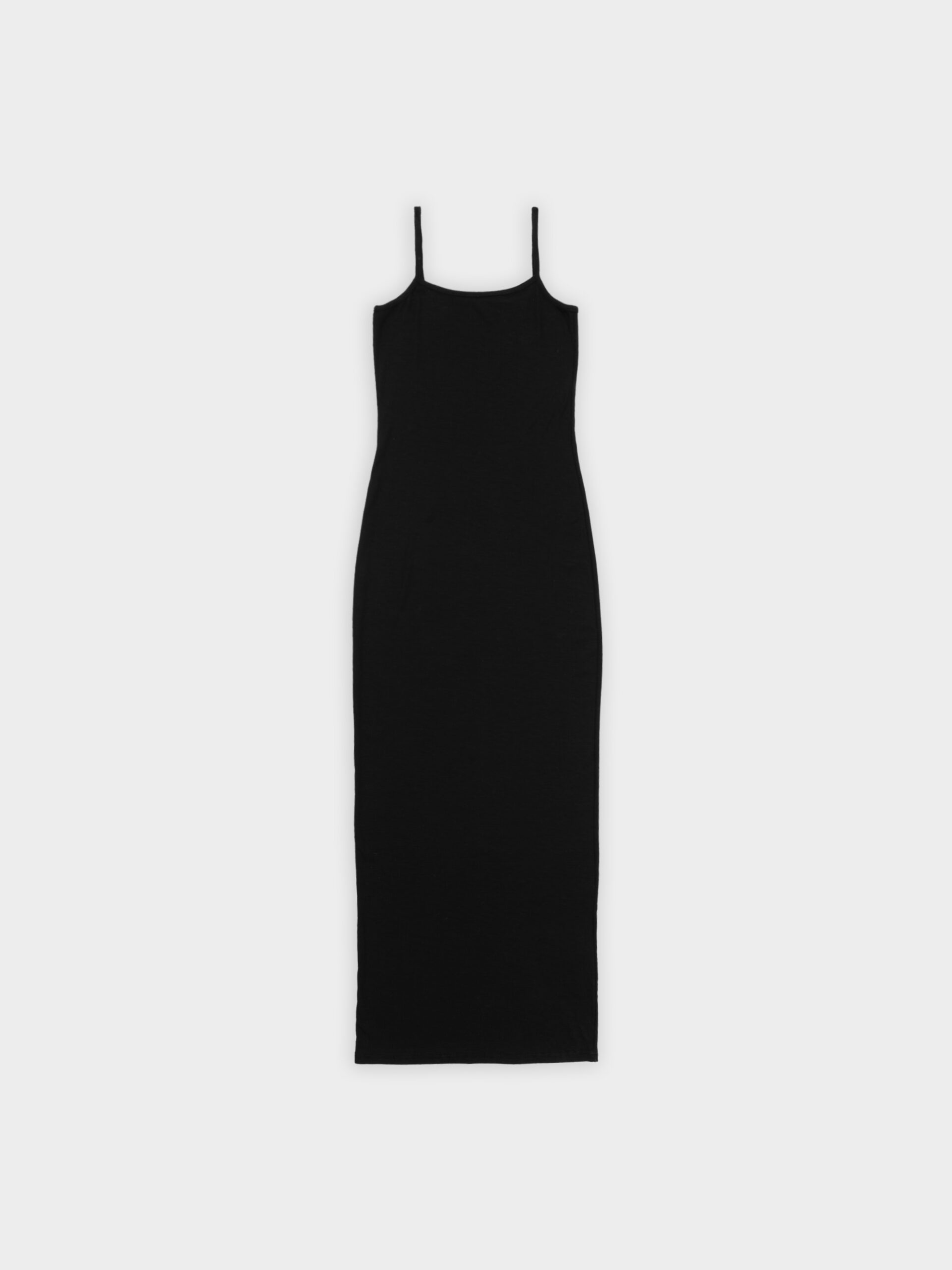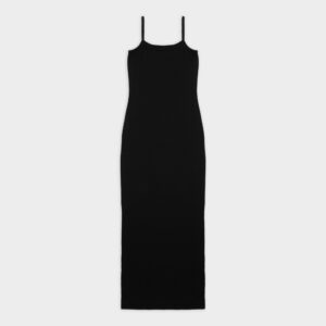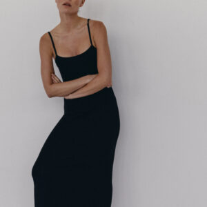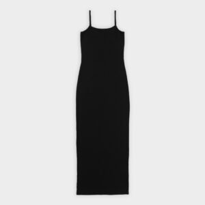 Długa prążkowana sukienka na cienkich ramiączka. Długość do kostek. Sukienka płynnie dopasowuje się do kształtu sylwetki podkreślając ją. Model sprawdzi się idealnie zarówno na codzień, jak i na wieczorne wyjście. Można ją nosić solo lub w połączeniu z bluzą czy marynarką.