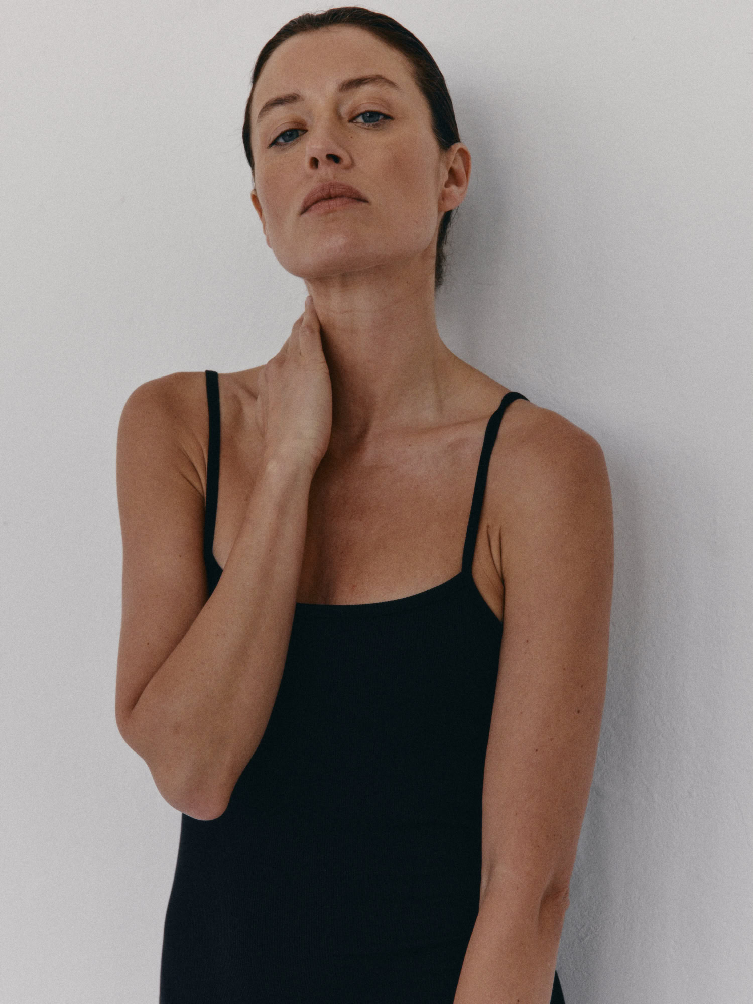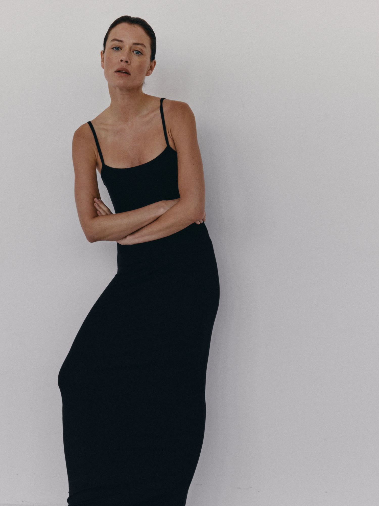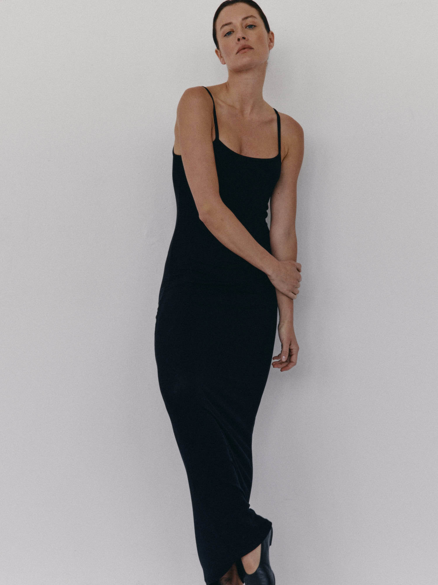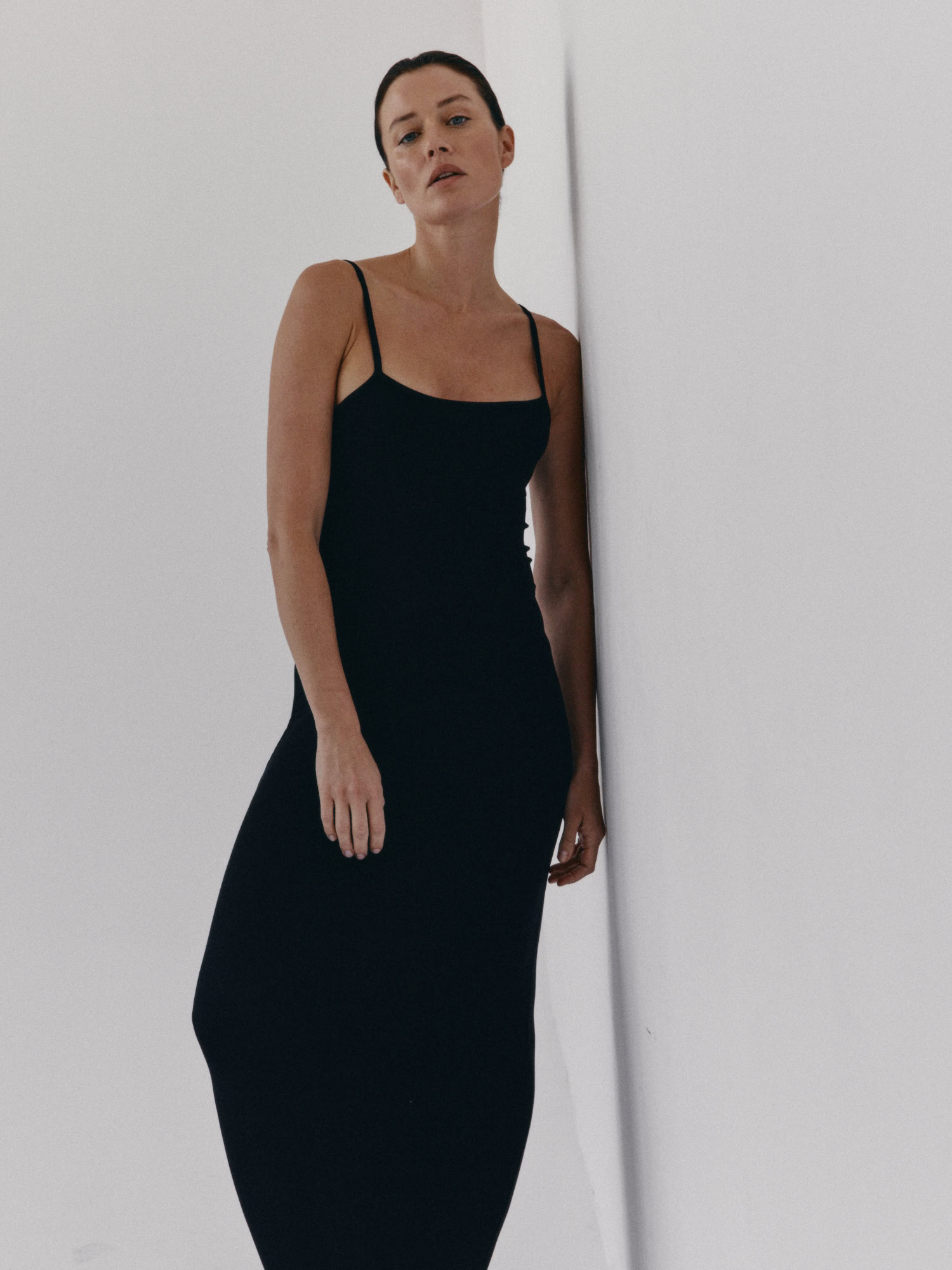 Długa prążkowana sukienka na cienkich ramiączka. Długość do kostek. Sukienka płynnie dopasowuje się do kształtu sylwetki podkreślając ją. Model sprawdzi się idealnie zarówno na codzień, jak i na wieczorne wyjście. Można ją nosić solo lub w połączeniu z bluzą czy marynarką.
