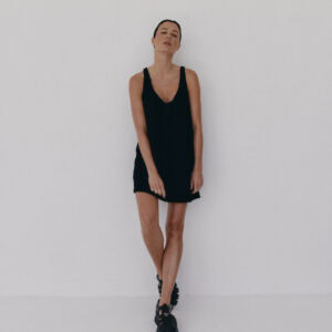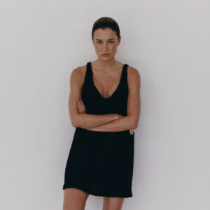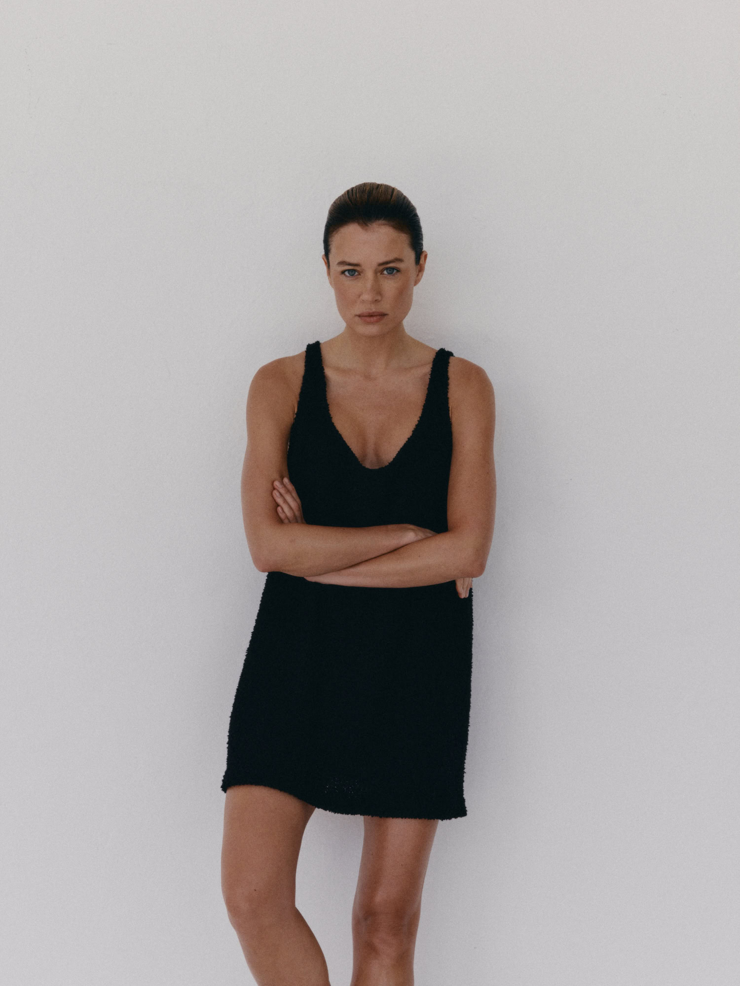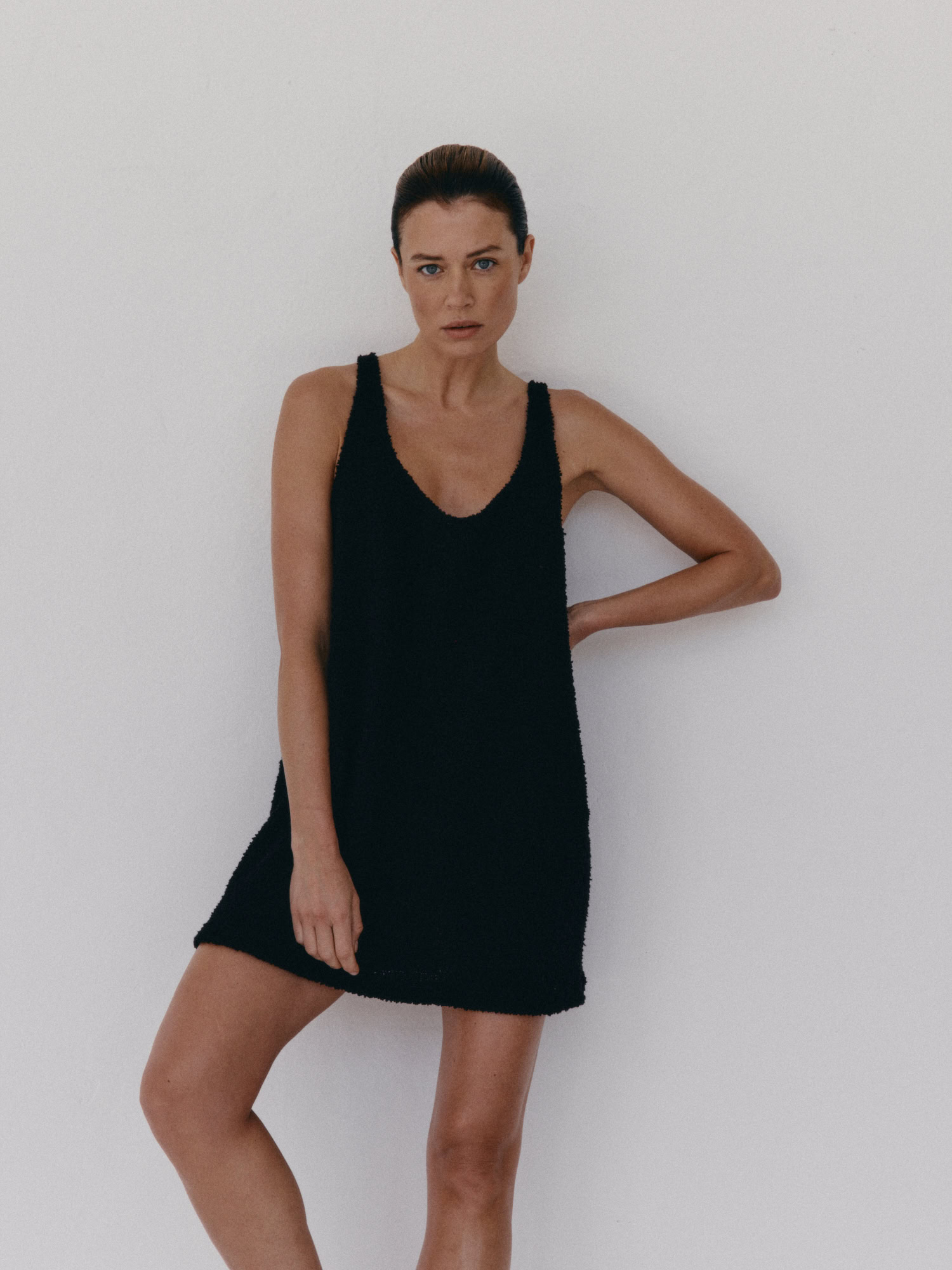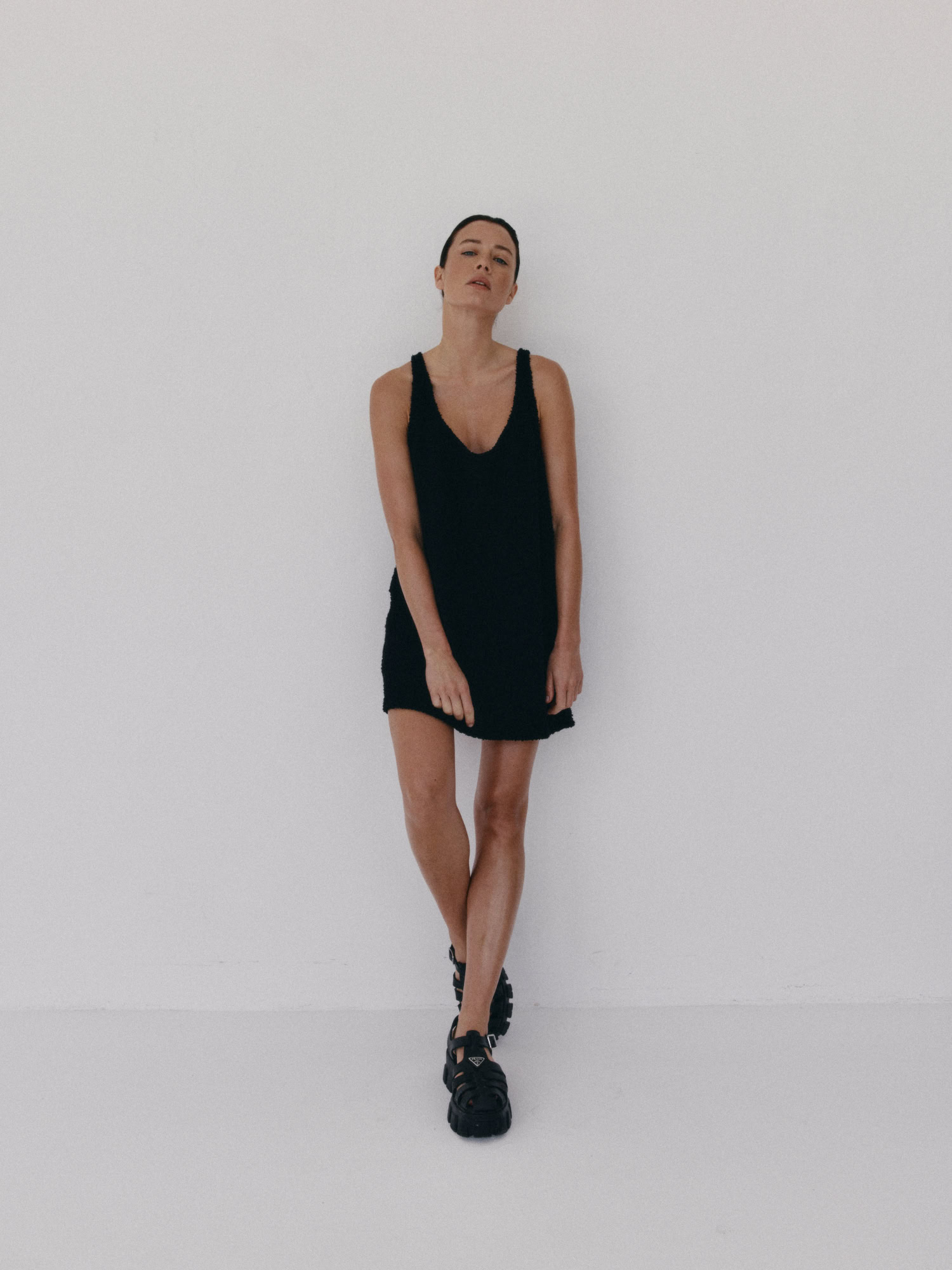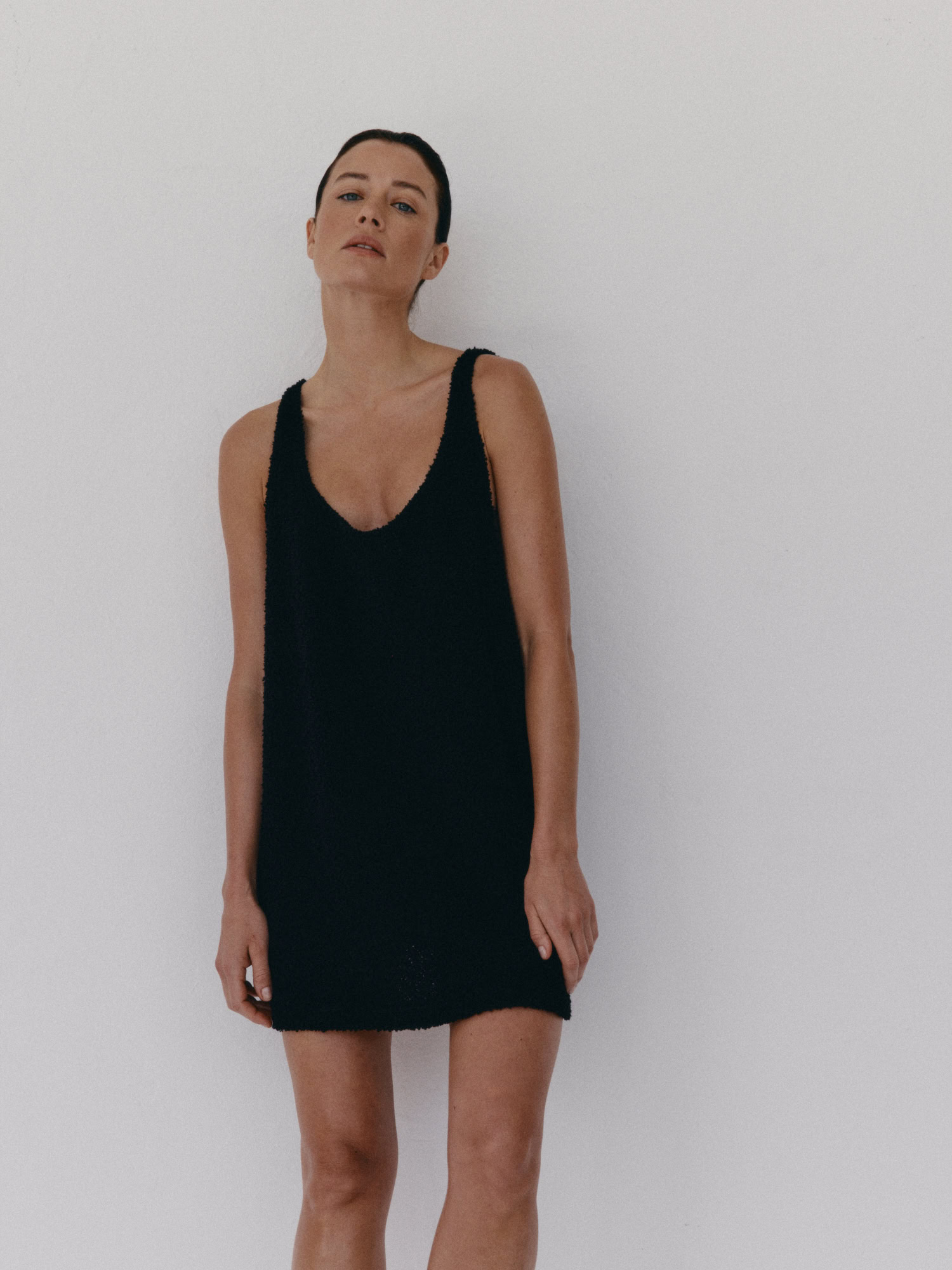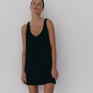 Prosta sukienka na szerokich ramiączkach o strukturze boucle i luźnym kroju. Subtelnie wycięty dekolt w kształcie litery U idealnie podkreśla linię biustu. Model sprawdzi się zarówno na co dzień, jak i wieczorne wyjście.