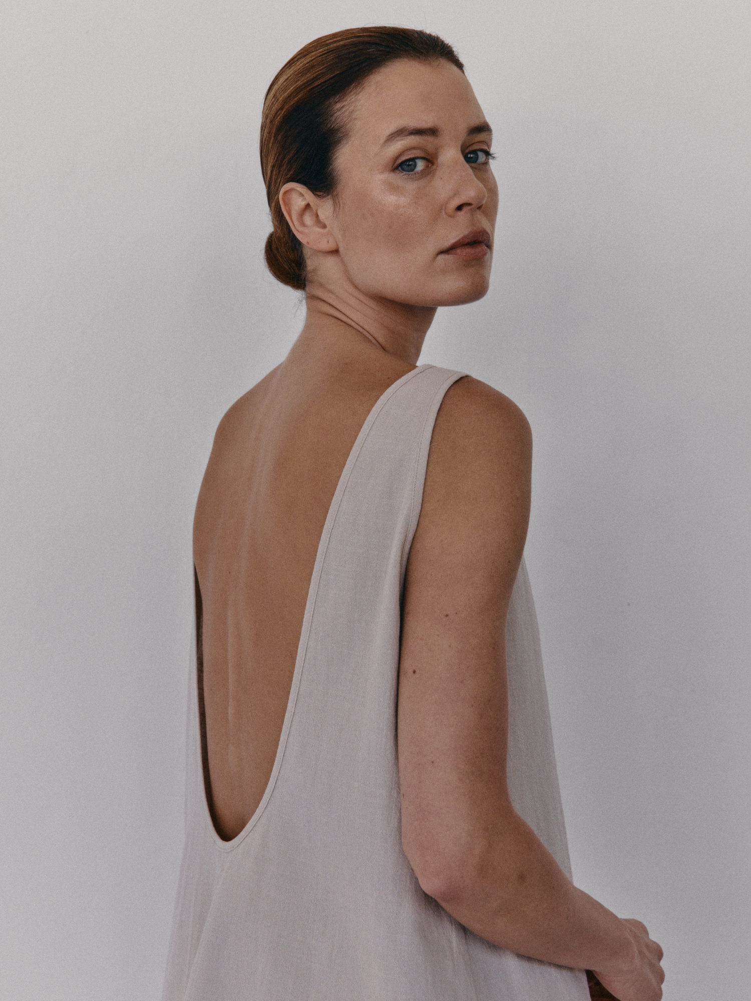 Odświeżona wersja naszej kultowej ROCHE i #SKATEGIRL. Sukienka na grubszych ramiączkach typu oversize, o luźnym, prostym kroju. Z przodu minimalistyczny dekolt, z tyłu ultragłębokie wycięcie w kształcie litery U. Produkt założony na gołe ciało doskonale podkreśla linię pleców. Dzięki specjalnej konstrukcji sukienka nie spada z ramion. Sprawdzi się zarówno w casualowej wersji, jak i w wieczorowej.